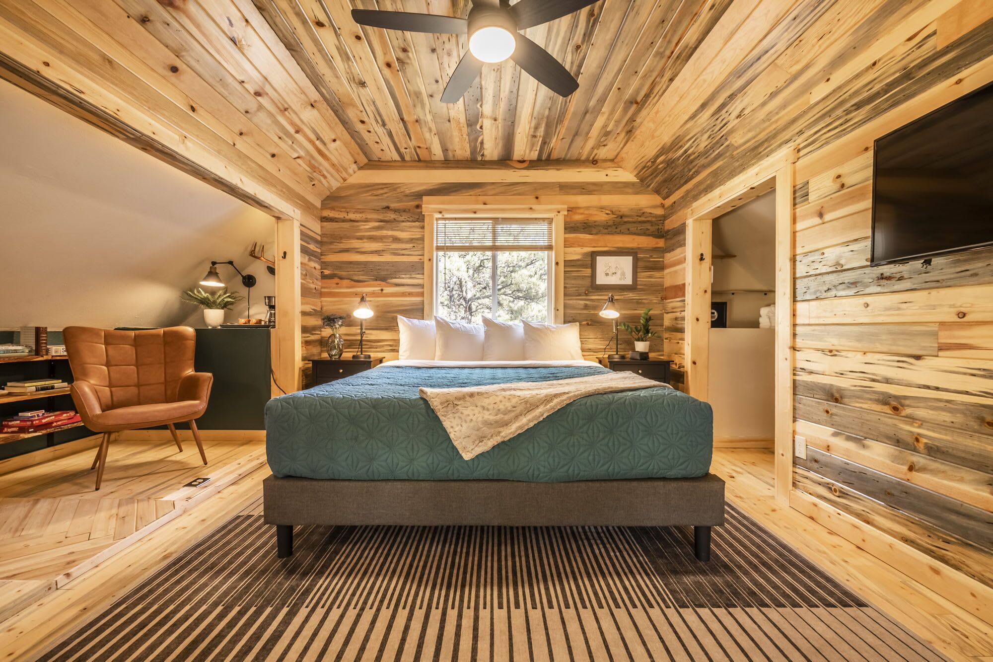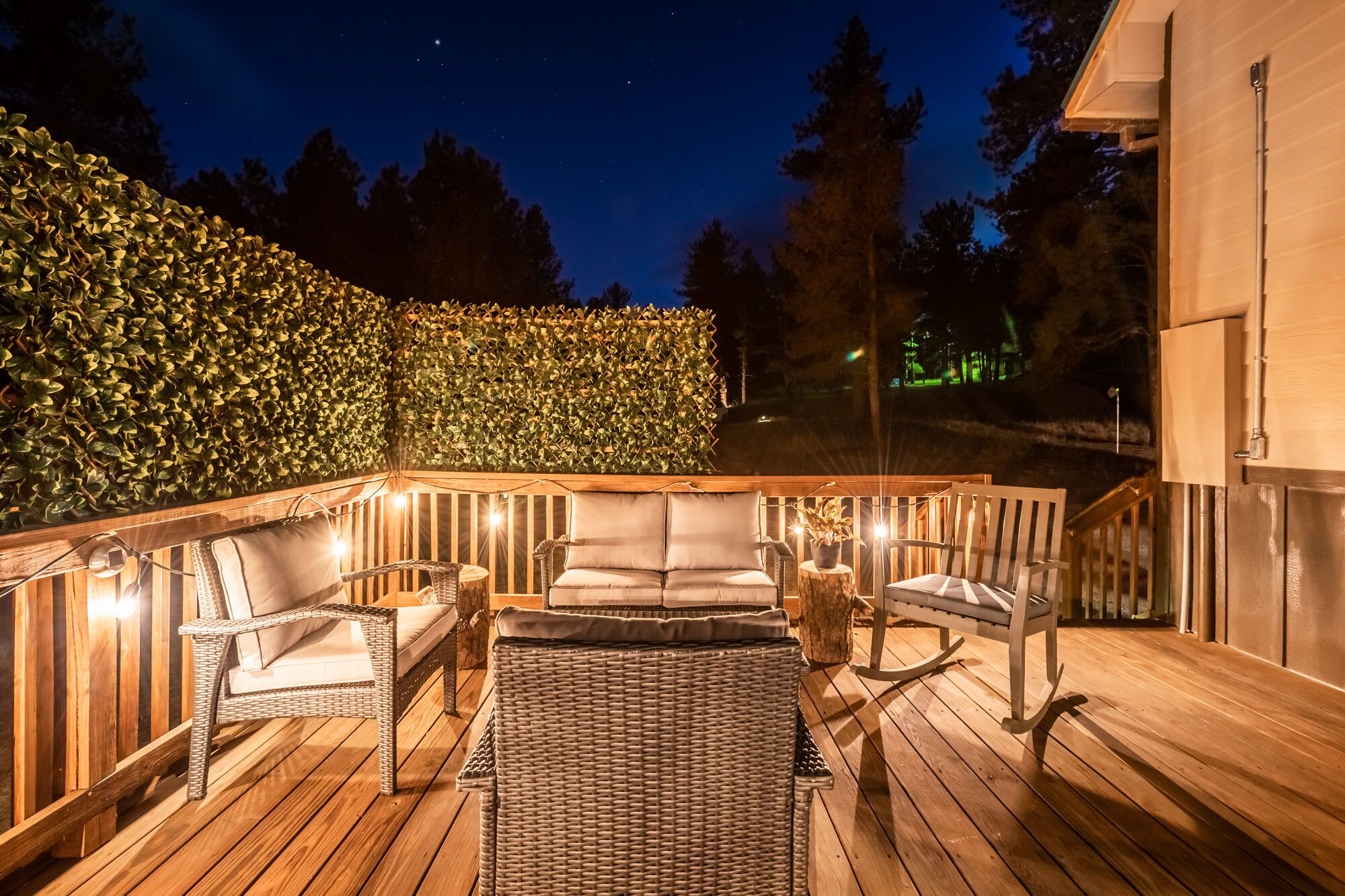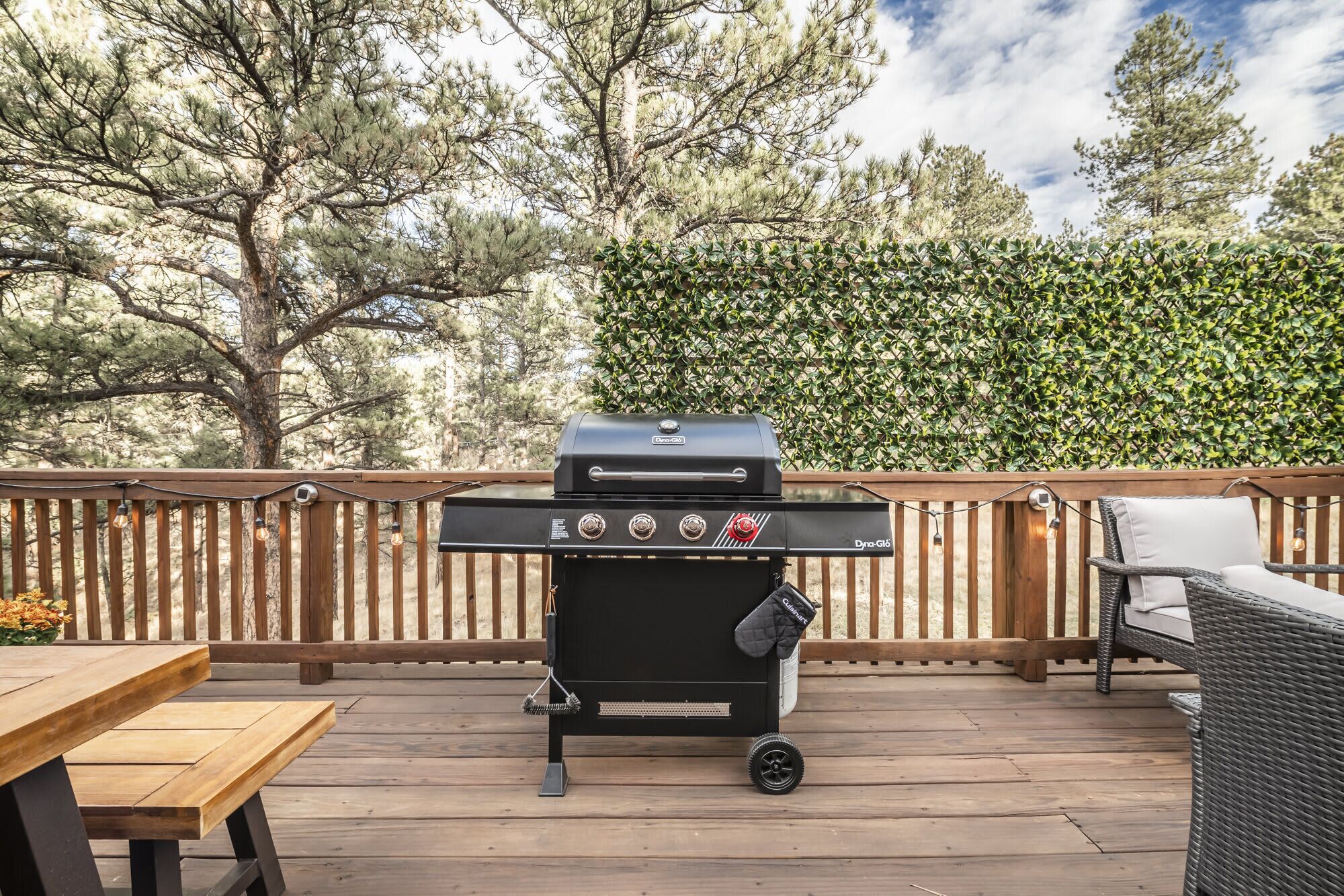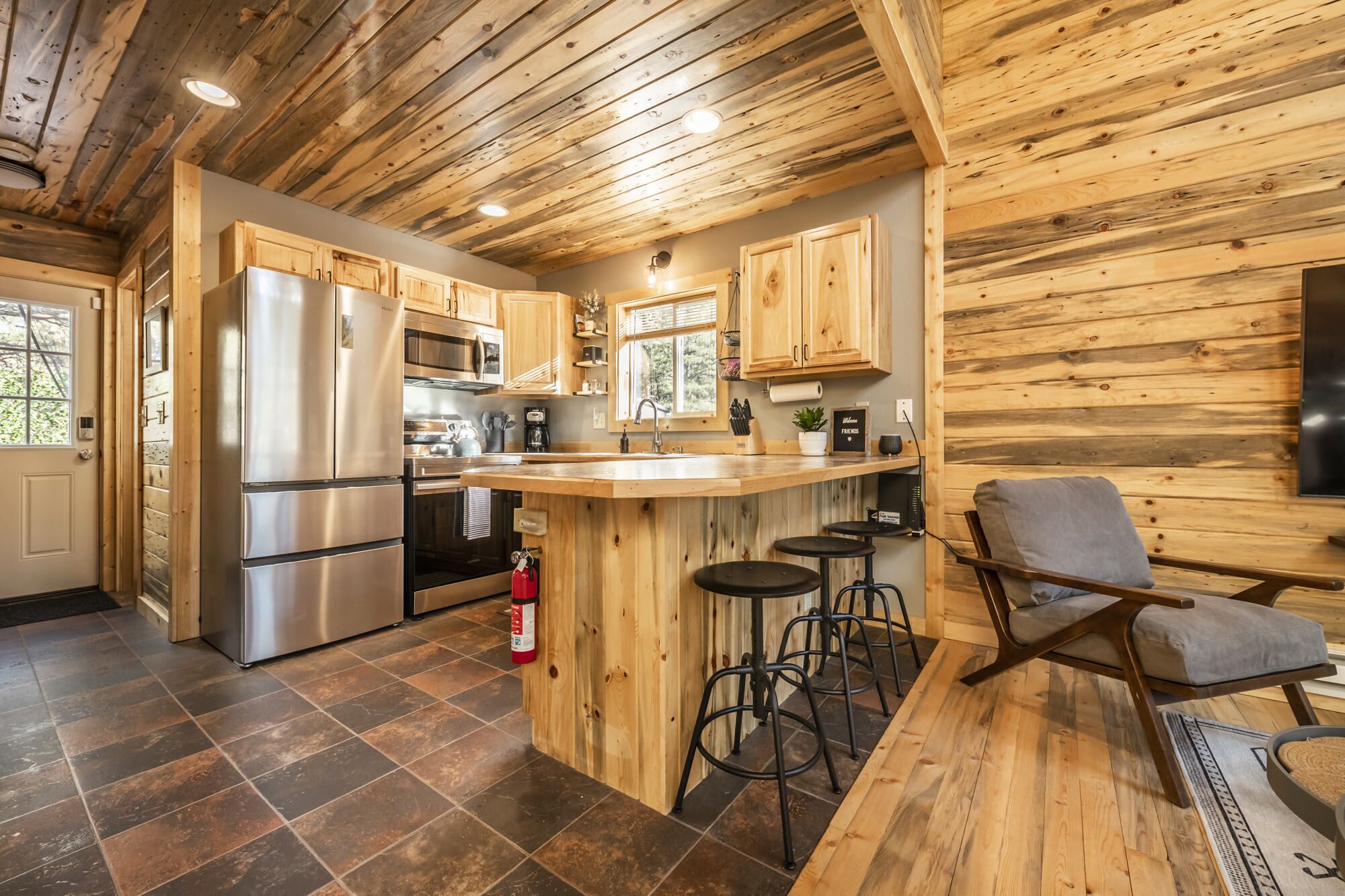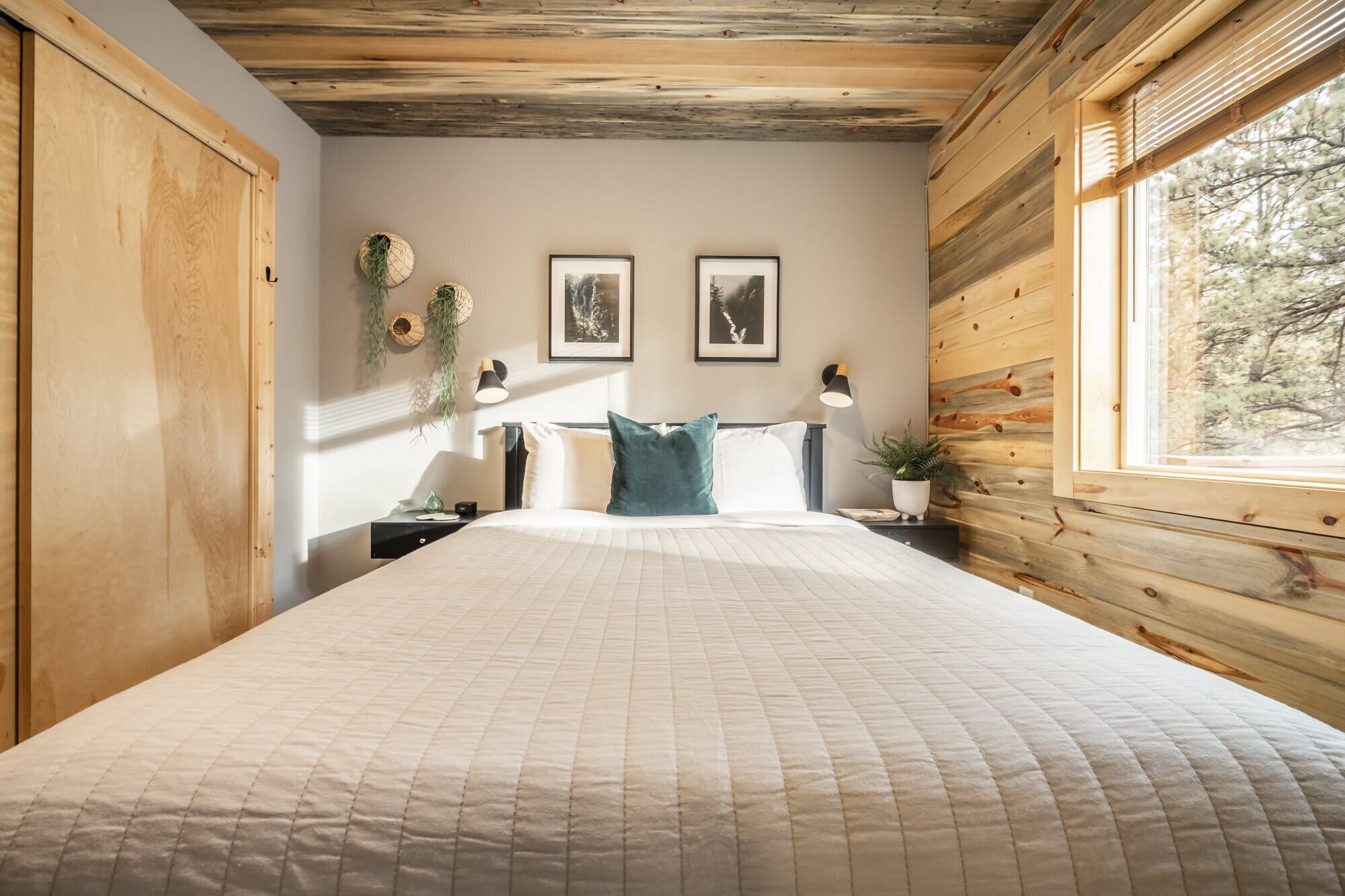 Dark Sky Views w. Firepit - Sauna - Grill - Fishing Summary:Our cabin is nestled on an acre near Pikes National Forest with access to fishing, hiking & adventure all around. With all the amenities, 45min to Colorado Springs, 10 min to the S. Platte River Dream Stream, world class fishing, Mueller State Park, Pike's Peak & ATV-ing. A tranquil location in the woods w/ incredible views of the Milky Way, evening fires outdoors, great times w/ friends on the deck, hot coffee, wildlife, relaxation in the sauna, you’re sure to unwind from the daily grind.The Space:We proudly and directly manage a 5-star cleaning team that has been thoroughly coached in disinfection and sanitation following CDC guidelines. All touch points, surfaces, kitchenware, and linens, including upholstery, are being disinfected and sanitized on a routine basis. Our guests' health and safety are our top priority.Our cabin is perfectly nestled amongst the trees in Florissant Colorado, yet convenient to all the adventure you can dream of. Florissant Fossil Beds National Monument, less than 3 miles away, has been named an International Dark Sky Park, so you can enjoy stellar views of the Milky Way. Sit in the cedarwood sauna to jumpstart your day, soak up the Colorado sunshine while grilling, dining, and relaxing on the deck after your adventures. We have prepared this space with you in mind, so you will have the most amazing stay possible. Thank you for allowing us to host you!Find us @florissantfishingcabin and follow along!The Great OutdoorsThe cabin sits on a large property with seemingly endless activities to keep you entertained. There is a wood firepit and chairs, and there are yard games like frisbee golf, yard dice, and giant jenga. There is a large deck wrapped in string lights with a grill, rustic picnic table for outdoor dining, and a patio furniture set. There is a gorgeous cedar barrel sauna for relaxing.The Joe Wilson Reservoir is currently closed to guests, but there are miles of BLM hiking through the unmarked entrance at the back of the lake towards the inlet (hike at your own risk). Other nearby attractions include Elevenmile Canyon and Eleven Mile State Park, Lake George, Tarryall Mountains, Colorado Wolf and Wildlife Center, Florissant Fossil Beds National Monument, Mueller State Park, Raspberry Mountain, Pikes Peak, and many more!Business TravelersWorking remotely is a new way of life for some. We’ve kept this in mind for those who are traveling for work. Enjoy the ease of keyless entry, fast Wi-Fi, there is a desk and chair in the master bedroom with nature views through expansive windows. There are ample power outlets, USB charging ports for connecting devices, and an Alexa smart speaker for playing music or asking questions about the local area.KiddosFor those traveling with little ones, we've got a pack n play, highchair, baby bath, baby monitor set. There is a retractable baby gate installed at the bottom of the stairs, and there are children’s plates, bowls, cups, and silverware.Living RoomKick back on the comfortable leather sofa with chaise lounge while enjoying your favorite shows on the 65” Smart TV with streaming apps so you can login to your accounts. We provide complimentary Hulu for you to enjoy, and the TV has Samsung TV Plus which is a streaming service with live TV channels like cable.KitchenThe chef in your group will be thrilled to prepare some meals in the fully loaded kitchen. There is a stainless-steel fridge, 5 burner electric range and oven, microwave, toaster, blender, mixer, rice cooker and waffle maker.There is a standard drip coffee make, as well as a French press, stovetop espresso maker, and a milk frother, and we provide coffee, tea, creamer, sugar, sugar-free sweetener, and a few complimentary snacks.There are pots, pans, bakeware, baking sheets, mixing bowls, knives, cutting boards, strainers, measuring cups, measuring spoons, a mixing spoon, slotted spoon, spatula, tongs, a masher, peeler, grater, pizza cutter, ice cream scoop, oven mitts, kitchen towels, a can opener, bottle opener, and a wine opener. There are tools for the grill and toasting forks for roasting marshmallows by the fire.There are plates, bowls, silverware, placemats, coffee mugs, water glasses, wine glasses, and beer glasses. There are children’s plates, bowls, cups, and silverware for your little ones.There are some basic cleaning supplies such as all-purpose cleaning spray, sponges, hand soap, dish soap, and extra trash bags. There is a broom and dustpan, mop and bucket, and a vacuum. There is a fire extinguisher and first aid kit onsite as well.BedroomsThere are 2 bedrooms in the cabin. They both feature super comfortable beds with brand new mattresses, high quality bedding, plenty of pillows and we provide fresh linens for your comfort.The master bedroom is upstairs and overlooks the main space. It has a king bed, nightstands with lamps, a sound machine, and a wall-mounted Roku TV with apps like Hulu and Netflix. There is a desk and chair against the railing with nature views out the expansive windows. There is a closet with a dresser, hangers for your clothes, a hamper, and a safe. There are also robes and towels for use with the sauna. The master also has a cozy nook with two armchairs, several live-edge shelves with a selection of books, games, and vintage décor, and there is a coffee tray with a coffee maker and fixings for enjoying your first morning cup.The downstairs bedroom has a queen bed, nightstands with lamps, a mirror, and a few books on the shelves in the corner. There are robes and towels for use with the sauna.Laundry RoomThere is an updated washer and dryer onsite, and we provide a few complimentary laundry pods. There is an iron and ironing board available as well.BathroomThe bathroom is sparkling clean and has a full-size tub with shower, and we provide fresh towels, washcloths, hand towels, makeup cloths and spa quality shampoo, conditioner, and body wash. We also prov