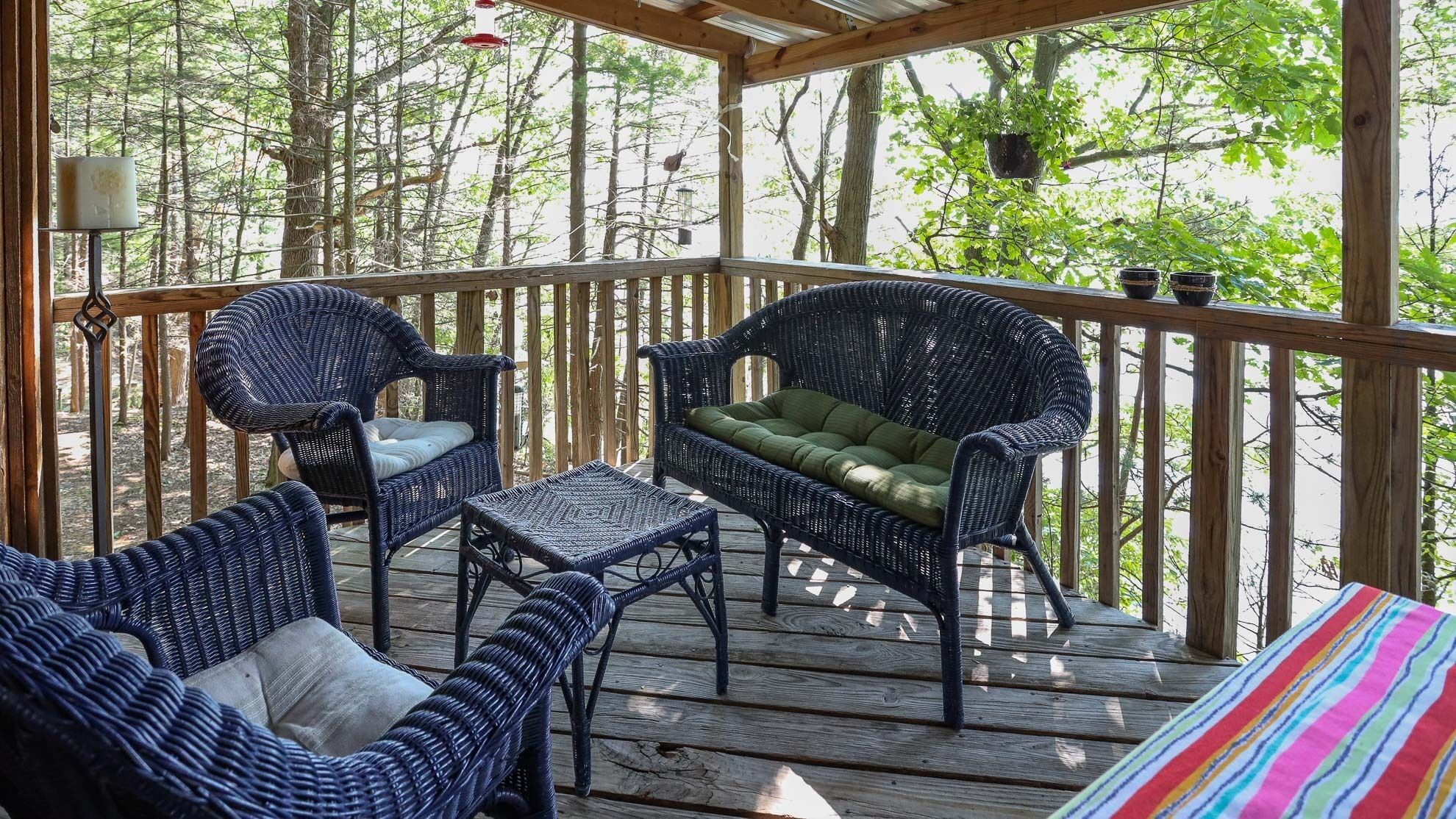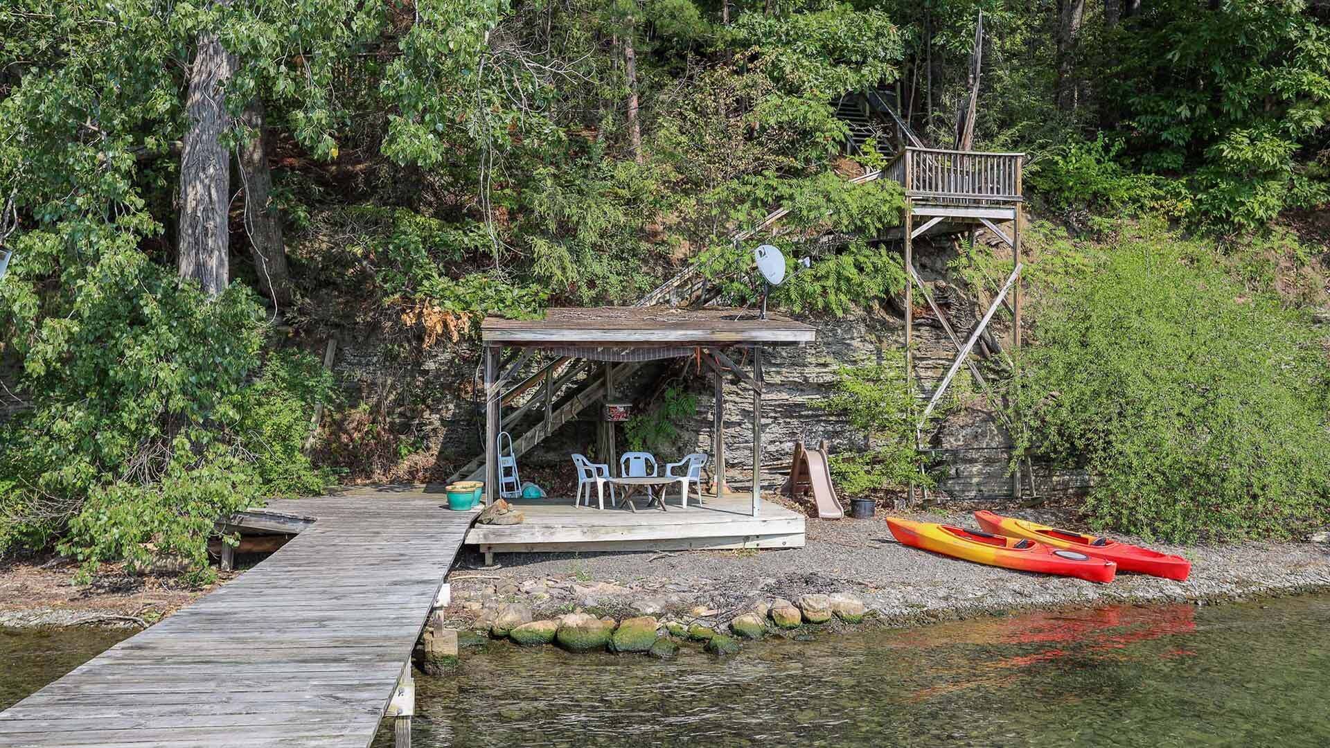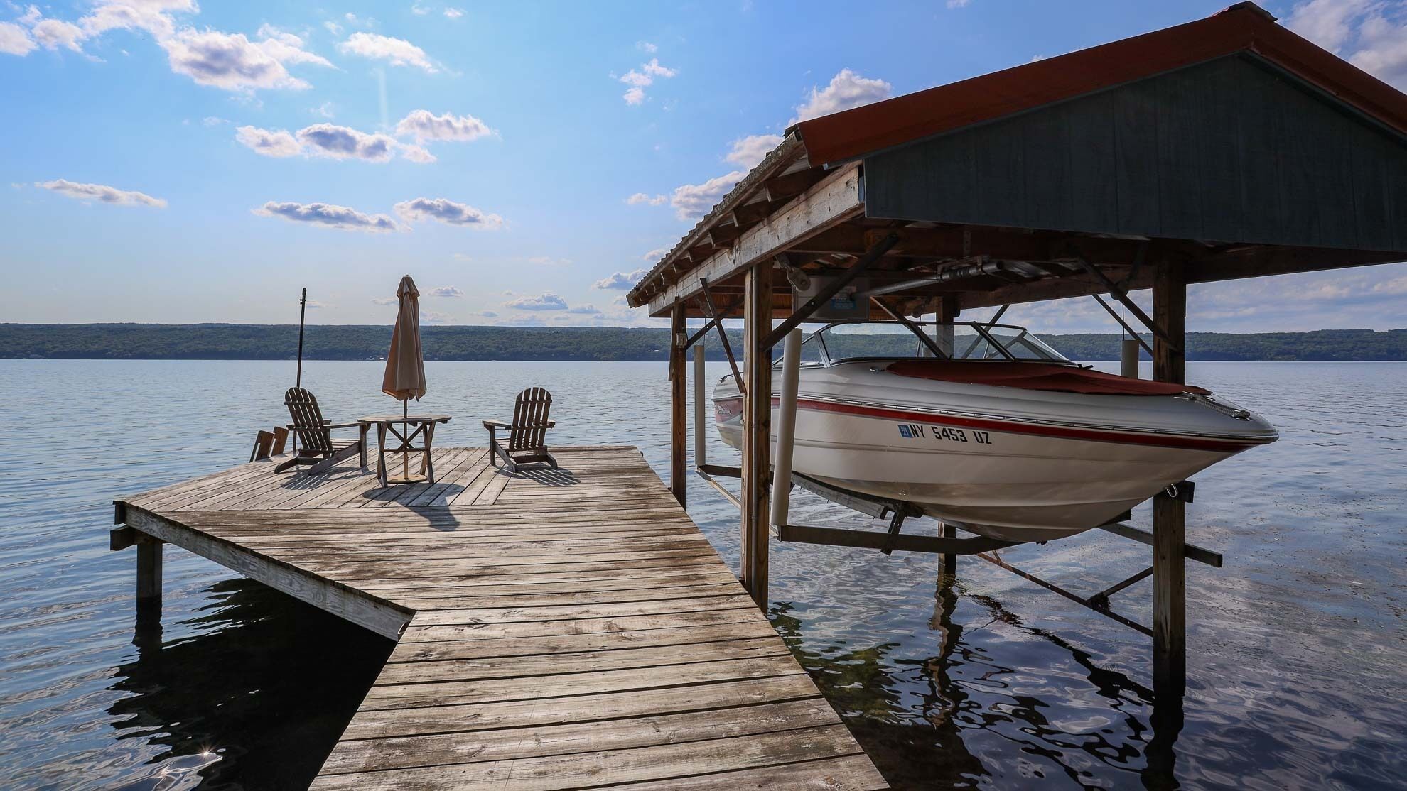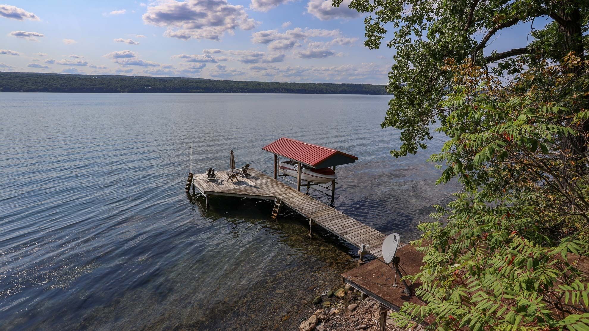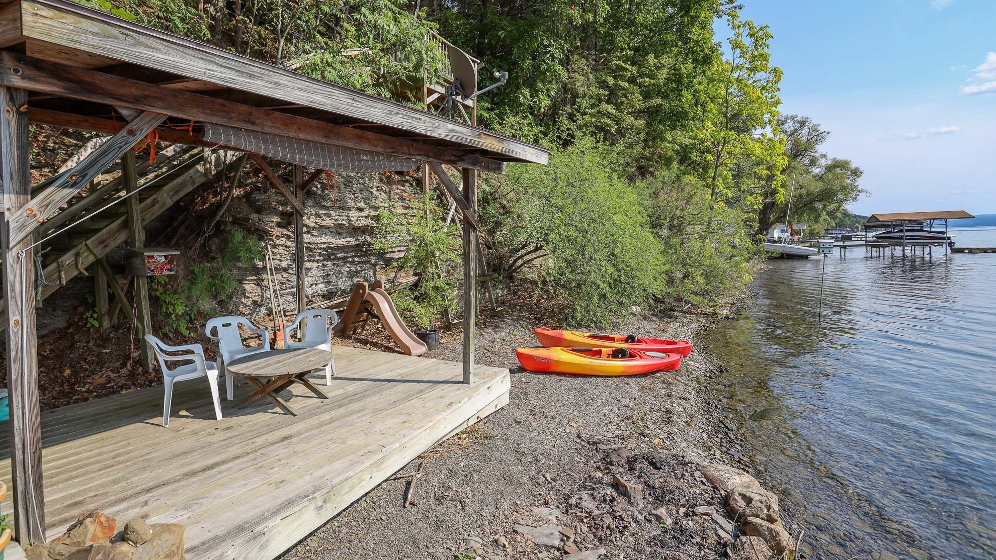 East Seneca Lake Cottage Nestled Amongst the Trees, Near Watkins Glen Explore all the Finger Lakes has to offer at Etal! Latin meaning "and others," Etal is located just minutes from Watkins Glen, and a short drive to Ithaca. This lovely quintessential cabin in the woods features fantastic Seneca Lake views and level lakefront. Offering accommodations for a group of 9, Etal offers three bedrooms, a loft and bunk house. Inside, beautiful knotty pine hugs both the walls and ceilings throughout Etal. The entry level layout flows freely from one room to the next with large windows and sliding glass doors accenting the lake views from the distance. Once in the kitchen, tall white custom cabinets hold all the cooking and baking ware your group of travelers could need for preparing your favorite meals. Granite countertops and stone backsplash add a special decorative touch to an already well-designed room. Being a seasonal home, dinning is done alfresco on the lakeside deck. A small table top inside acts as a breakfast bistro, or game table for two. The living room provides a cozy retreat any time of day. The Cozy blue sofas welcome you with comfortable seating for a cup of coffee to start your day, or a glass of Finger Lakes wine to end the night with. Completing the entry level, you'll find one of the three private bedrooms and the full bath. The lower level features the third private bedroom and half bath. All beds have ** NEW MATTRESSES**. House water comes from the Lake and is filtered. While it is safe to bathe with, please bring your own beverages. Outside, a covered patio off the lower level hosts a hot tub and outside shower. The nearby bunk house offers additional living space and trundle style sleeping. The stairway to the lakefront provides a landing midway down to stop and take in the panoramic view. Once at the lakefront, 80'of useable natural level frontage is available and enjoyable for guests of all ages to get in and out of the water. The large dock offers plenty of space for sun bathing, fishing, or just visiting with friends and family. Located right in the heart of the Seneca Lake Wine Trail, Etal has several fine wineries nearby such as Catherine Valley Winery, Silver Springs, J.R. Dill Winery and Chateau LaFayette Reneau. Enjoy a day trip into Watkins Glen and visit Watkins Glen International for a race or one of their many events throughout the summer. Hike a Watkins Glen State Park and enjoy dinner out on Captain Bill's Cruise Boat, or at the Seneca Harbor Station. You'll experience endless summer fun when you choose Etal as your Finger Lakes vacation destination! Call and book your reservation today!