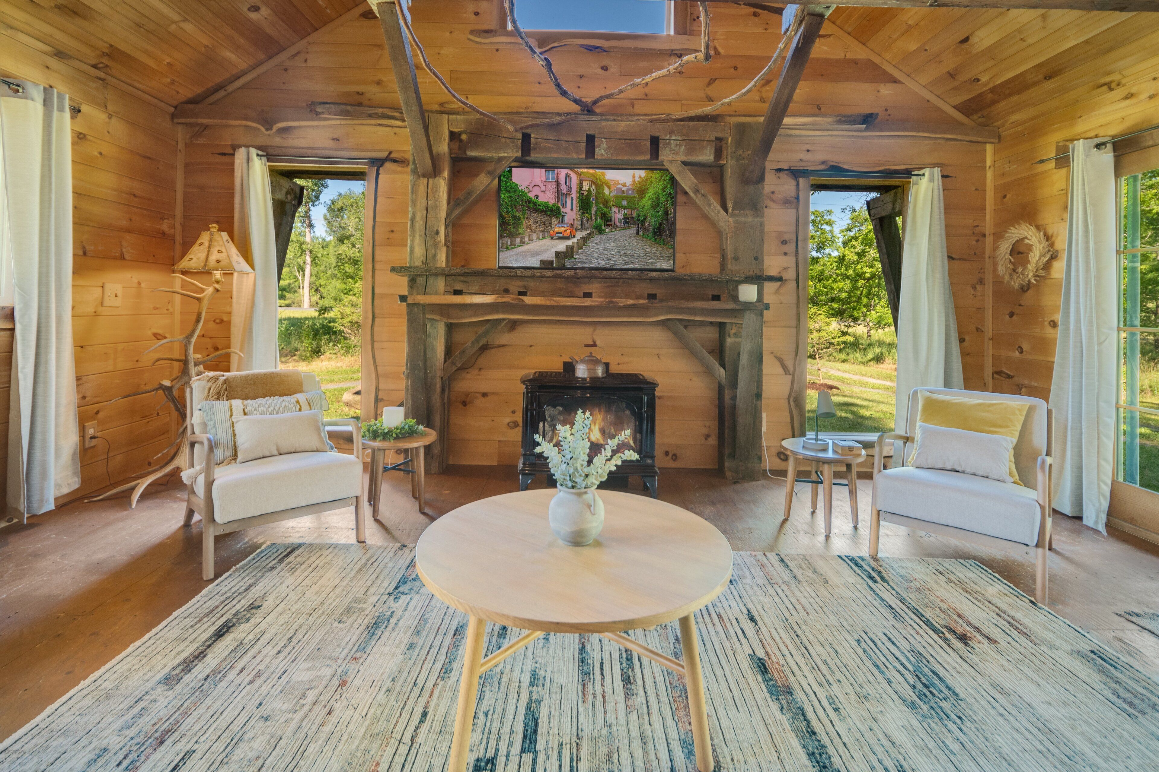 Cabin In the Finger Lakes near the Seneca Lake Wine Trail and Watkins Glen Enjoy a romantic getaway in this beautiful 1 King bedroom cabin, located in the heart of the Seneca Lake Wine Trail. This newly updated cabin provides all the modern amenities with a rustic country feel. It is set in a meadow with adjacent forest, has a charming fireplace and hot tub that are perfect for warming up after a day of exploring, and offers breathtaking night-sky views around the campfire. Located just 2 miles off the Seneca Lake Wine Trail!
