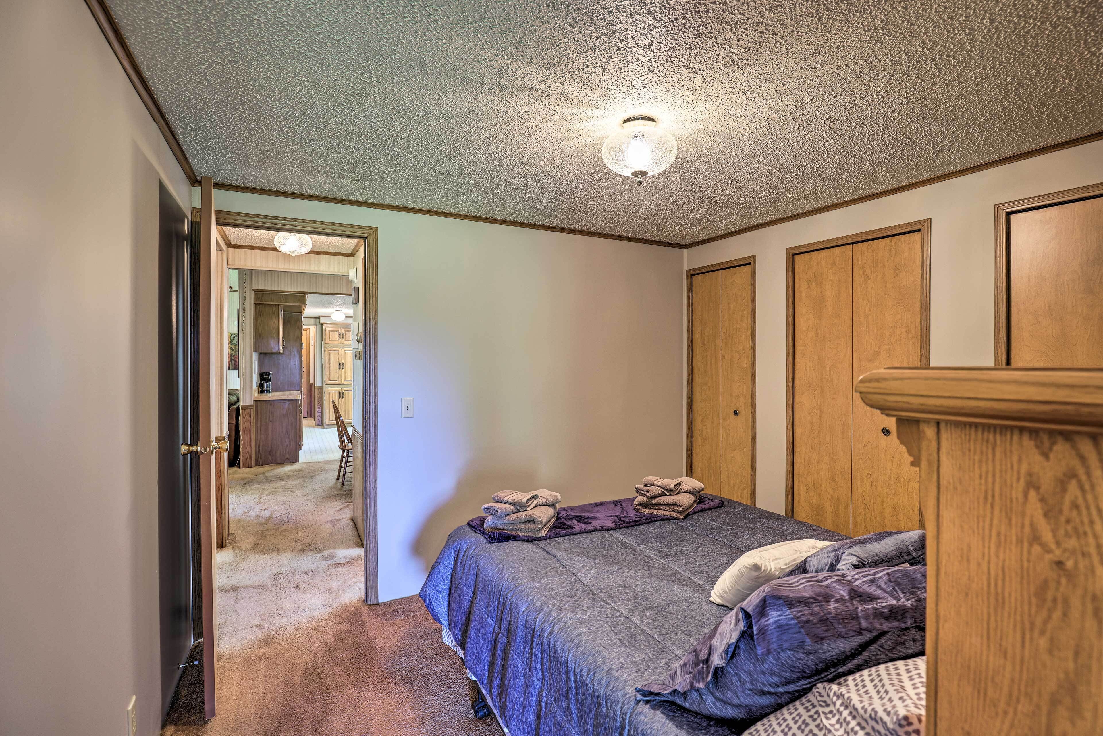 Charming Burdett Home with Grill, Gazebo + Yard Immerse yourself in the small-town country life when you choose this Burdett vacation rental as your temporary home! Just under 3 miles from Lake Seneca, this 4-bedroom, 2-bath home offers peace of mind in quiet surroundings. With a full kitchen, a Smart TV, board games, an enclosed porch, and a pristine yard, this charming abode is the ideal spot for families to come and enjoy quality time together. Taste a regional wine, hike the trails at Watkins Glen State Park, or simply enjoy some R&R!-- THE PROPERTY --Located in the Countryside | Single-Story Interior | Central A/C | 2.3 Miles to Lake SenecaBlend New York living with Burdett's historic architecture and natural beauty for a getaway experience you'll want to return to again and again!Bedroom 1: King Bed | Bedroom 2: King Bed | Bedroom 3: Queen Bed | Bedroom 4: Queen Bed | Living Room: Sleeper SofaOUTDOOR LIVING: Yard, gas grill, wicker lounge chairs, dining set, gazeboINDOOR LIVING: Smart TV, board games, laptop friendly, dining room, natural light, fireplaceKITCHEN: Fully equipped, coffee maker, blender, toaster, food chopper, microwave, stove/oven grill, cooking utensils, pots & pans, dishware & flatwareGENERAL: Free WiFi, ceiling fans, complimentary toiletries, towels/linens, washer/dryer, hair dryerFAQ: 4 stairs required to enterPARKING: Garage (2 vehicles), driveway (2 vehicles), trailer parking-- THE LOCATION --WINE TRAIL: Barry Family Cellars (1.0 miles), Silver Springs (3.2 miles), Seneca Harbor Wine Center (3.2 miles), Castel Grisch Winery (5.4 miles), Lakewood Vineyards (6.8 miles), Barnstormer Winery (7.3 miles), Magnus Ridge Winery (9.4 miles), Glenora Wine Cellars (12.0 miles)LOCAL HOT SPOTS: Sail True Love (3.1 miles), Finger Lakes Distilling (4.2 miles), Watkins Glen International (7.8 miles), Farm Sanctuary (12.9 miles), Corning Museum of Glass (23.9 miles)NATURE SITES: Watkins Glen Beach on Lake Seneca (2.3 miles), Watkins Glen State Park (3.9 miles), Montour Falls (4.6 miles), Rainbow Falls (4.8 miles), Havana Glen Park (5.0 miles), Shequaga Falls (5.4 miles), Taughannock Falls State Park (16.9 miles)AIRPORTS: Elmira Corning Regional Airport (19.6 miles), Ithaca Tompkins International Airport (25.7 miles)-- REST EASY WITH US --Evolve makes it easy to find and book properties you’ll never want to leave. You can relax knowing that our properties will always be ready for you and that we’ll answer the phone 24/7. Even better, if anything is off about your stay, we’ll make it right. You can count on our homes and our people to make you feel welcome--because we know what vacation means to you.-- POLICIES --- No smoking- No pets allowed- No events, parties, or large gatherings- Must be at least 25 years old to book- Additional fees and taxes may apply- Photo ID may be required upon check-in- NOTE: This property requires 4 stairs to enter and may be difficult for guests with limited mobility- NOTE: The property has its own private well which may cause the water to smell different and have slight coloration- NOTE: Please be aware that Bedroom 2 is only accessible through Bedroom 3
