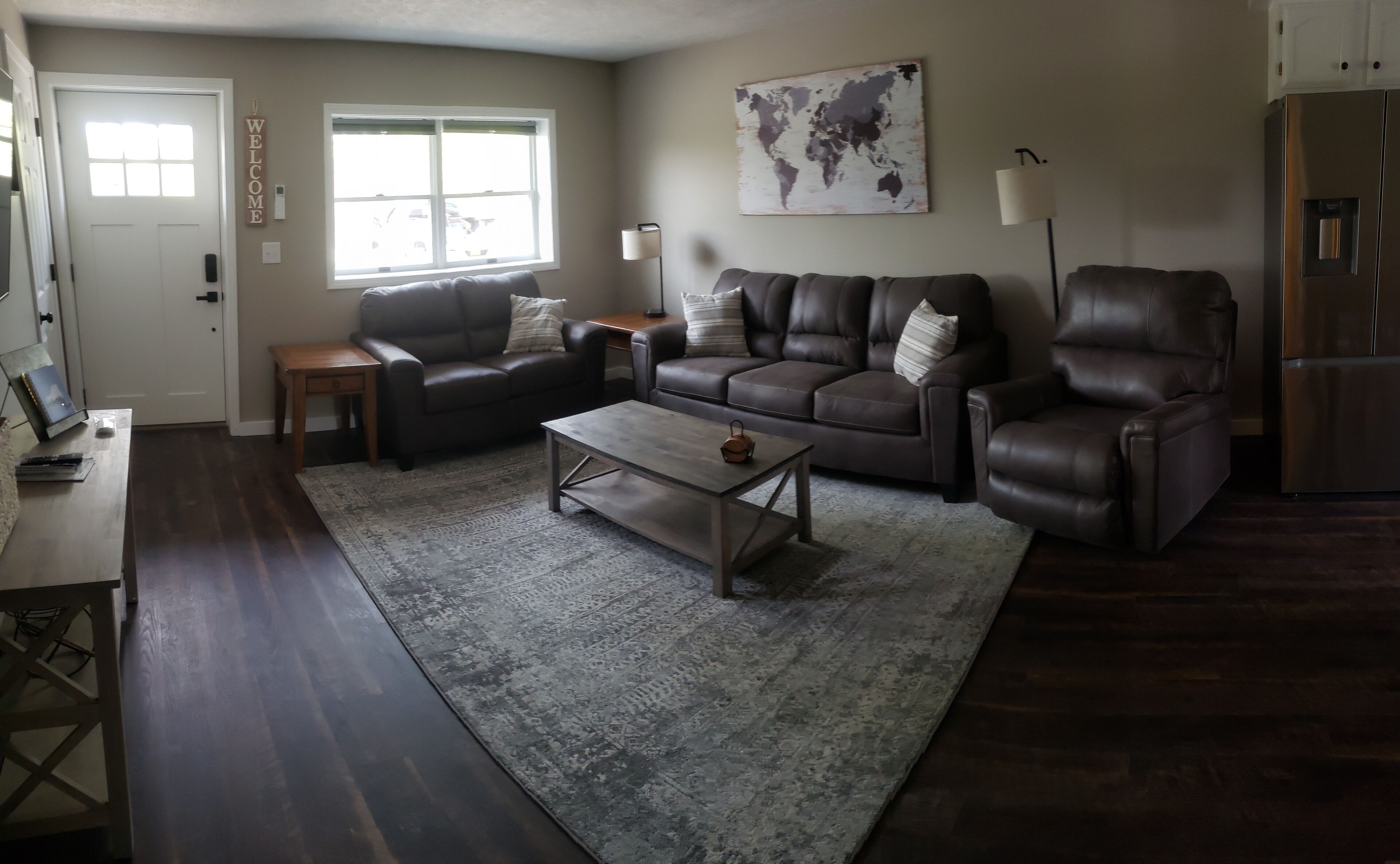 Freshly updated apartment with ample outdoor space These apartments have been totally renovated into clean and comfortable units. Large open-concept living/kitchen/dining area flows nicely to the stamped-concrete rear patio and large, spacious yard. There are dedicated firepits and chairs to enjoy the starry nights on the elevated back lawn. Both bedrooms have cozy mattresses and dedicated thermostats to make the nights relaxing and refreshing. The bathroom is situated between both bedrooms and includes a custom tiled shower. The comfortable living room furniture offers plenty of seating and cozy spots to catch some evening entertainment. There are dining tables inside and out, to enjoy home cooking on the stove, in the oven or on the back patio grill provided. The unit is ON the Seneca Lake Wine trail, which skirts the east side of Seneca Lake, and is close to many local wineries, breweries and favorite local dining spots if you'd prefer to not to cook. Seneca Lake and Watkins Glen are minutes away, as is the Finger Lakes National Forest and Watkins Glen State Park. Watkins Glen International is a 15 minute drive, while Corning and Ithaca are roughly 30 minutes away. Enjoy both sunrises over Satterly Hill and sunsets over Seneca Lake once you find yourself in the middle of the beautiful Finger Lakes. This unit is a middle unit and is contained in the same building as the following vrbo property IDs: #3346653(unit 1), #2926204 (unit 3) and #3363940 (unit4).