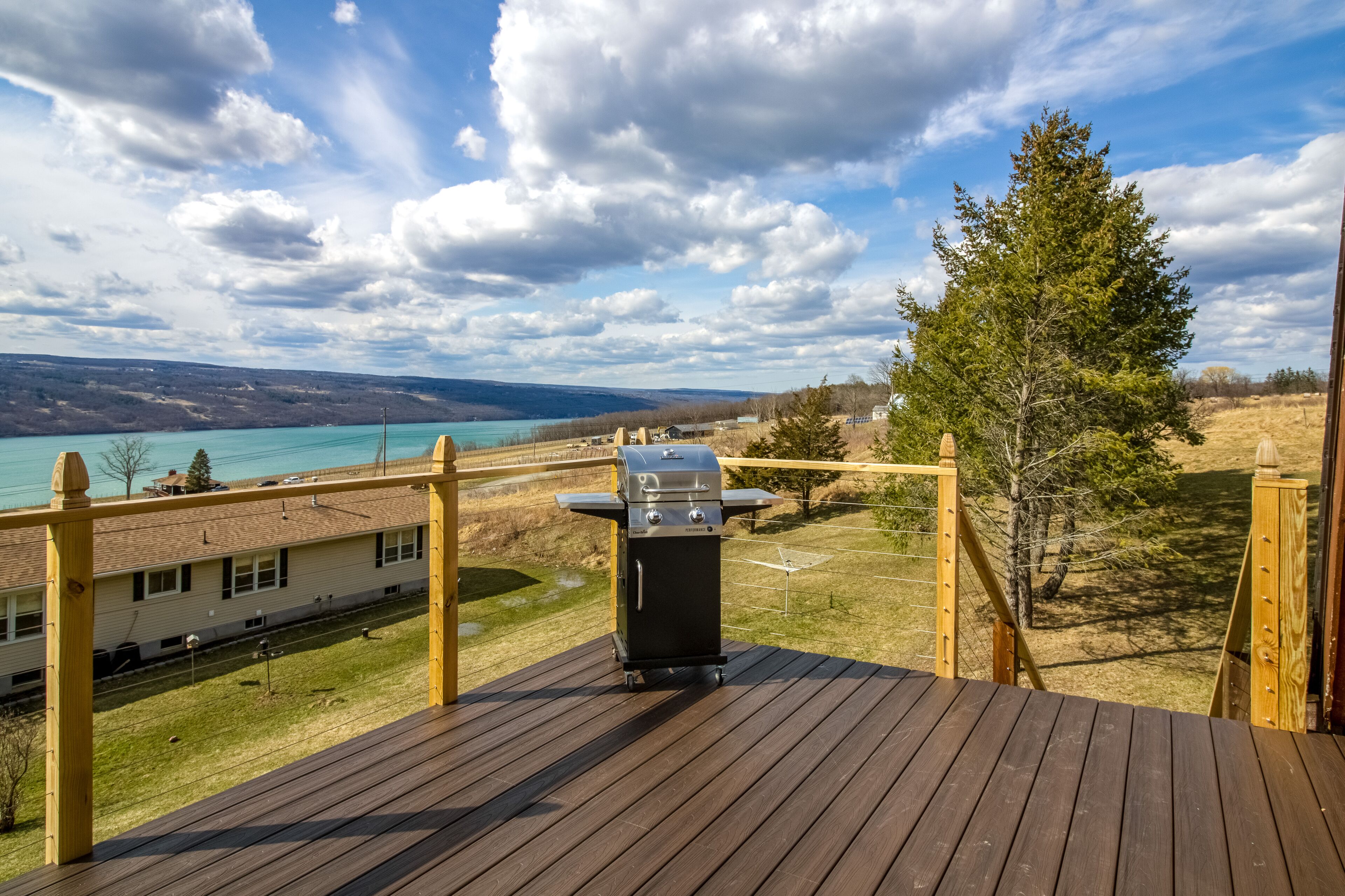 2nd-floor studio w/Seneca Lake views, spacious deck, full kitchen, gas grill