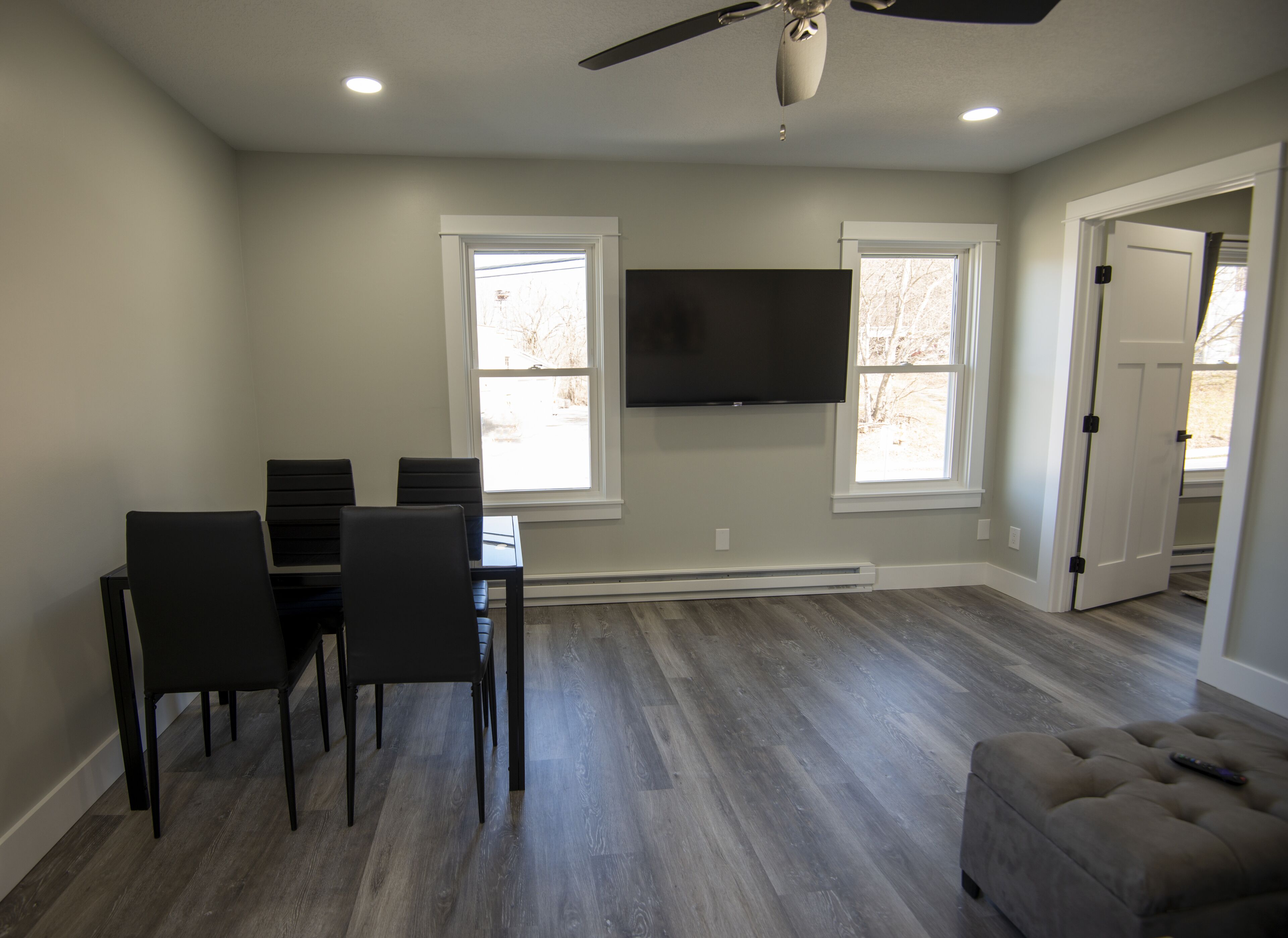 Modern Apartment Overlooking Waterfalls Step inside and discover a modern and stylish interior, complete with top-of-the-line appliances, comfortable furnishings, and all the amenities you need to make yourself at home. With two bedrooms, 1 bathrooms, and a sleeper sofa this unit comfortably accommodates up to five guests.However, what truly distinguishes our Overlook Unit is the breathtaking waterfall just steps from your doorstep. Imagine waking up each morning to the soothing sound of cascading water, enjoying your coffee on the private patio overlooking the falls, or simply basking in the tranquility of your surroundings. When you're ready to explore, you'll find plenty to see and do nearby. Explore the quaint boutiques, eateries and cafes of downtown Watkins Glen, or embark on a journey along the Seneca Lake Wine Trail, where scenic vistas and exquisite wines await. After a day of exploring the wonders of the Finger Lakes region, return to our Overlook Unit and gather around the fire pit for a cozy evening. Whether you're seeking a romantic getaway, a fun-filled family vacation, or a relaxing retreat with friends, our Overlook Unit offers the perfect home base for your Finger Lakes adventure. Book your stay today and start making memories that will last a lifetime.*Note: The property now comprises The Overlook Unit & The Fallsview Unit, available for separate or combined rental to accommodate larger groups. Please reach out directly for further details. Coming in Summer 2024 - Overlook Coffee Co. - Please note that a commercial establishment will be situated on the ground level of the building when booking this property. Step inside and discover a modern and stylish interior, complete with top-of-the-line appliances, comfortable furnishings, and all the amenities you need to make yourself at home. With two bedrooms, 1 bathrooms, and a sleeper sofa this unit comfortably accommodates up to five guests.However, what truly distinguishes our Overlook Unit is the breathtaking waterfall just steps from your doorstep. Imagine waking up each morning to the soothing sound of cascading water, enjoying your coffee on the private patio overlooking the falls, or simply basking in the tranquility of your surroundingsWhen you're ready to explore, you'll find plenty to see and do nearby. Explore the quaint boutiques, eateries and cafes of downtown Watkins Glen, or embark on a journey along the Seneca Lake Wine Trail, where scenic vistas and exquisite wines await. After a day of exploring the wonders of the Finger Lakes region, return to our Overlook Unit and gather around the fire pit for a cozy evening. Whether you're seeking a romantic getaway, a fun-filled family vacation, or a relaxing retreat with friends, our Overlook Unit offers the perfect home base for your Finger Lakes adventure. Book your stay today and start making memories that will last a lifetime.*Note: The property now comprises The Overlook Unit & The Fallsview Unit, available for separate or combined rental to accommodate larger groups. Please reach out directly for further details. Coming in Summer 2024 - Overlook Coffee Co. - Please note that a commercial establishment will be situated on the ground level of the building when booking this property.