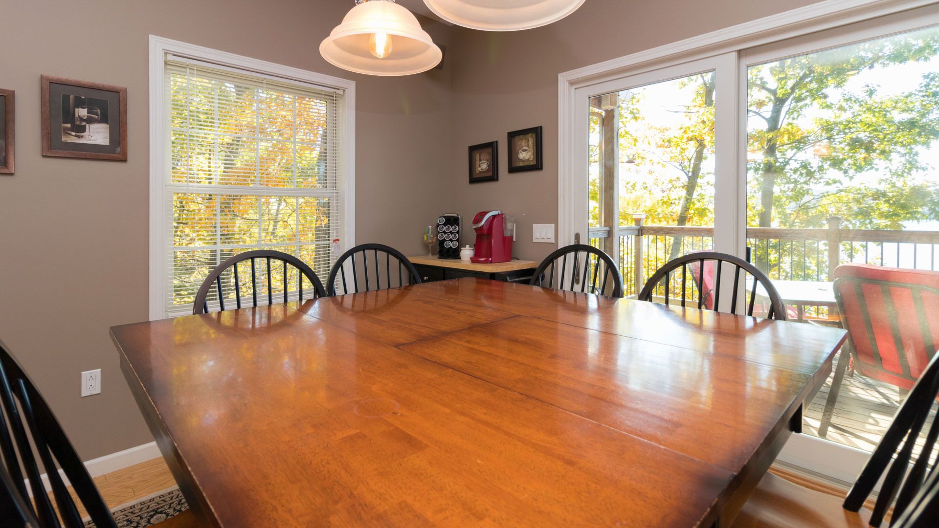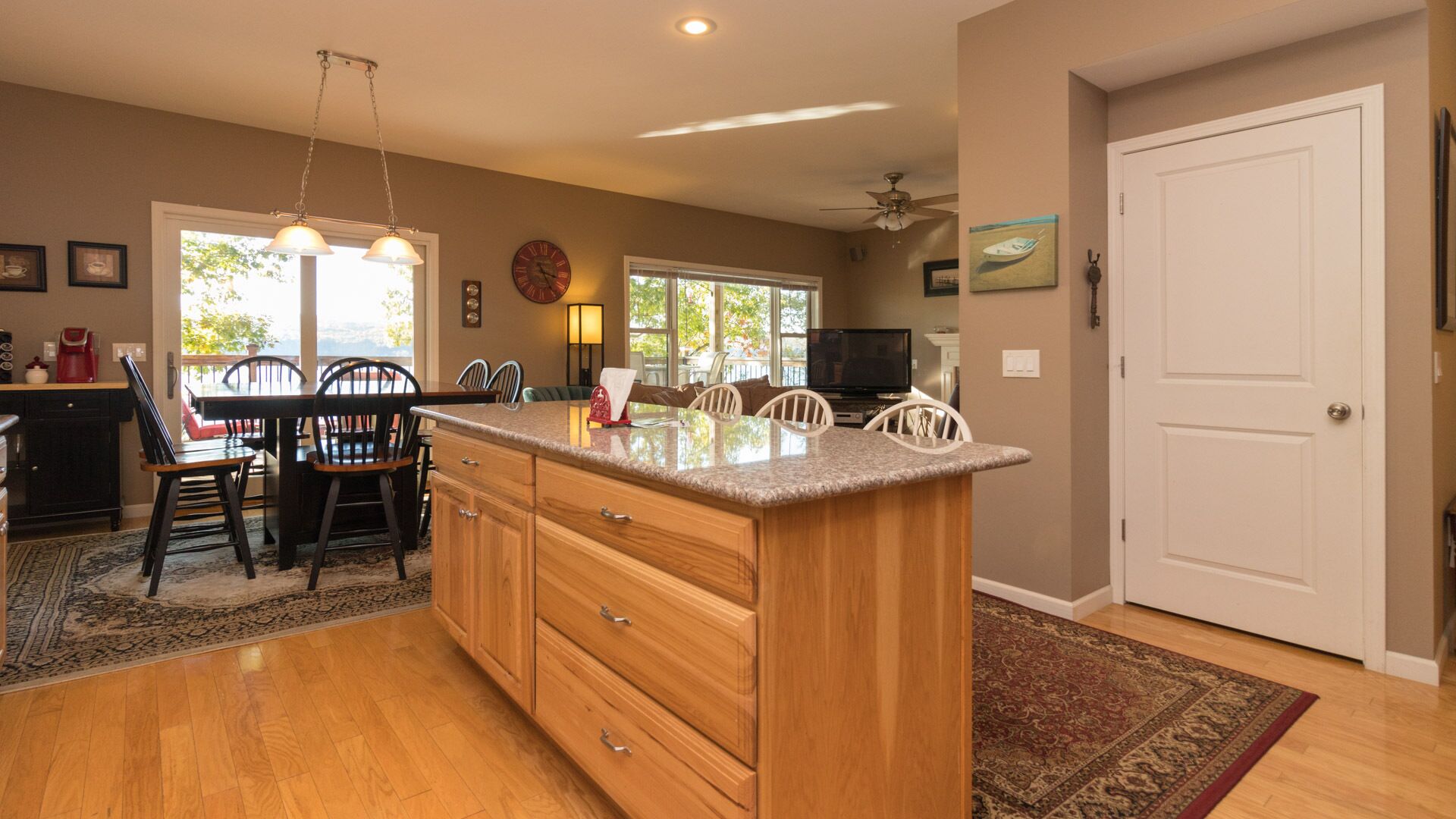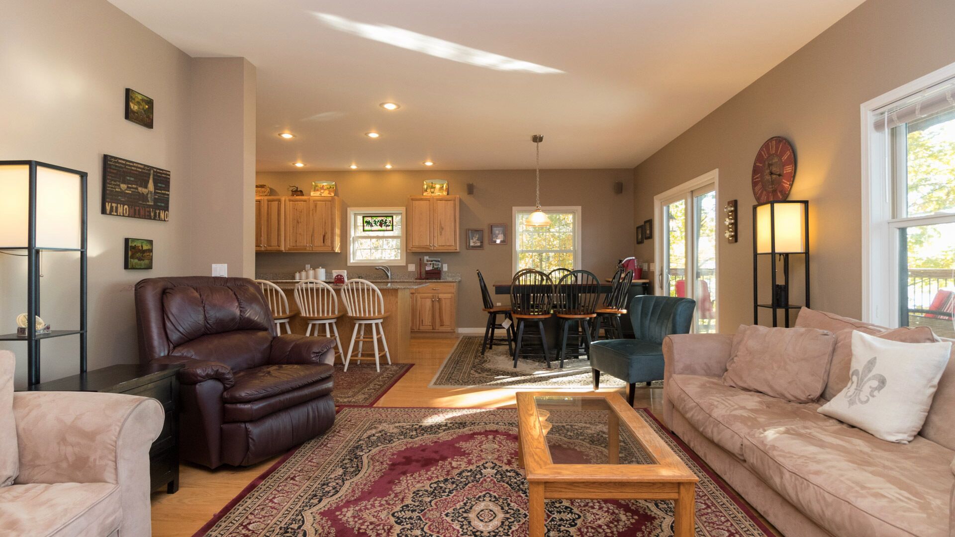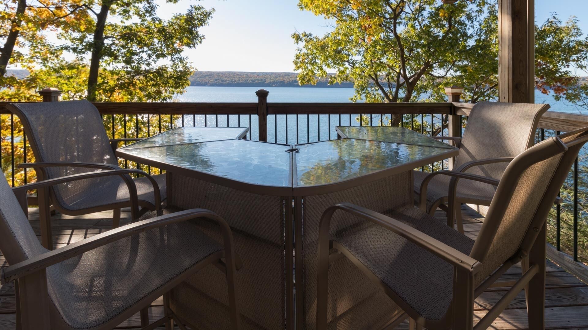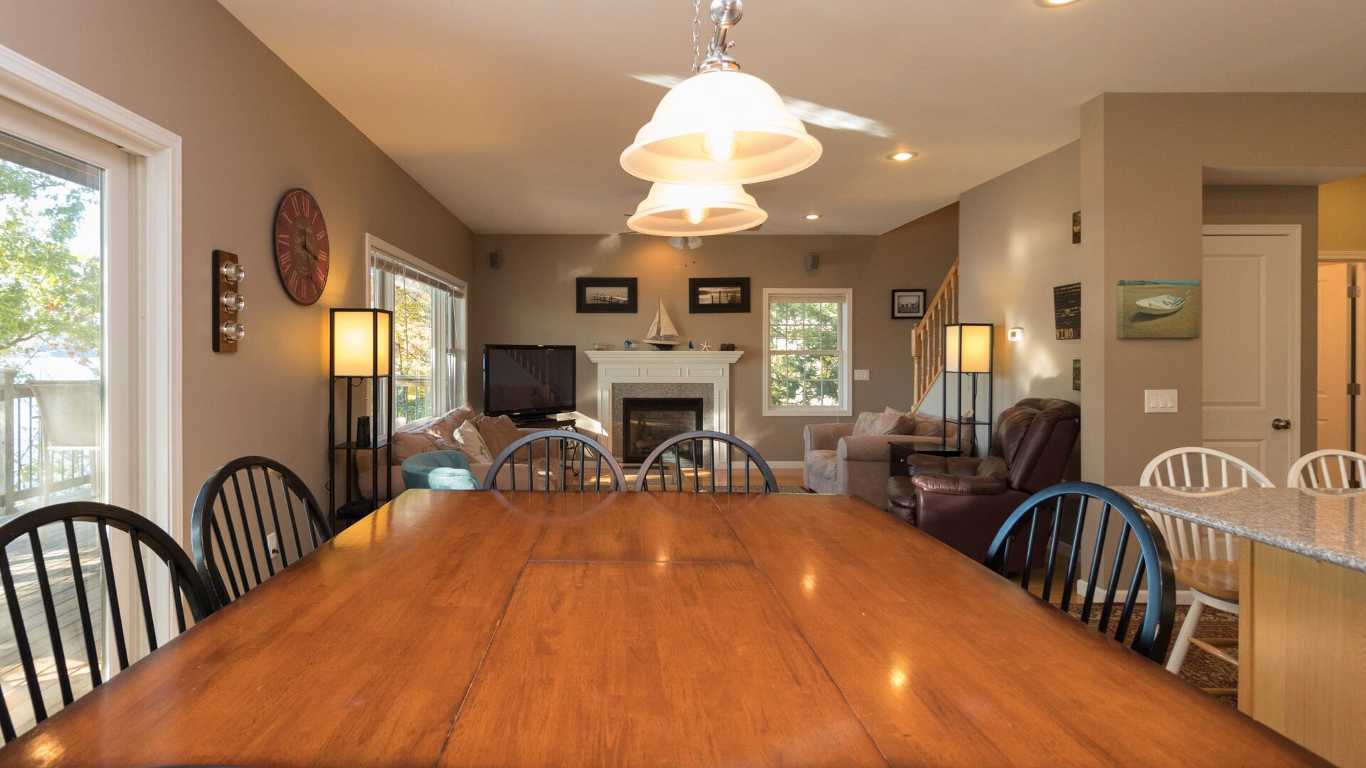 English Lakehouse:"Spectacular views on the Seneca Lake Wine Trail" Welcome to the English Lake House! This highly sought after vacation home is located on the east side of Seneca Lake, where you can enjoy the gorgeous sunsets of the Finger Lakes from the comfort of three levels of decks, or right by the lake on more than 100 feet of gradual entry lakefront. With ample parking for five cars, and dedicated common facilities on two separate levels, English Lake House is the perfect retreat for two families vacationing together. Entering the home, you are greeted with an open floor plan for the main common areas. The kitchen is both spacious and has enough counter space to cook meals for the whole family. An island offers seating for three in the kitchen, while a dining table that can seat eight offers views of the lake through the sliding glass doors. Opposite the kitchen and dining area, you'll find the living area. A comfy couch, recliner, and overstuffed armchair offer seating in the living area, while you watch TV on the large flat screen TV [which comes with HBO, Showtime and a DVR], enjoy the cozy fireplace, or just enjoy the view through the large, lake-facing, picture window. On this main floor, those with limited mobility will enjoy the convenience of having a spacious bedroom with a queen bed, flat-screen TV, a full bathroom, as well as access to a covered deck that spans the entire width of the house. Full-size laundry facilities are also located on this floor.The upper floor hosts the master bedroom with king size bed, flat-screen TV, vaulted ceiling, and sliding glass doors that let you enjoy the view from inside the bedroom, or on the private covered deck that spans the width of the home. An additional bedroom on this level faces the rear of the property, and has one queen bed and one full. A full bathroom with tub is also located on this floor.The lower level of the home features one more bedroom with queen bed and a 3rd full bathroom. Additionally, you will find a second fridge, and common area living space with flat-screen TV. This room also encompasses a day bed, with a trundle bed, and there is a second set of stackable laundry facilities. A walk-out door on this level will take you down to the lakefront.A/C windows units are located in every bedroom, along with the main living room to keep you cool on those warm summer days. Additionally, the home gets excellent wireless reception, so you can stay connected to family, and keep them up to date with your vacation photos!Are you ready to head outside? Take the stairs to the large permanent dock, with covered boat lift, and kayaks for your boating enjoyment. A gas grill for cooking is located on the main level of the home by the front door, and a fire pit for those late night star gazers can be found on the lakefront. The natural entry beach is great for beginning swimmers, or children to play in the shallows, and the fishing on Seneca Lake can't be beat!* Boats are not able to be tied to the dock.** 4 Wheel Drive Vehicle or All Wheel Drive Recommended for the Drive-way.**Please Note: GPS directions are not accurate. You must use the Driving Directions provided by Finger Lakes Premier Properties.Occupancy: This property is closely monitored for responsible renting. The maximum occupancy of each home is the number of guests allowed on the premises at any given time. This includes both day and overnight guests. Note: 1. Smoking is not allowed in any rental property.2. Homes are not handicap accessible, unless stated in description.3. Air conditioning is not available unless otherwise noted as available in the amenities. If air conditioning is noted as available, this is considered a seasonal amenity and is only available May 15 - October 15.4. Where pets are allowed it is indicated. Otherwise, pets are not allowed. Homes are not guaranteed allergen-free, even those that do not allow pets.5. Docking capabilities may vary based on current water levels. Docking is not guaranteed if water levels are low and/or high due to seasonal weather and climate changes.6. *Outdoor amenities, including furniture/watercraft are not available between October 15 - May 15*