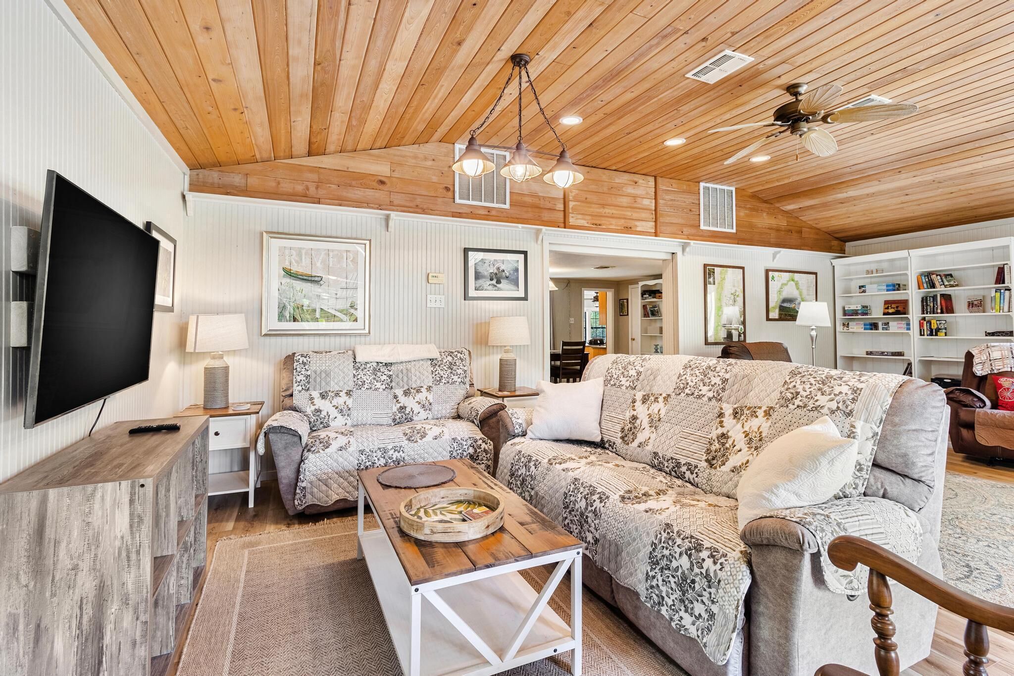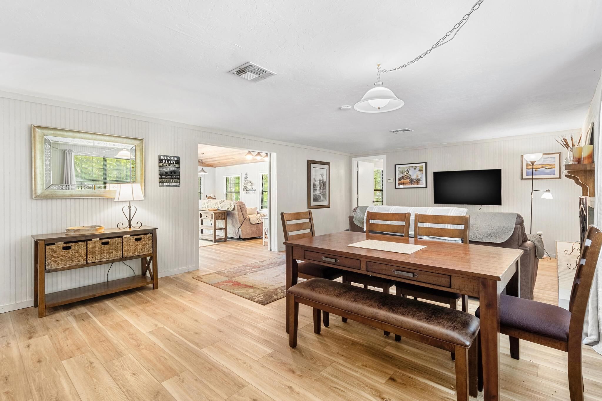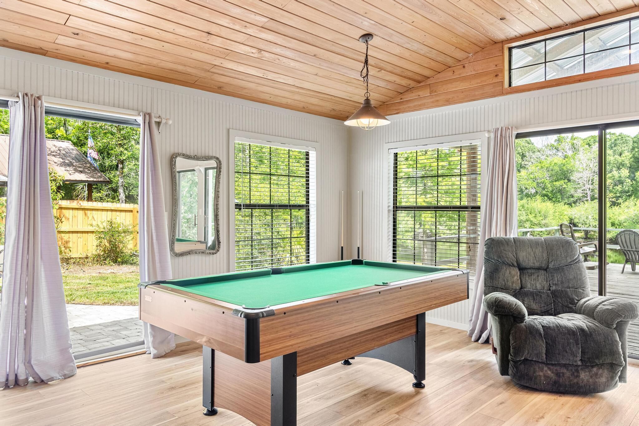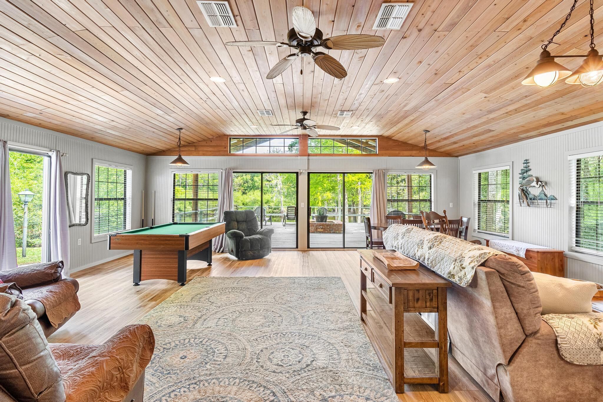 Serenity On The River – Cozy Branford Retreat! Welcome to our tranquil retreat on the Santa Fe River! Our 2BD, 2BA home offers a peaceful escape for nature lovers and outdoor enthusiasts. Nestled on a lot with direct access to the river, you'll enjoy stunning views from the comfort of the living room or outdoor deck. Watch the sunrise over the river while enjoying morning coffee, or unwind in the evening with a glass of wine as you soak in the sunset. Book your stay today and experience the beauty of the Santa Fe River at our cozy retreat!The interior of the home is cozy and comfortable, with two bedrooms that can accommodate up to four guests– plus a pullout queen sofa that can sleep an extra two. The living room is furnished with comfortable seating and a flat-screen TV, perfect for relaxing after a day of exploring the nearby parks and trails. Enjoy a game of pool with family and friends in the game corner of the living room, which looks out onto the river! The kitchen is fully equipped with everything you need to prepare meals during your stay.For outdoor enthusiasts, there are plenty of activities to enjoy in the surrounding area. Take a canoe or kayak trip down the Santa Fe River, or explore the nearby parks and trails. Tubing and fishing are also popular activities in our neck of the woods. With its natural beauty and peaceful ambiance, our retreat on the Santa Fe River is the perfect destination for a relaxing and rejuvenating getaway.We are close to many local springs, including Ginnie Springs (19 minute drive), Ichetucknee Springs (22 minute drive), and Blue Springs (20 minute drive.) There are also pontoon boat and jetski rentals available approximately 13 minutes away.Pets are allowed with an additional $100 pet fee per animal.We are next door to a boat ramp.Please be aware that as our home is located in a natural setting on the Santa Fe River, it is not uncommon to encounter snakes, insects, and other wild animals during your stay. We recommend that you take appropriate precautions and exercise caution when exploring the surrounding area.Please be aware there are exterior security cameras around the outside of the home.