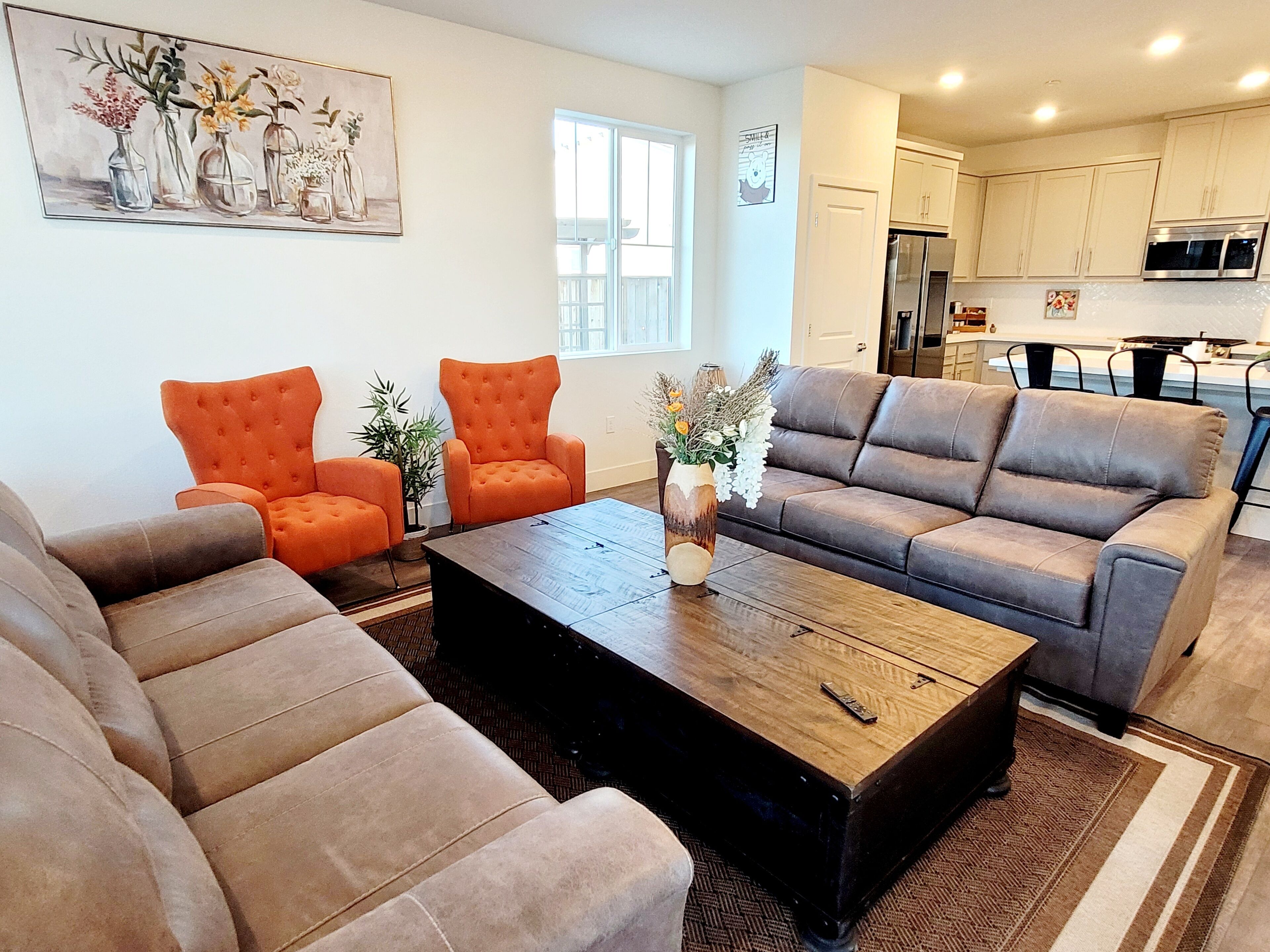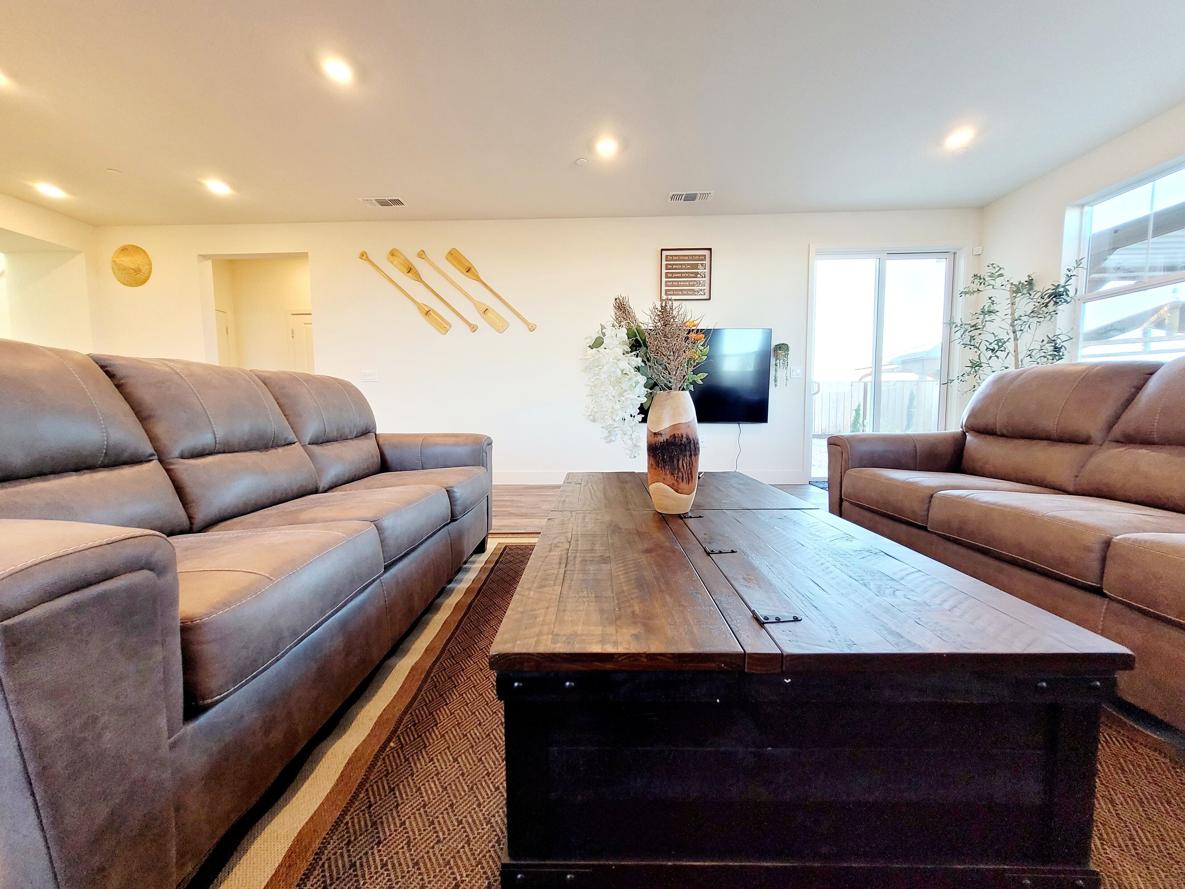 Peaceful 4 bd/3bath Resort style Villa w/Club House-Pool, Spa Deck Garden Enjoy a cozy, elegant retreat in the beautiful brand new Tracy Hills resort community. Sit on the deck, gaze at the rolling mountains while sipping a local wine from the welcome basket with snacks, provided on your arrival. Soak in the spa with beautiful lighting and lush garden all around. Take a dive in the club pool, lounge in the club-house, stroll through surrounding parks. A short drive to the historic downtown, shops & restaurants. Long term corporate staff housing enquiries are welcome!
