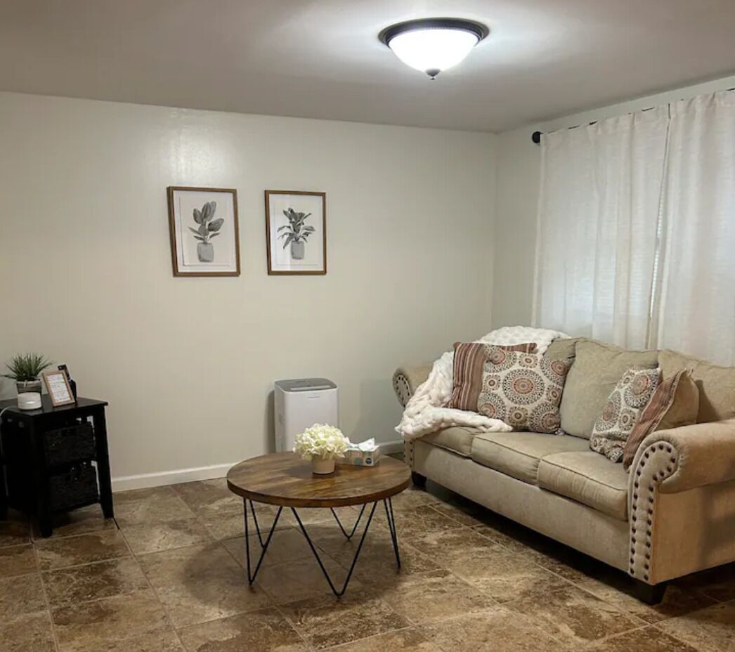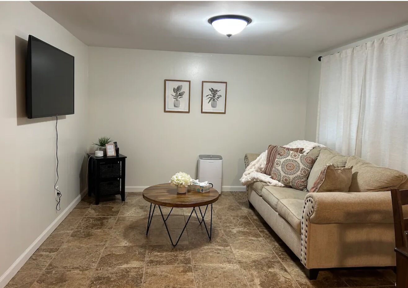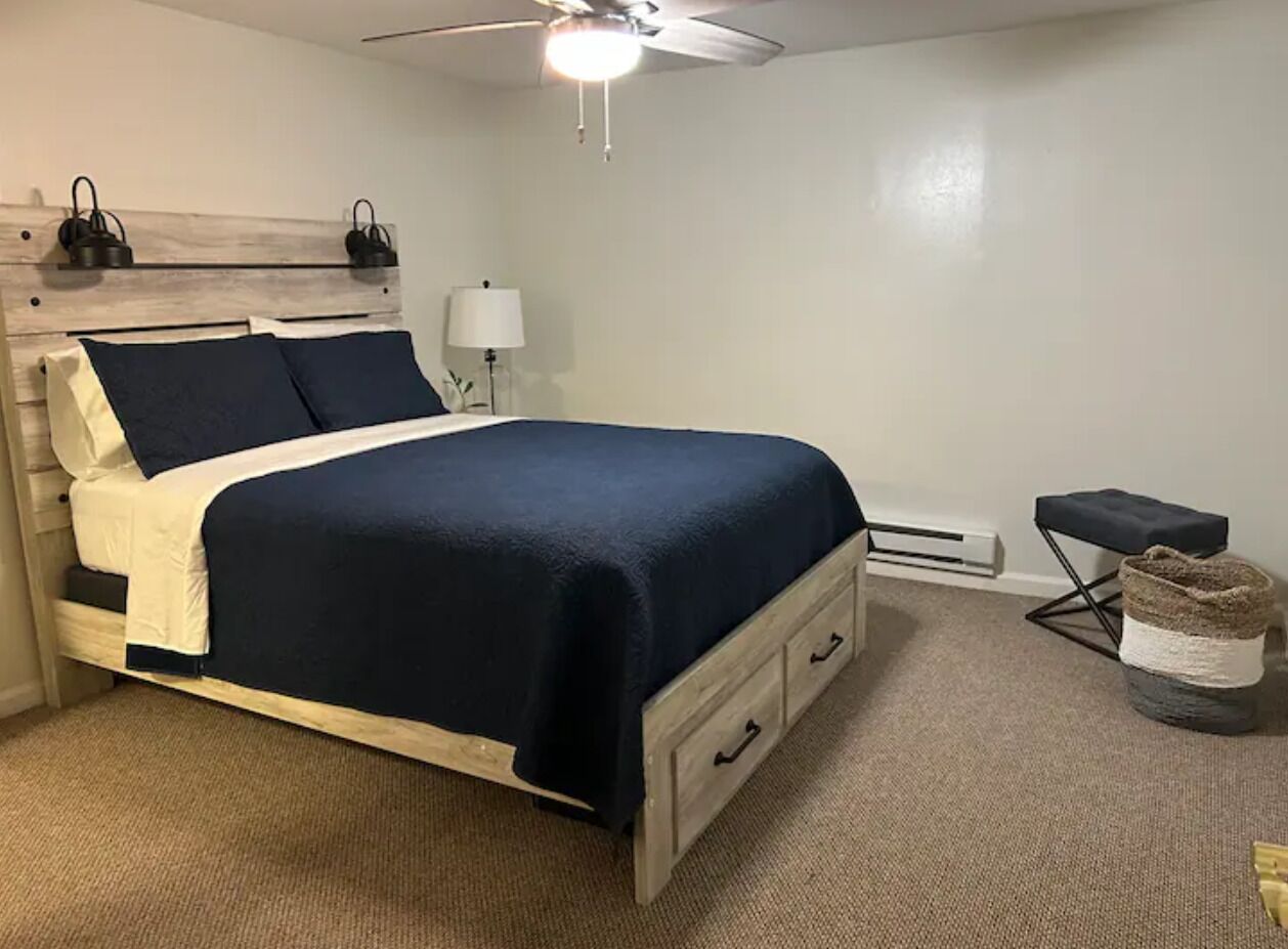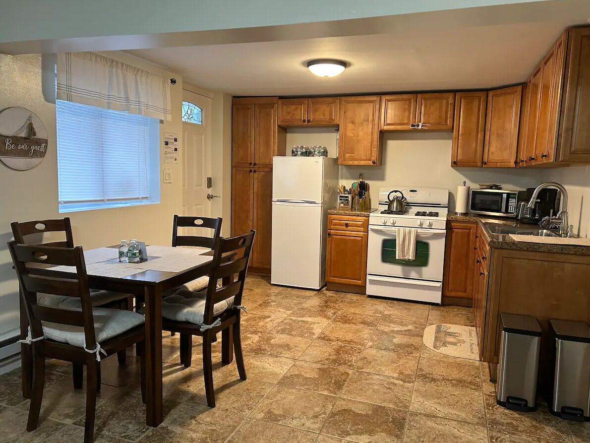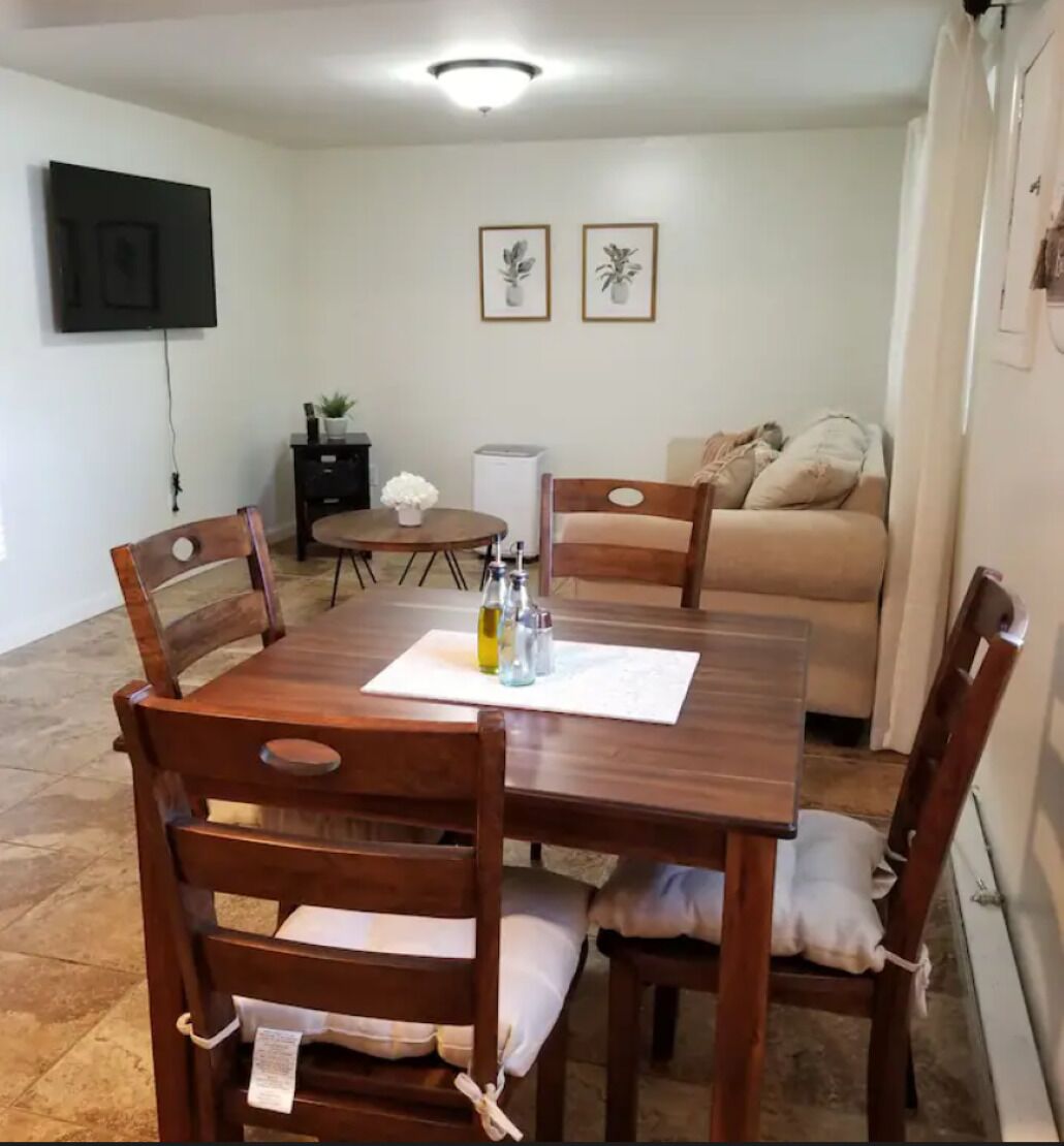 Cozy one bedroom apartment in New Fairfield with restorative activities. Cozy and serene one bedroom apartment in the beautiful town of New Fairfield, Connecticut. Has its own private entrance with self check-in process. Full kitchen with all appliances, open space with dining area and living room. Living room has a 50 inch T.V. and a full size sofa bed. The bedroom has a queen size bed with two d...
