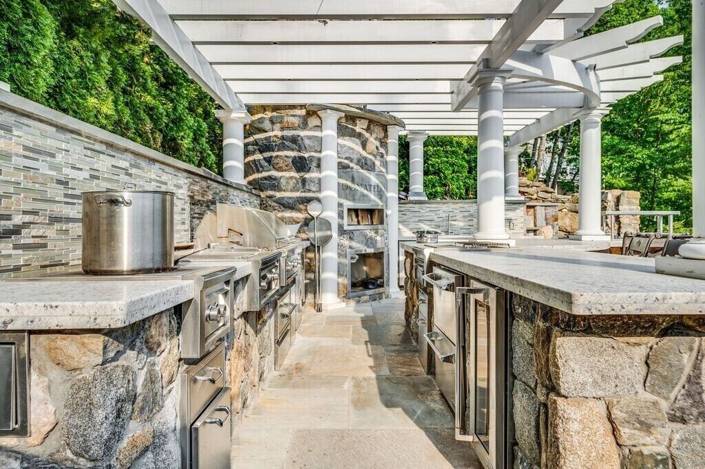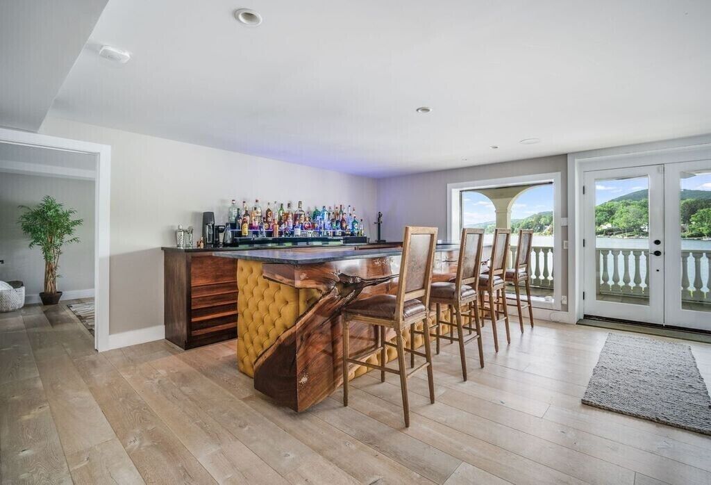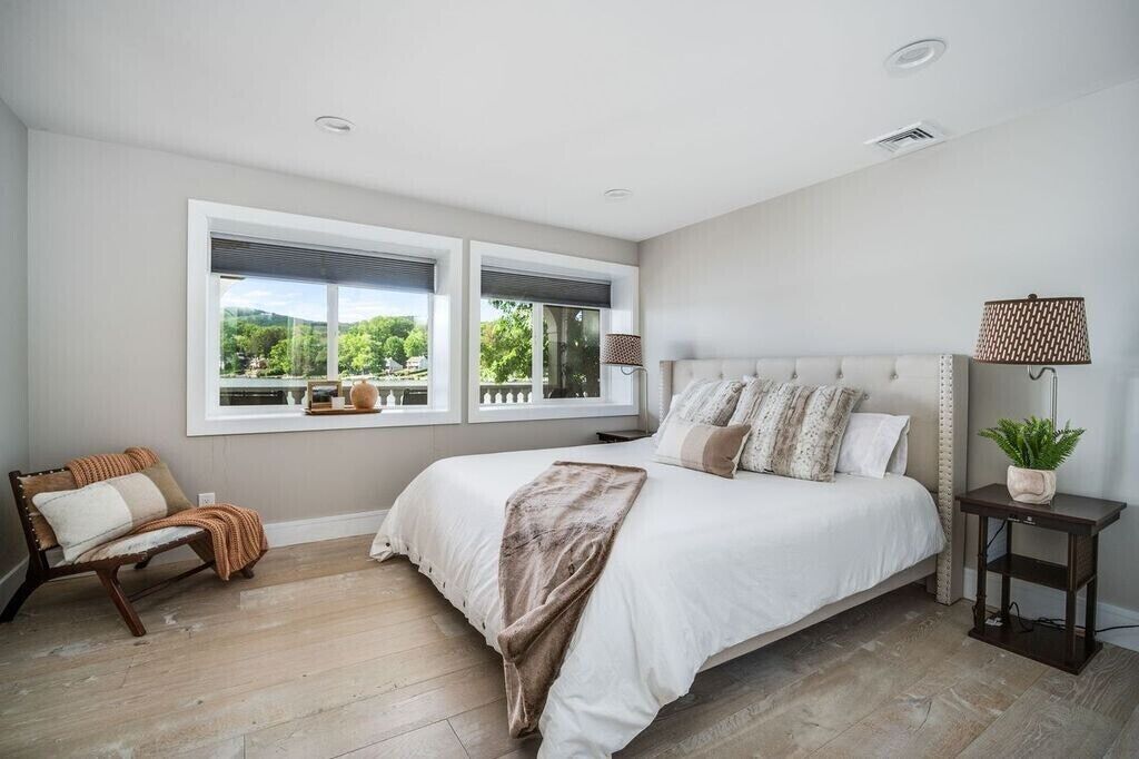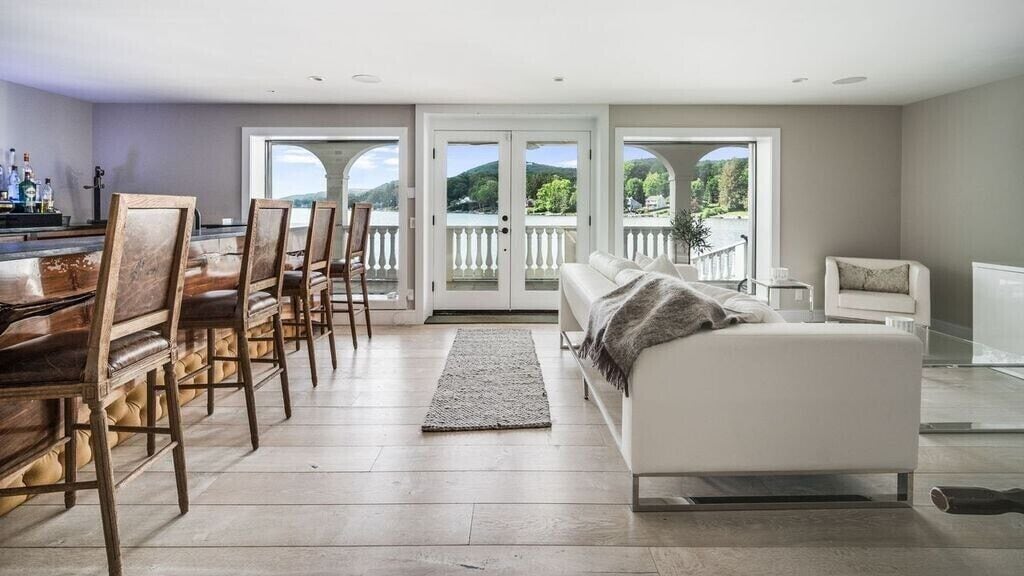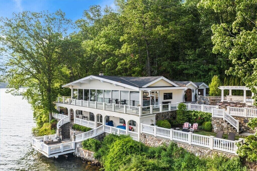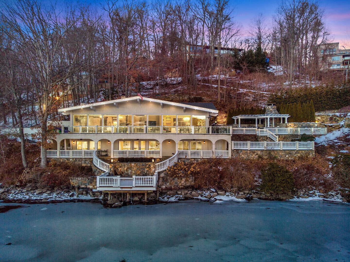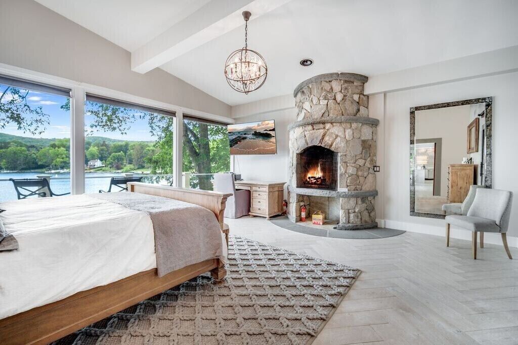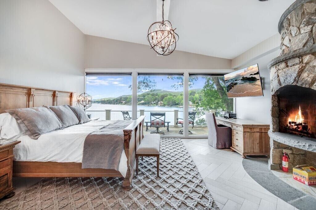 Family Friendly/Direct Waterfront/Chefs indoor & outdoor kitchen/3 fireplaces Wow! is the first word that comes to mind when entering this spectacular waterfront home, an absolute entertainer's delight. Only 90 min from NYC, a rare opportunity to rent a top celebrity chef's house on sought after Candlewood Lake & enjoy all the bells & whistles this special home offers. Whether summer, fall, or winter, you will love the large, open concept living/sitting/dining area that is impeccably decorated with breathtaking lake views, even better in person. Take in the mile long views as you whip up a meal in a dream kitchen, appointed with top of the line appliances, 2 sinks, 2 islands, & full sized wine fridge. The main level flows onto a wraparound deck, leading to an unsurpassed, outdoor professional LYNX kitchen, large enough to host your entire extended family. Wood burning pizza oven, full bar, large grill, warming drawers, multiple burners, sinks, refrigerators, prep area, wine fridge, outdoor heater, everything you could wish for. Additional outdoor lounging space on the lower covered patio, directly off the finished family room, offering another fabulous high end bar with ice machine & dishwasher. Ample sleeping areas, with a king sized bed in all 5 bedrooms. Retreat to the master bedroom & enjoy another beautiful fireplace, and a jaw dropping master bath with a steam shower that will literally transport you to Game of Thrones. The owner will provide multiple paddle boards, kayaks, slide dock & other water toys to make it memorable for you & the entire family!