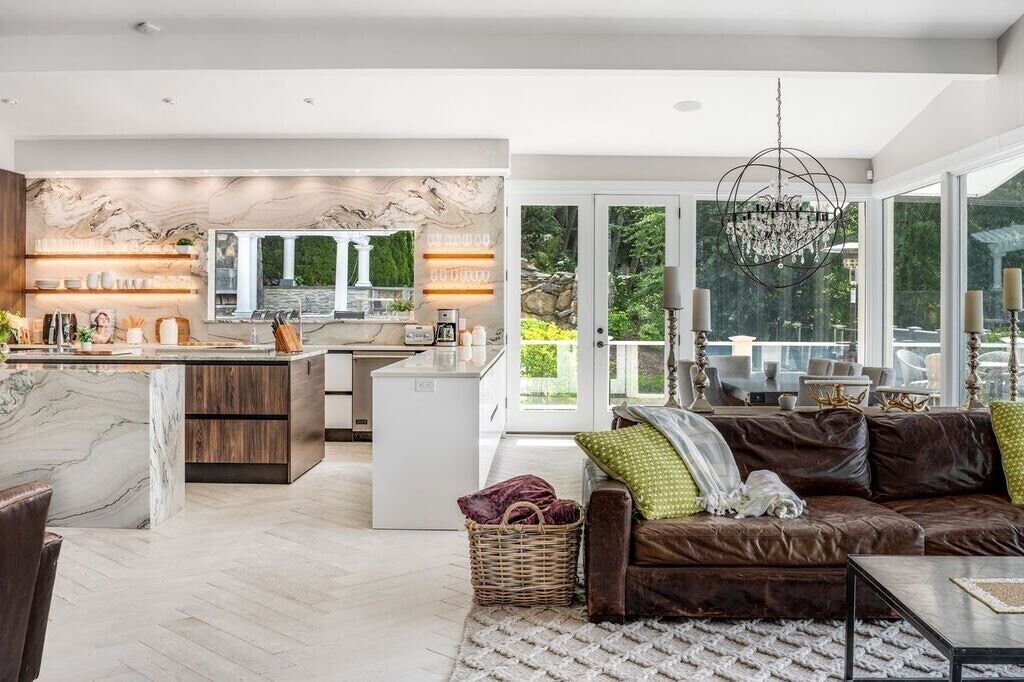 Where is Family Friendly/Direct Waterfront/Chefs indoor & outdoor kitchen/3 fireplaces located?