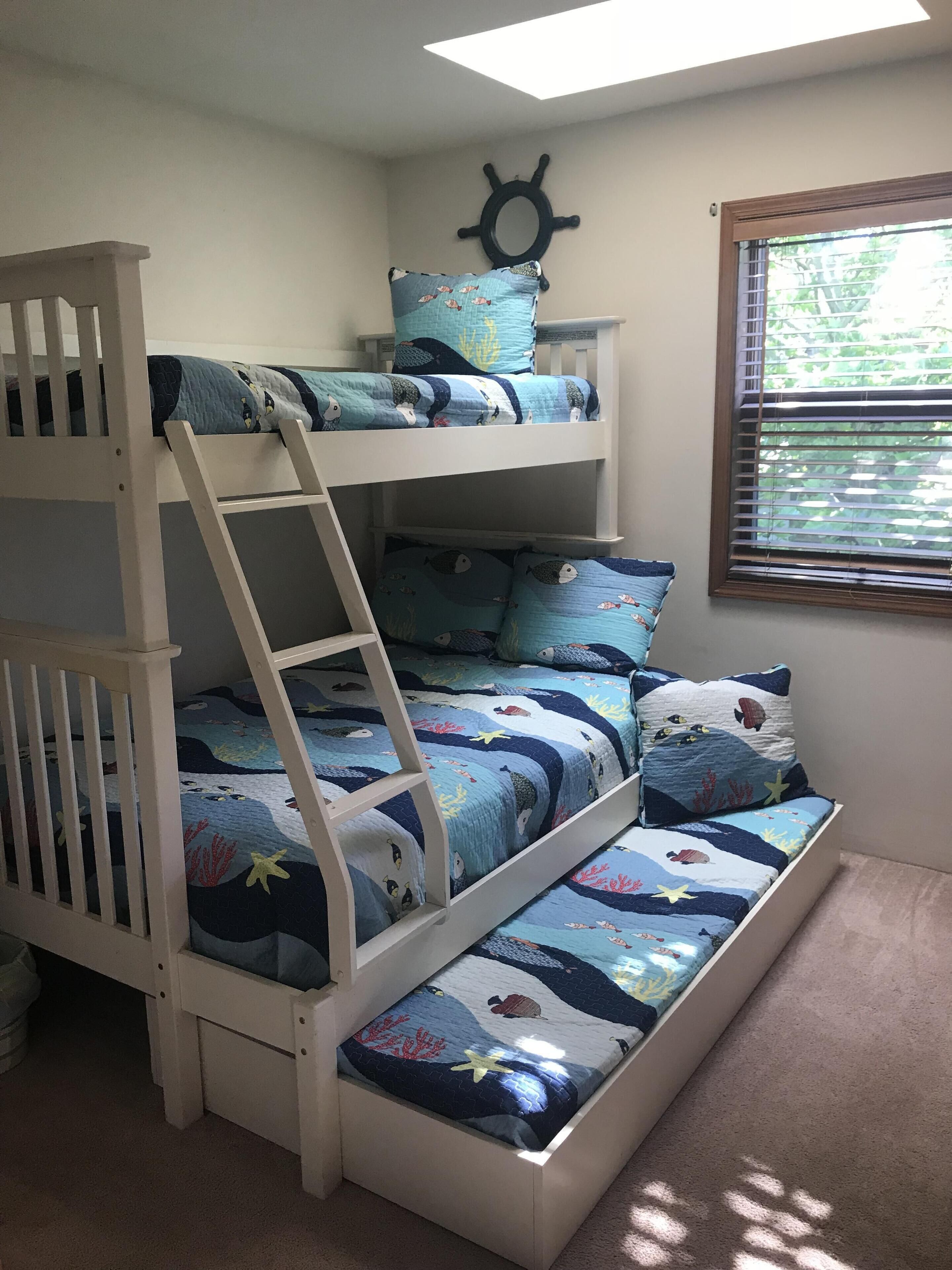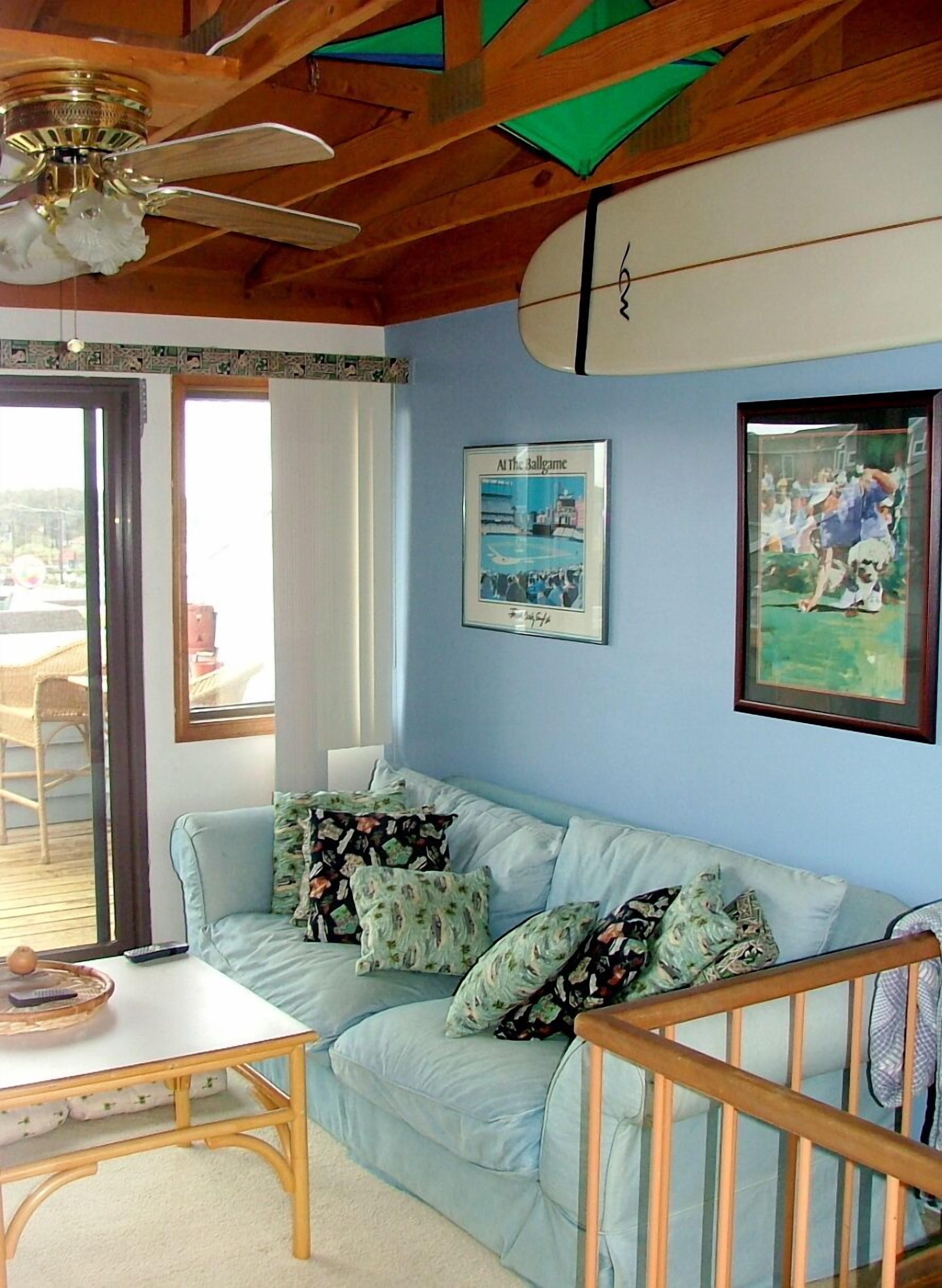 Summer's Last Hurrah 8/31- 9/8 Eighth Night Free! Enjoy the Quiet Coast with all the family - friendly amenities that Fenwick Island has to offer.Four roomy bedrooms plus a loft (tiki room) and three bathrooms make this one of the largest townhouses in Fenwick Island. Located on the oceanside of Ocean Highway on Maryland Avenue, only 100 yards, from the best beach on the east coast. This well built three level townhouse has plenty of room for your entire family with sun splashed decks off the family room,master bedroom and tiki room. The deck off the tiki room has ocean and bay views with outdoor speakers and lighting.Access to large side yard with privacy fence for a picnic and pets. Sleeps 10 easily, fold out sofa bed in the tiki room top level. Three Queens, Single and double with trundle in kids room, hide-away-beds.