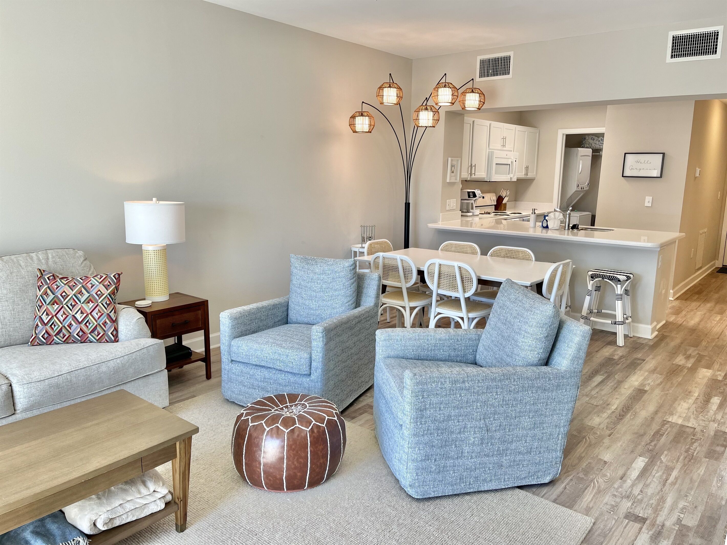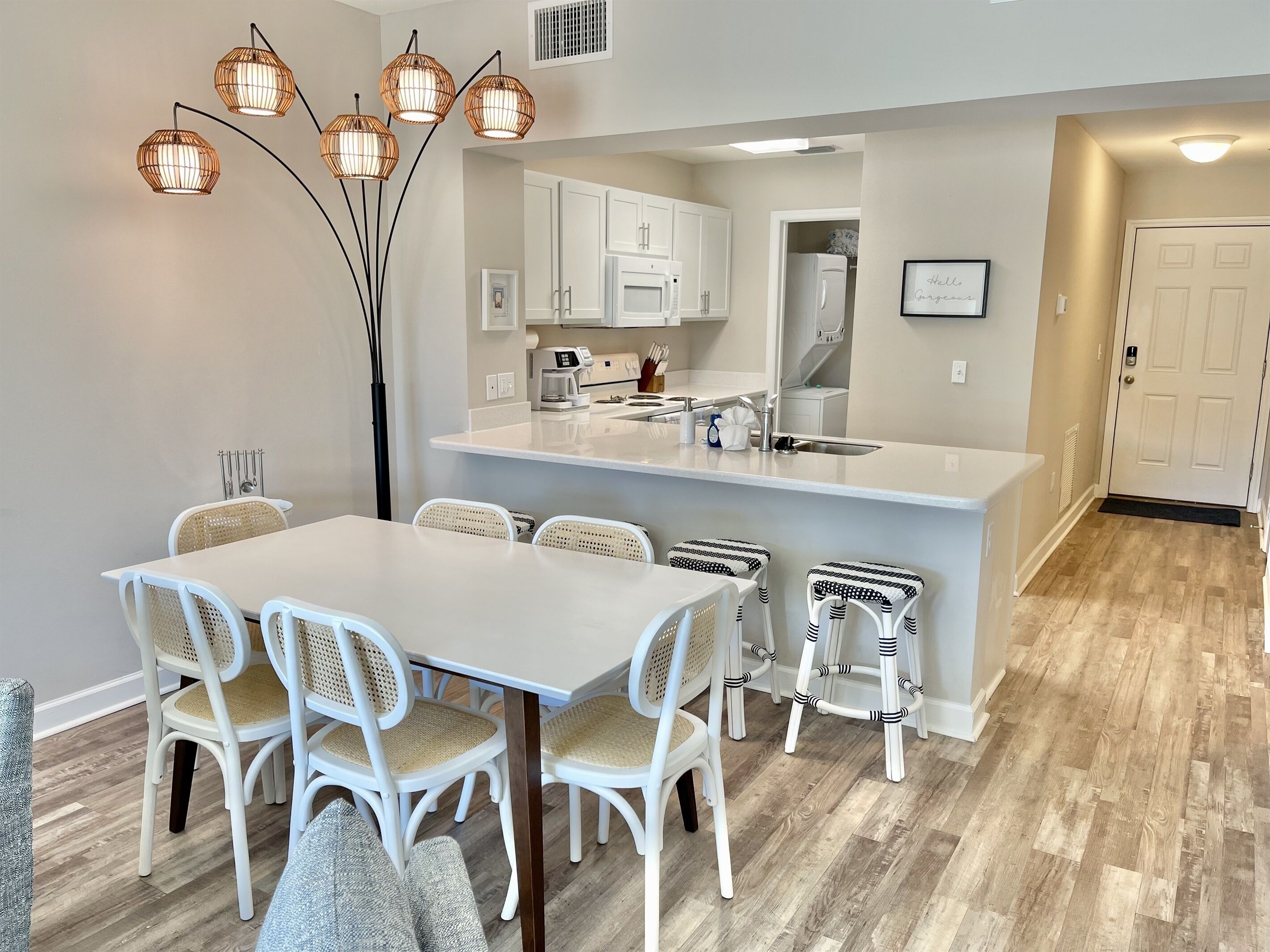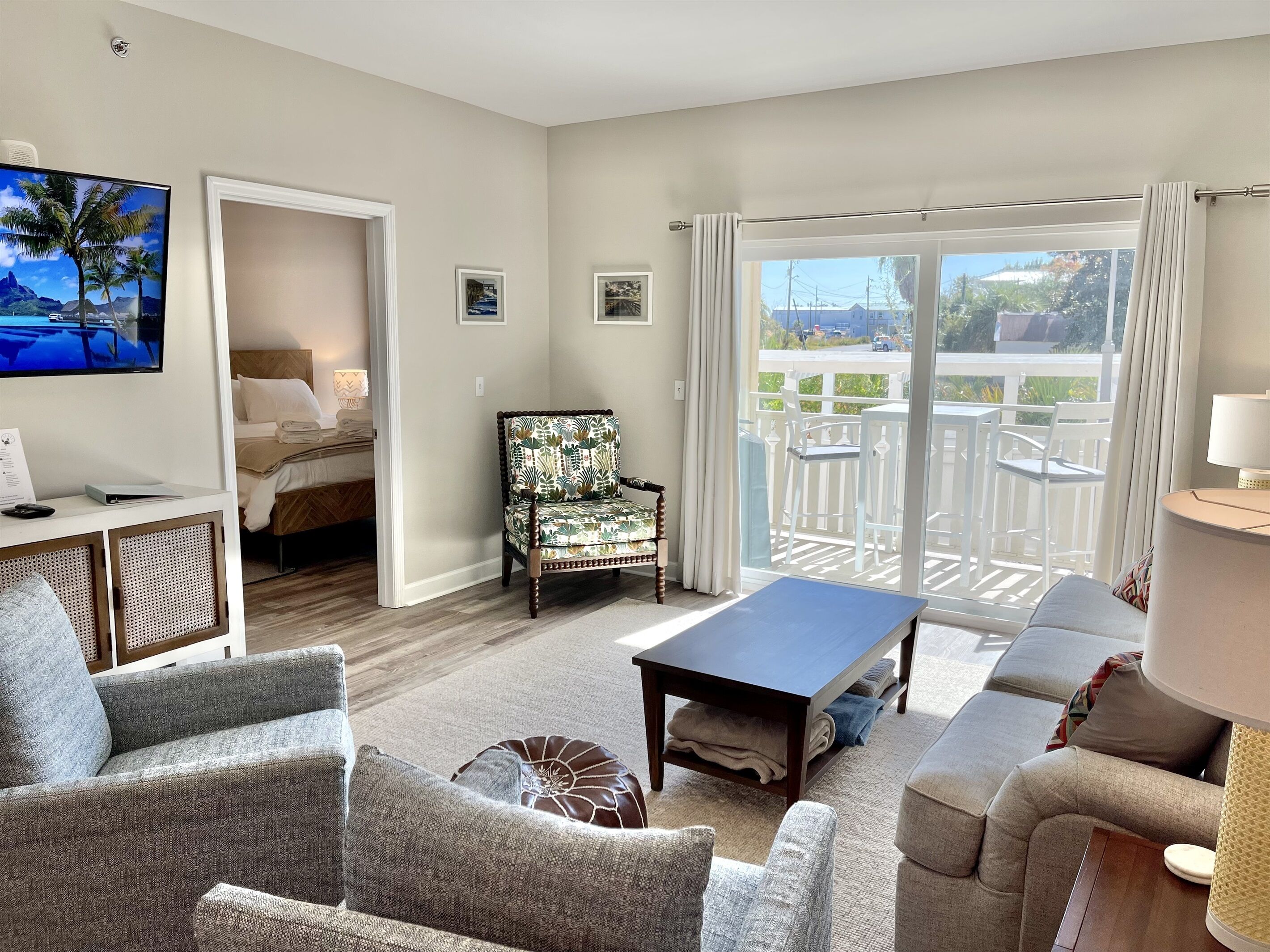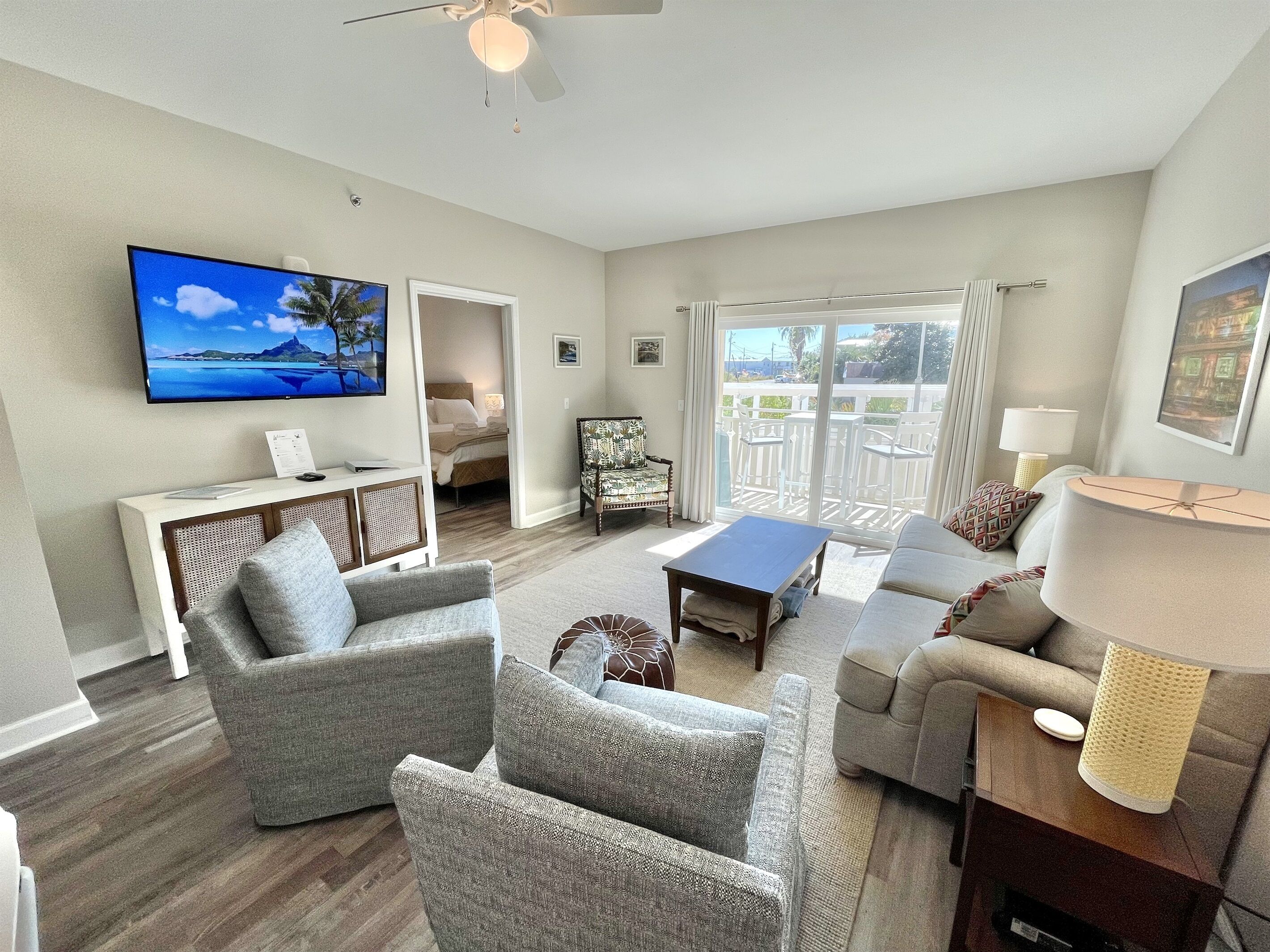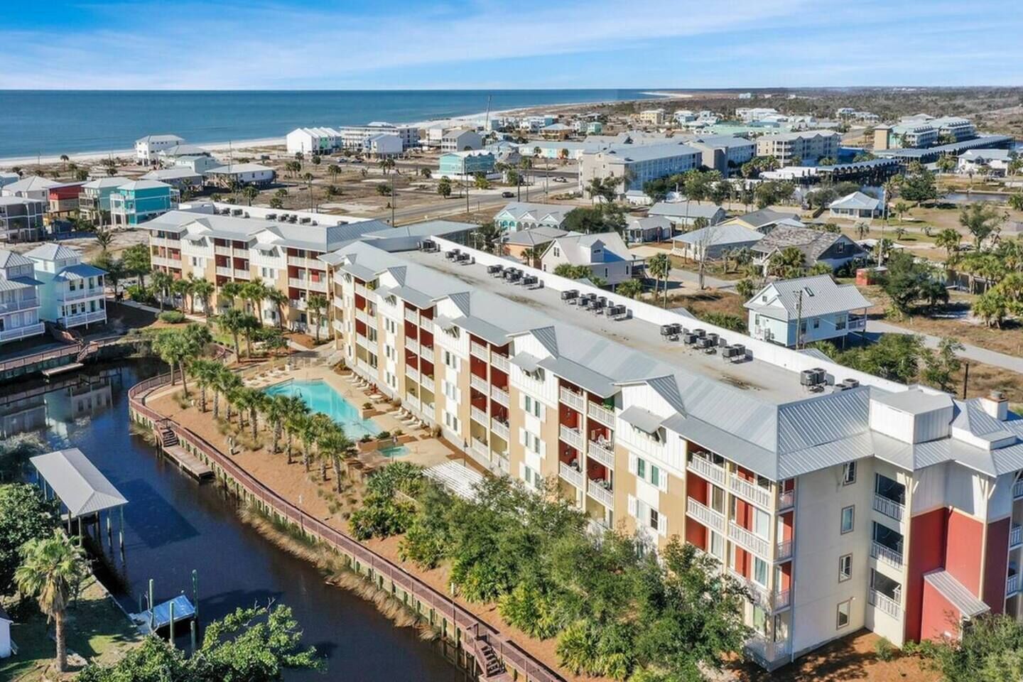 Once Upon a Tide - 2BR/2BA 1st Floor! Pet Friendly Book Direct - Shorelinerentals-pcb(dot)comWelcome to 'Once Upon a Tide' Beautiful 2BR/2BA First Floor condo in Waterside Village! Largest pool in town! King in the master, set of two twin sized bunks in the 2nd bedroom and queen sleeper sofa in living room. Sleeps 8 (6 adults MAX) Have a larger family group? Located right next door is “Shore Beats Work” Unit 110, which accommodates up to 4 more guests. Inquiry for details on booking both units for your family vacation!Family & pet-friendly condo. Located in a gated community located on the West End of Mexico Beach, Waterside Village Condo 109's private balcony offers admirable views of the gorgeous, zero-entry community pool and hot tub, which sits on the bank of the canal and neighboring cottage-style houses. The stylish living room has an inviting sofa right in front of a flat screen TV with cable; so, kick your feet up or enjoy movie night on the queen-sized sleeper sofa. Or, if you are in the mood for a refreshing time, the outdoor features of Waterside Village add just the right touch to make any vacation laid back and enjoyable. Around the pool are lounging chairs, outdoor dining space, park side grills, and boardwalks. Show off your cooking skills in the well-equipped kitchen! It has everything you need to prepare tasty meals and snacks for the group, including a brand-new refrigerator, stove, oven, microwave, and dishwasher. The duo Keurig/Regular coffee maker is a nice addition, especially for coffee enthusiasts. The dining table seats six comfortably, and there are four extra stools at the breakfast bar. You can also conveniently wash your swimsuits in the private laundry room tucked behind a door! The main bedroom enjoys partial canal views and a spacious ensuite bathroom with a shower and double vanity. Hang clothes and store luggage in the master bedroom walk-in closet, which is equipped with a pack-n-play and highchair for your convenience. The guest bedroom has two sets of twin sized bunk beds, smart TV, and closet. There is another full bathroom in the hallway The beach is just a short walk away. Grab the wagon and walk down one-block for a day at the beach with two provided beach chairs, then come back up to let the kids play in the pool while grilling hamburgers for an evening cookout. This unit was gutted and professionally remediated, has been COMPLETELY REBUILT from top to bottom after the storm with new EVERYTHING! New wiring, plumbing, flooring, painting, windows, doors, cabinets, countertops, etc. Mexico Beach truly lives up to its name. Seven miles of pristine sugar-soft sand beaches along the Gulf of Mexico are among the finest in the United States. Sheltered by the long arm of the St. Joseph Peninsula, Mexico Beach is known as "the surf with no undertow". The whole family can swim, wade, snorkel, find that special seashell, or just let the white sand squeak underfoot. When you are in Mexico Beach, you are always within walking distance of the beach. Fish from our community pier or surf cast the emerald green shoreline. Try an offshore charter fishing trip and let one of our local Captains whisk you to prime fishing spots just minutes from shore on one of the many MBARA reef systems. Rental Rules & Info - Bunk Bed Rules: Minimum age for top bunks - 6 years; maximum weight on top bunks - 150 lbs; must use ladder to access top bunk; only 1 person at a time on top bunk- Pet Rules: One small dog friendly up to 25 lbs (no Pit or Rottweiler breeds per HOA)- No limitations on the number of parking spaces. No boat or jet ski trailers allowed in parking lot; boat day docking is available at Waterside Village, with boat parking and ramps located 1/2 mile away at Mexico Beach boat ramp. Don't forget to bring- While Shoreline provides you an initial supply of toilet paper, paper towels, hand soap, laundry pods, dish pods, and trash bags to get you through your first 24 hours, we recommend you bring the following or make your trip to the store after checking in as the unit may have some of these items already: paper towels, toilet paper, trash bags, toiletries, condiments, spices, dishwashing liquid, laundry soap, coffee and coffee filters, beach towels, umbrella, beach toys, sunscreen, and anything else you may need for your perfect vacation.