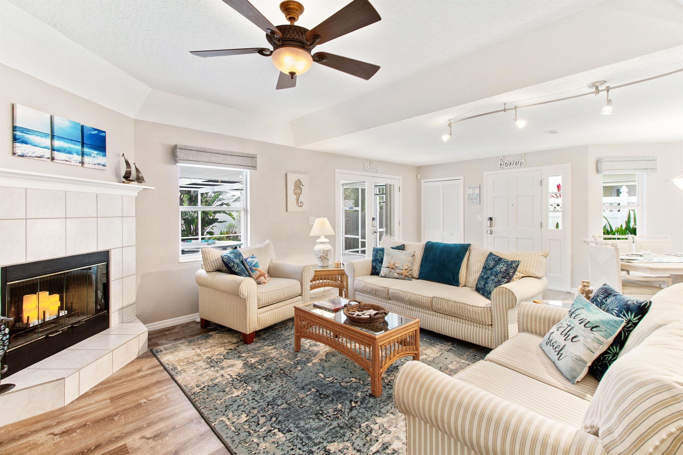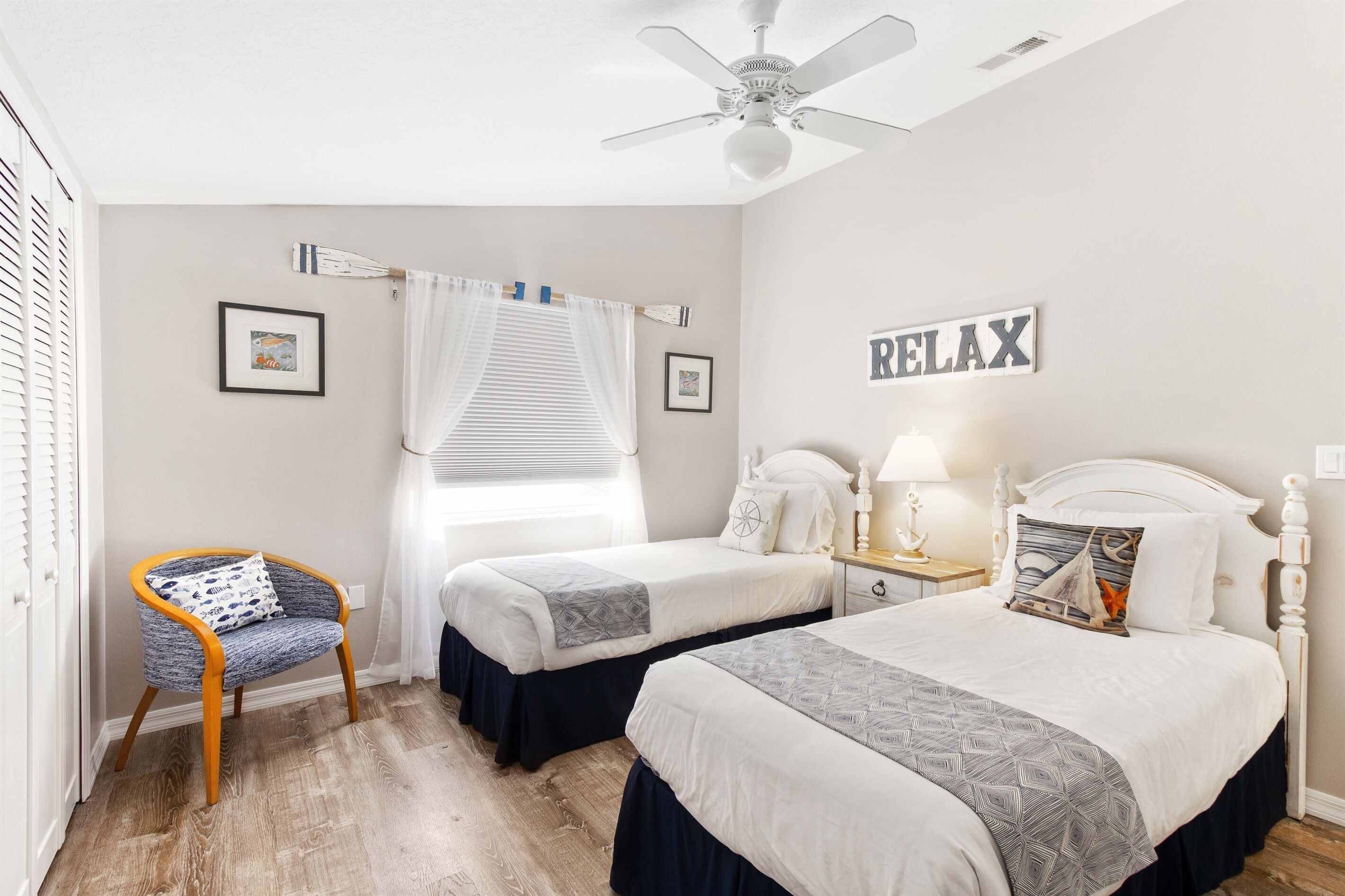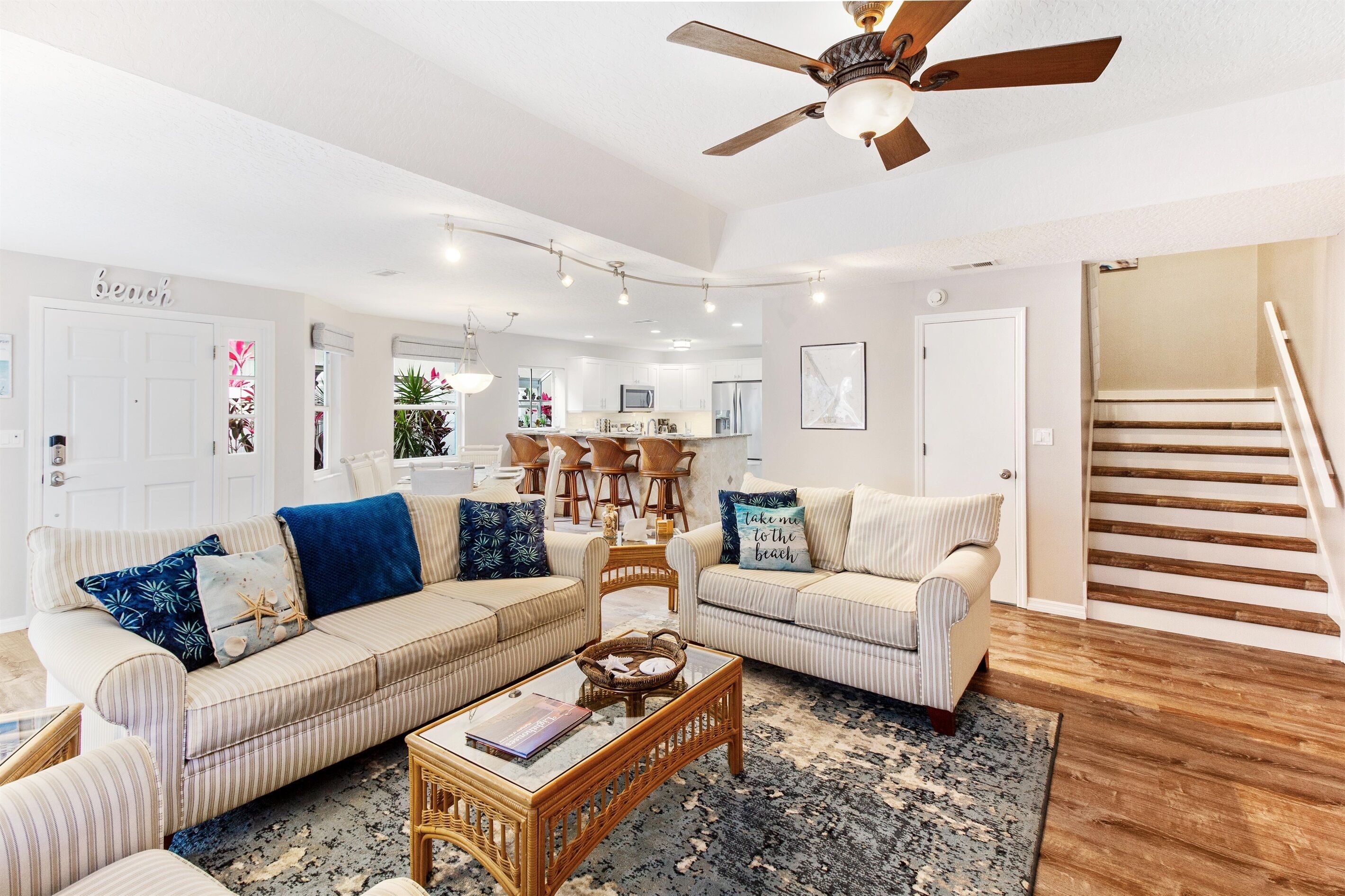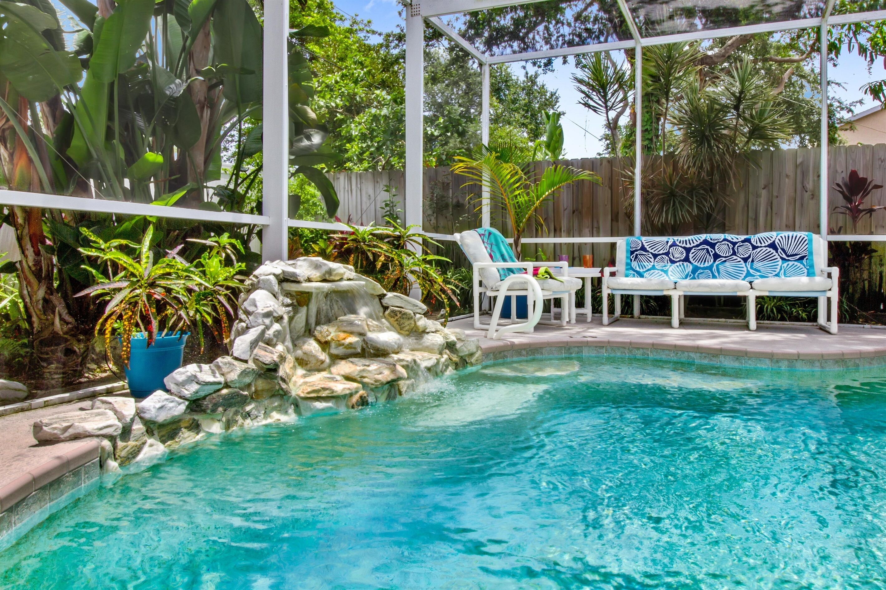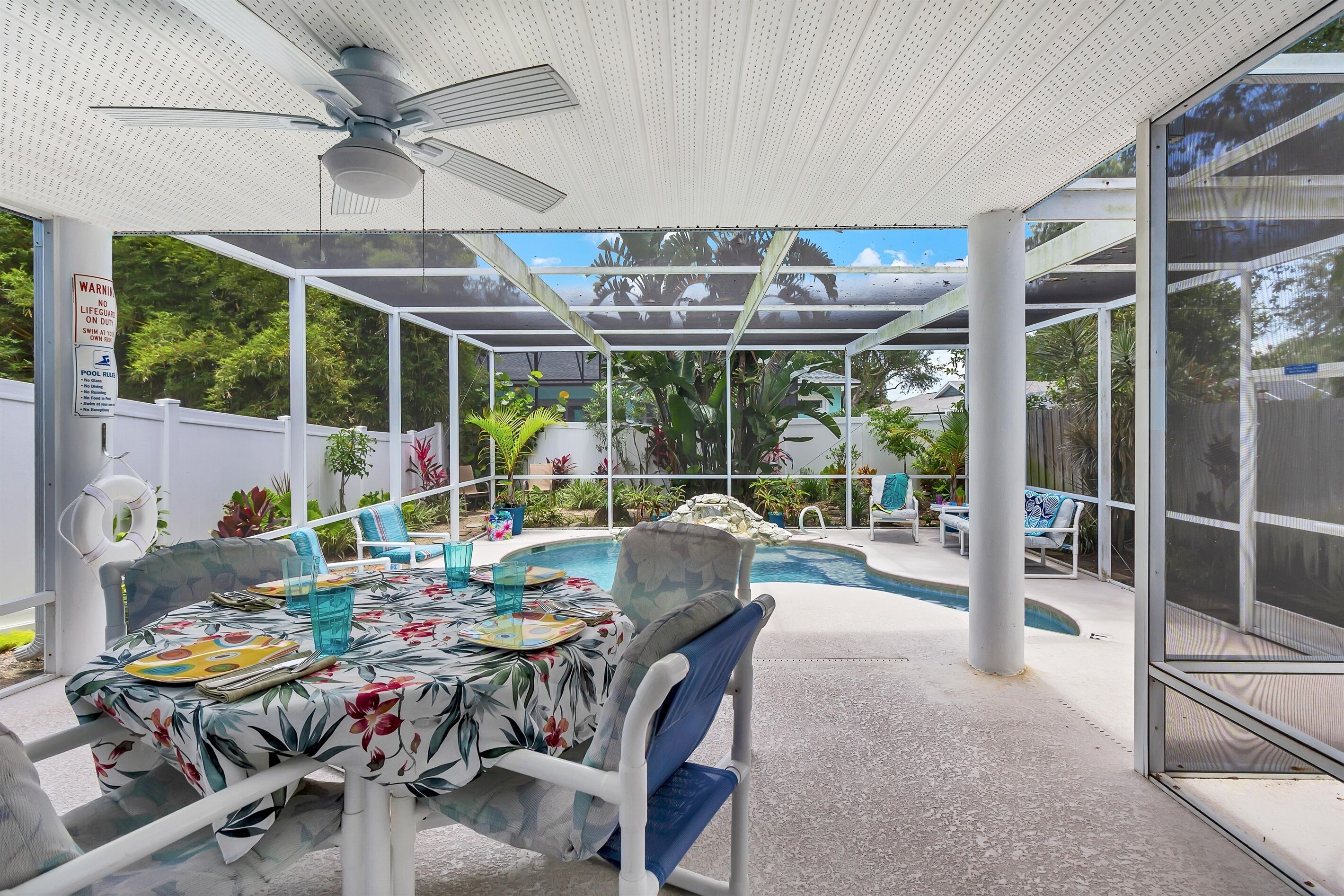 Relaxing Beach House-Heated Pool-Walk to the Beach This beautiful vacation beach home is tucked away in a quiet residential cul-de-sac neighborhood just 2-1/2 blocks from the beach. You will appreciate the luxury vinyl plank floors, kitchen, and bathrooms in this recently renovated home. With over 2,000 sq ft, 4 bedrooms, 2 and a half bathrooms, and a private screen enclosed heated swimming pool...