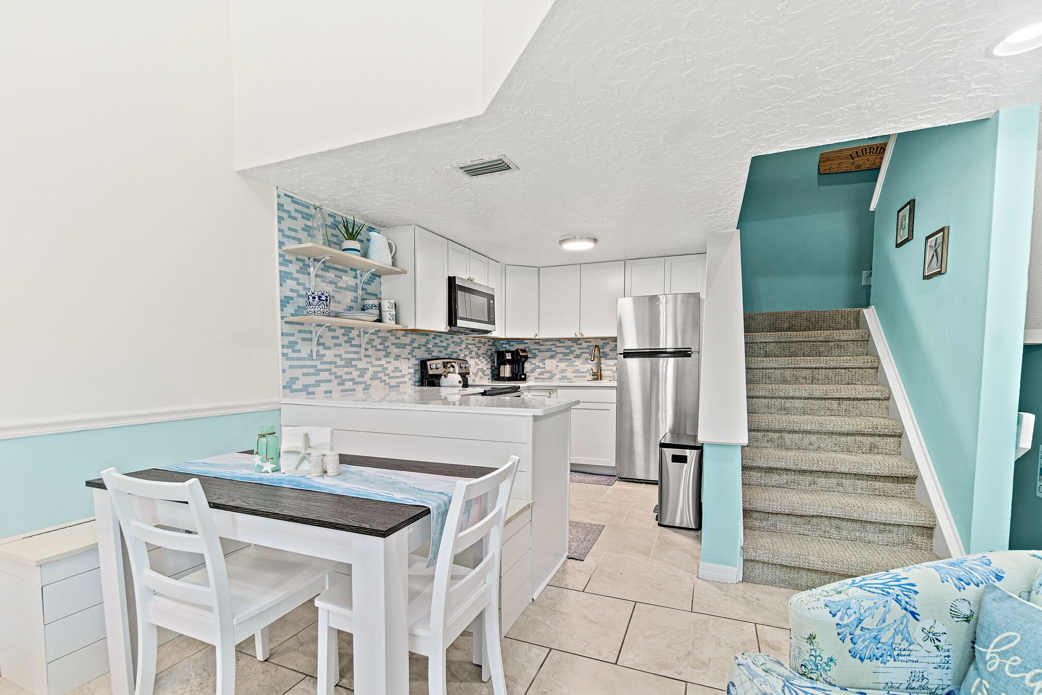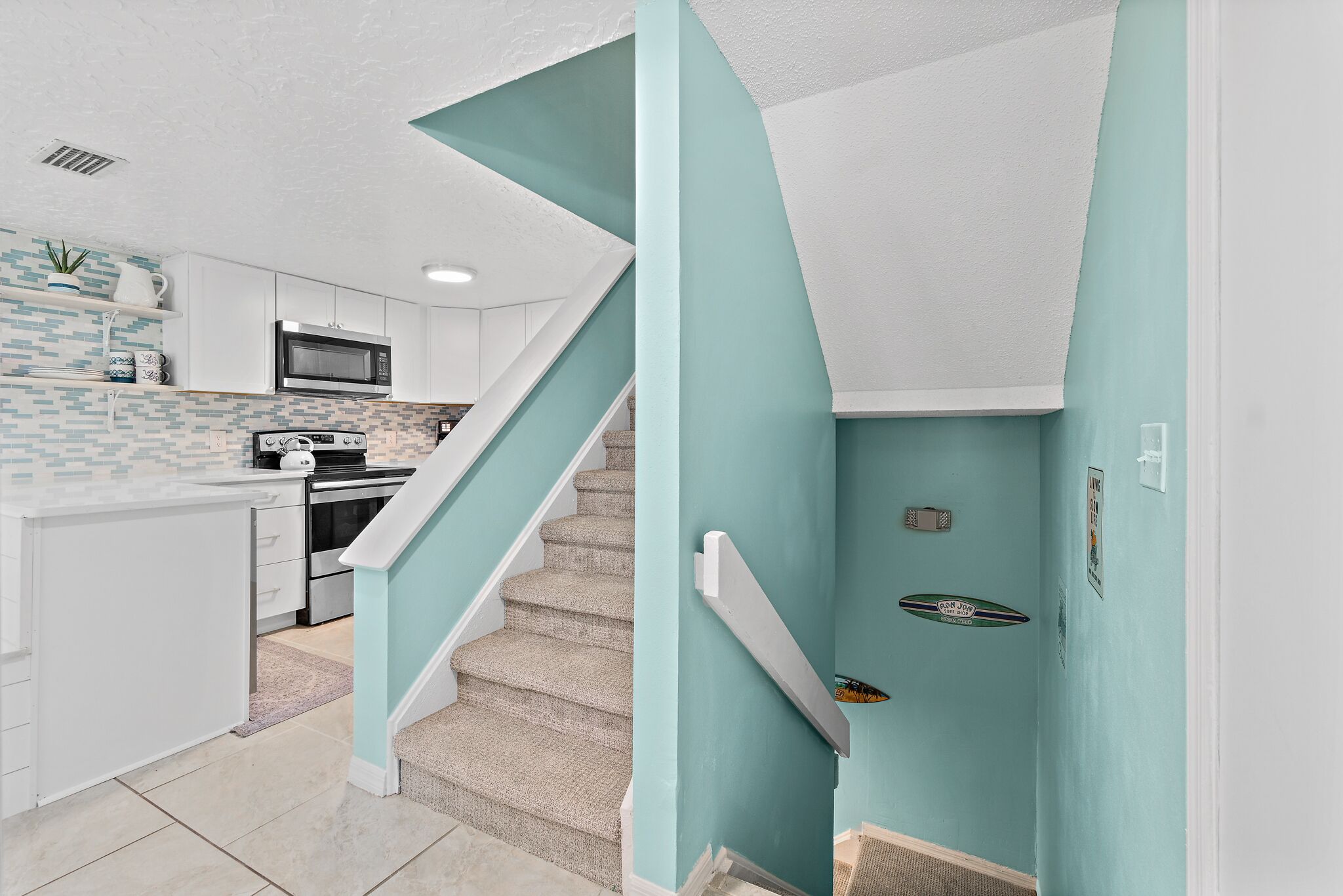 2 Primary Suites | Oceanfront Resort-like Condo Welcome to Royal Mansions #1315, a resort-like condominium right on the beach in Cape Canaveral, Florida! This weekly vacation rental is a newly renovated beach retreat with spacious layout, fantastic amenities, and loads of coastal charm.Condo Highlights:* Resort Amenities: Private Beach Access, Heated Pool, Hot Tub* 2 Primary Suites* Vaulted ceilings* Bright and Sunny* Recently Renovated* Well equipped & modern kitchen* Sleeps 6 (2 Queen Beds and Twin Bunk Beds)* 3 Smart TVs (Both Bedrooms and the Living Room)* Free High Speed Internet (11+ MBPS)* Easy Open Parking * Beach AccessoriesSituated in Cape Canaveral, just moments away from the famous Kennedy Space Center, Port Canaveral, and world famous Cocoa Beach. Explore the wonders of space at the nearby Visitor Complex, or embark on a thrilling deep-sea fishing excursion. This is Orlando’s closest beach, Disney is only 1 hour away. Make your Disney vacation even more magical by staying on the beach. Step inside and be greeted by a beautifully designed living space that effortlessly blends comfort with coastal charm. The open floor plan and vaulted ceiling seamlessly connects the living, dining, and kitchen areas, creating a perfect setting for relaxation and togetherness.The condo offers the convenience of two ensuite bedrooms, making it an ideal choice for traveling with friends and family. These thoughtfully designed bedrooms provide a private and comfortable retreat for each guest, ensuring a seamless and enjoyable vacation experience.The first ensuite bedroom, located just off the main living area. It features a comfortable queen-size bed, coastal-inspired decor, it's own private bathroom, and direct access to the balcony. Enjoy the luxury of a personal space to unwind and recharge after a day of beach activities or exploring the nearby attractions.Just upstairs, the second ensuite bedroom features two sleeping areas. A queen-sized bed is the focal point, but nestled down a short hall is a secondary sleeping area with a twin bunk bed. Families traveling with children will appreciate the ability to have a little separation. The condo has a 2nd floor balcony with a peekaboo view of the ocean. Perfect for morning coffee or al fresco dining. As a guest at Royal Mansions, you'll have access to access to the oceanfront pool, hot tub, and private beach access. The beaches are quiet, relaxing, and away from the crowds of Cocoa Beach.Whether you're planning a family beach vacation, a couples' retreat, or a getaway with friends, this condo offers the perfect balance of shared spaces and private accommodations, making your stay in Cape Canaveral an effortless and memorable experience.Secure your stay today and immerse yourself in the coastal beauty of Cape Canaveral, Florida.Important Note: There are about 8 steps from the parking lot to the front door, as well as another 10 steps to the main level of the condo. From there, the 2nd bedroom is up one more set of stairs.