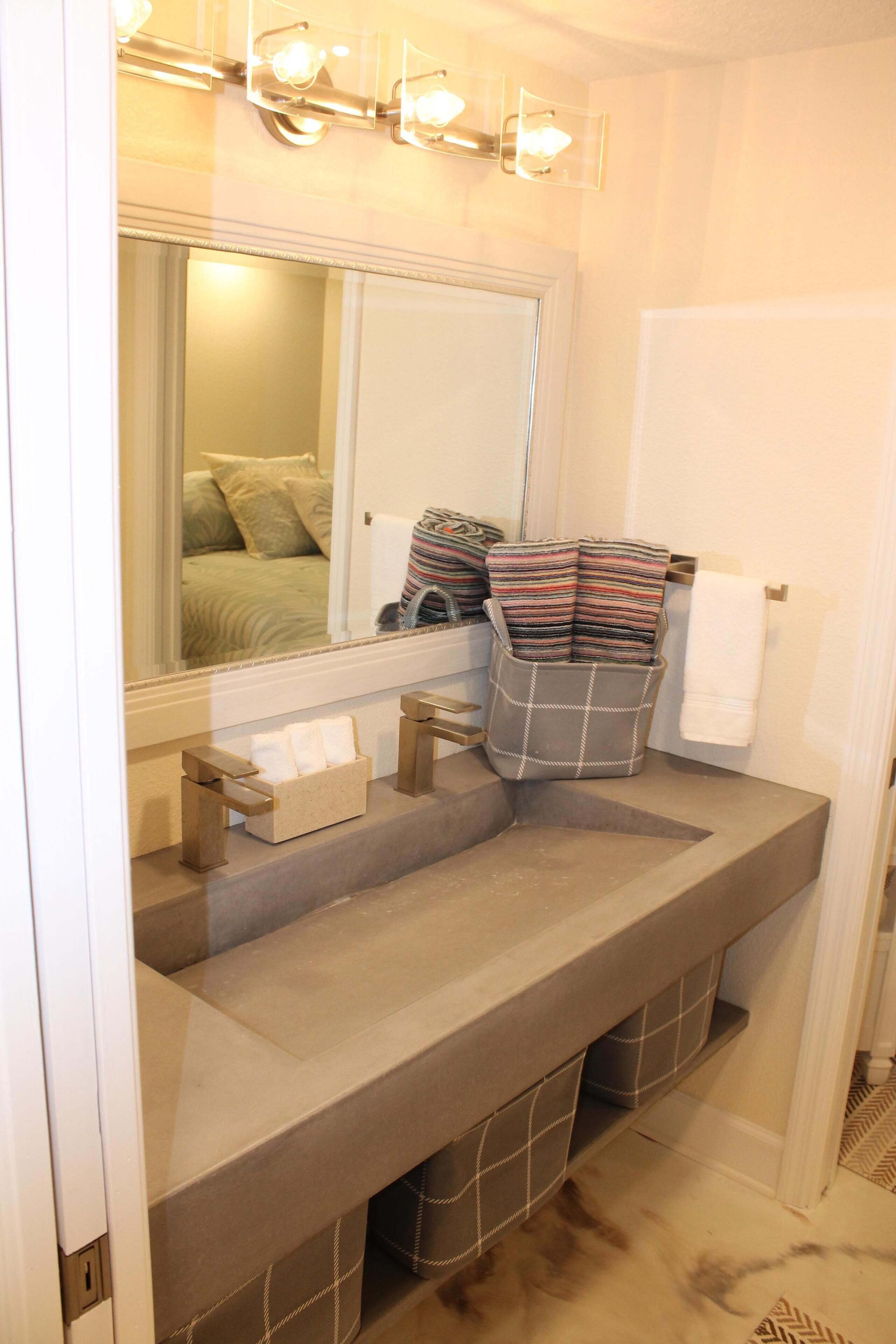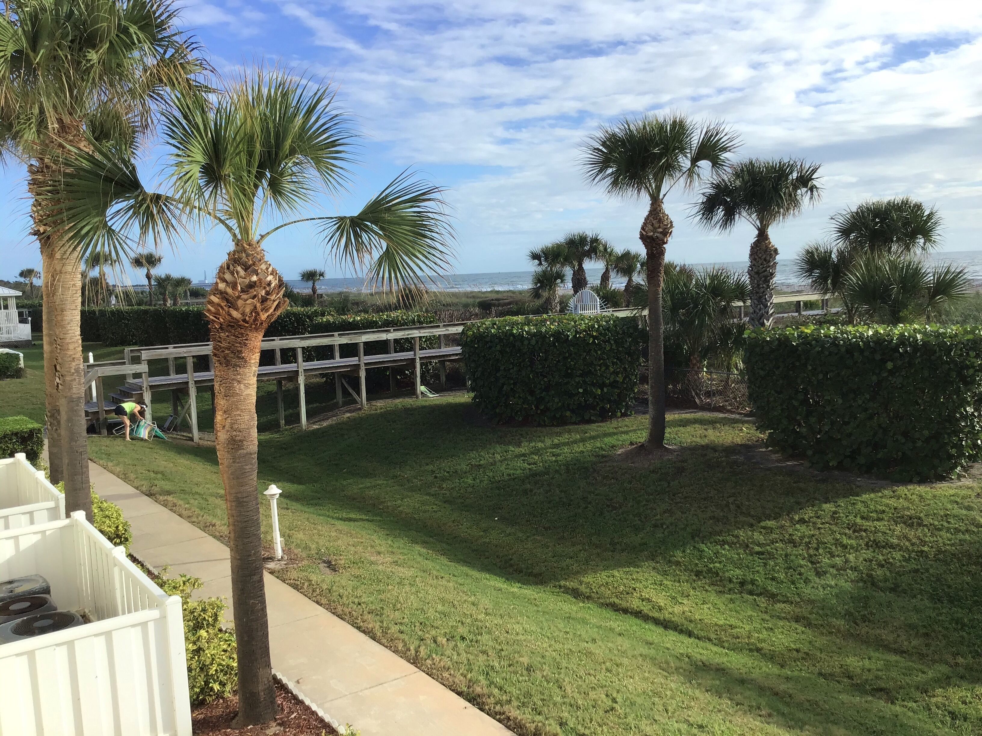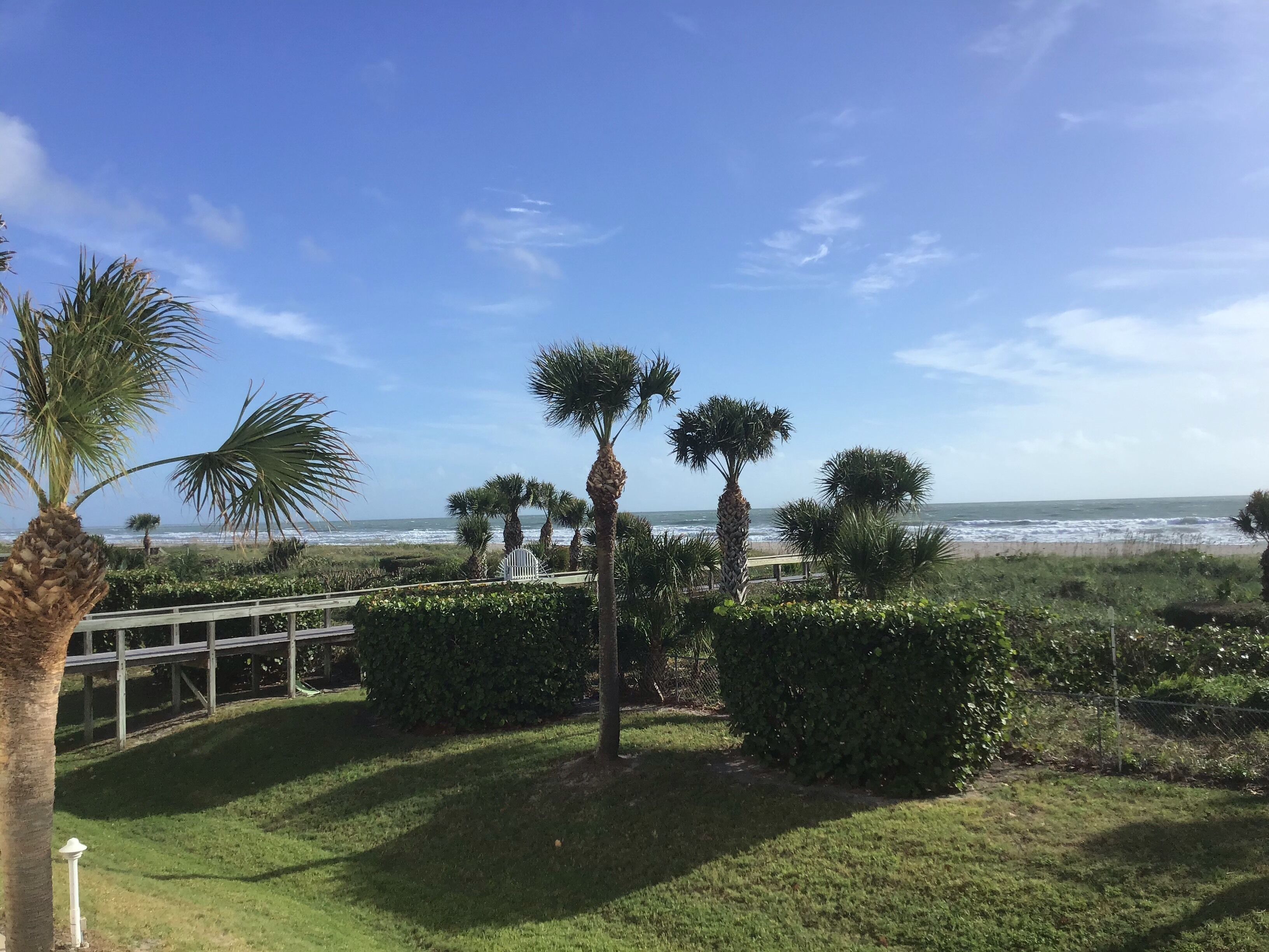 Port Canaveral Beach Retreat - Little Things Make a Difference Enjoy gorgeous views of the beach and ocean from almost every room in this 2nd story condo. One of the only atrium unit’s offering a King bed. Located on the pristine beach in Cape Canaveral, this is the closest beach to Orlando, Disney World, Kennedy Space Center and Port Canaveral. The condo has a full kitchen, washer and dryer, cable TV and wifi. The condo is only a few steps away from the beach. Cape Canaveral is a world renowned vacation destination because of it's unique location. Rocket launches can be seen from the condo balcony and beach. Port Canaveral is only minutes away and home to many off-shore fishing charters and many local restaurants. Disney, Royal Caribbean, Norwegian and Carnival Cruise lines depart regularly from Port Canaveral. Tropical estuaries are close by where you can see the dolphin and manatee and fish for speckled trout and redfish. For past guests familiar with Royal Mansions, this atrium unit has been remodeled to accommodate a luxury King size bed in the master bedroom. This unit now has a pass through from kitchen to vanity and bathroom area, which provides additional privacy for the master bedroom. You no longer have to go through the bedroom to access the bathroom. The bathroom has been completely remodeled with a nice walk-in travertine shower, stainless fixtures dual shower heads and body jets. The separate vanity area offers a floating concrete sink large enough for two, stainless fixtures, hair dryer and basket storage underneath. Shampoo, conditioner and soap are provided.The kitchen has also been completely remodeled with custom cabinets and smaller stainless appliances to open the kitchen and maximize space. Additional amenities include Keurig and built in wine cooler. Enjoy your morning coffee and beautiful sunrise from the high top table offering full ocean view. Watch afternoon ships depart from Port Canaveral as well.