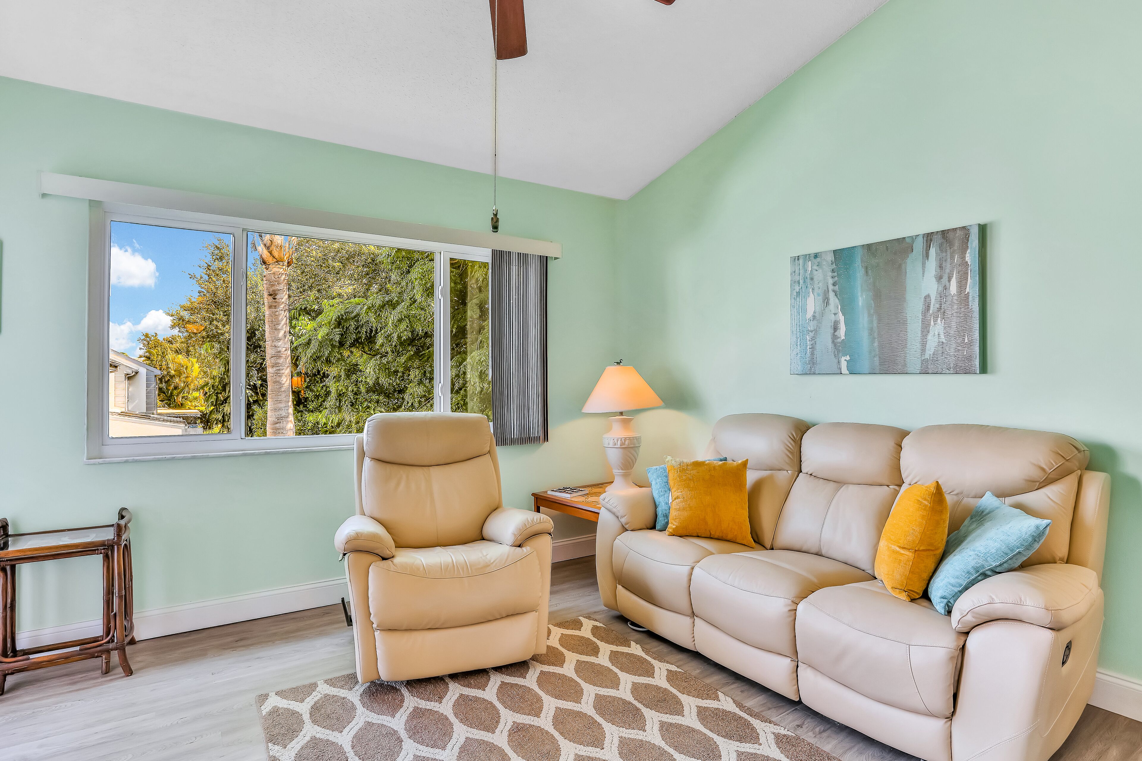 Family-Friendly Condo Close to Beach W/ Shared Pool, Free WiFi & Private Balcony Happiness Comes in WavesOur calendar is updated in real-time & our nightly rates are accurately displayed. Simply enter your desired dates and click 'Book Now!'Find yourself sipping cold cocktails in the salty breeze in no time when you make your way to Cape Canaveral! Perfect for any occasion, Happiness Comes in Waves is a stylish condo in the heart of all the action boasting fun seafoam green accents, an open layout ideal for entertaining the whole gang, and a private balcony to get a bit of fresh air each day. When the days heat up, rub in some sunscreen and make your way down to the shared pool to get your tan on or take a quick dip. If the beach is more your speed, take a short drive to the sugar-white sand and listen to the tide ebb and flow as you munch on a picnic. When you return to home base, the living room offers plush leather sofas and a flatscreen TV which will be all you need to slip into relaxation mode. Plus, the fully equipped kitchen has all of the appliances and utensils needed to whip up a tasty meal in no time! What are you waiting for? You deserve a vacation!Things to KnowFree high-speed WiFiSnowbird-friendlyThis property is managed by Vacasa Florida LLC.Parking notes: There is free parking available for 2 vehicles.Damage waiver: The total cost of your reservation for this Property includes a nightly damage waiver fee, plus tax if applicable (the “Damage Waiver”). (A discount may be applied for stays of 28 nights or longer, if permitted.) The Damage Waiver covers you for up to $3,000 of accidental damage to the Property or its contents (such as furniture, fixtures, and appliances) as long as you report the incident to the host prior to checking out. The Damage Waiver fee eliminates the need for a traditional security deposit.More information can be downloaded from the "Rental Agreement" on the checkout page.Due to local laws or HOA requirements, guests must be at least 25 years of age to book. Guests under 25 must be accompanied by a parent or legal guardian for the duration of the reservation.