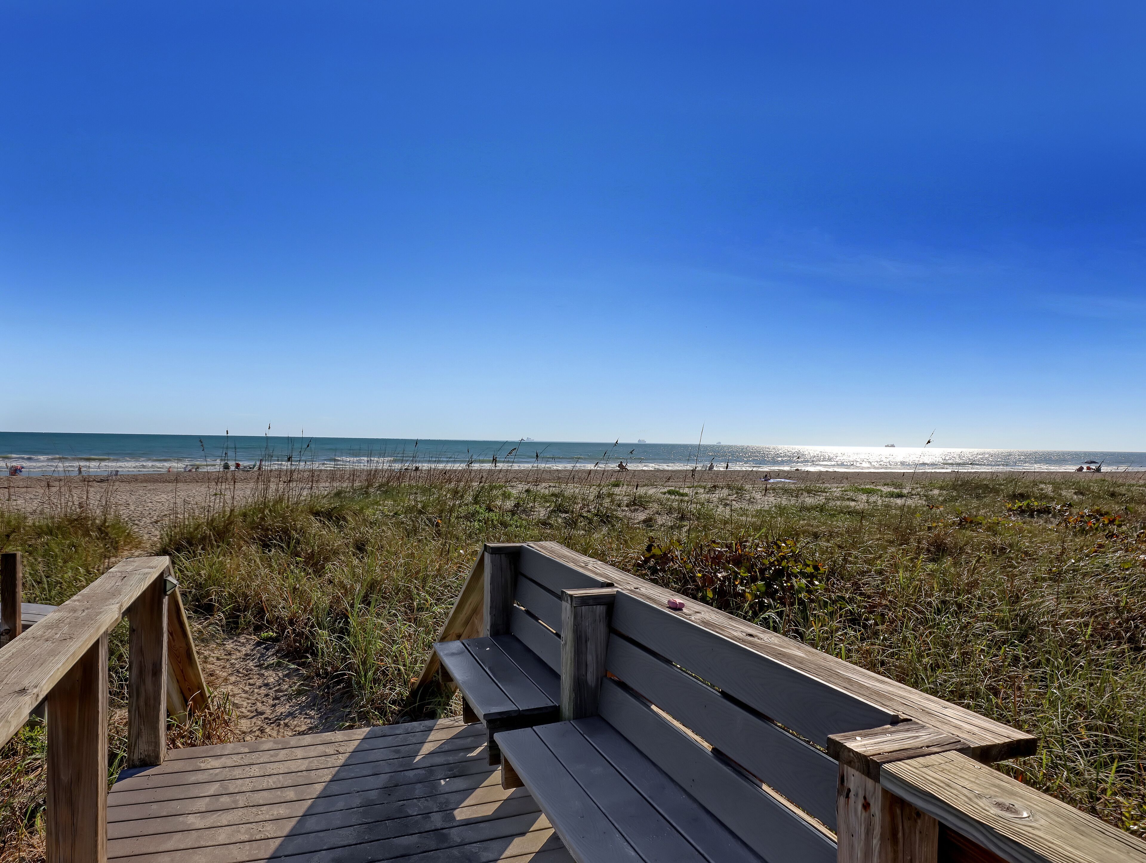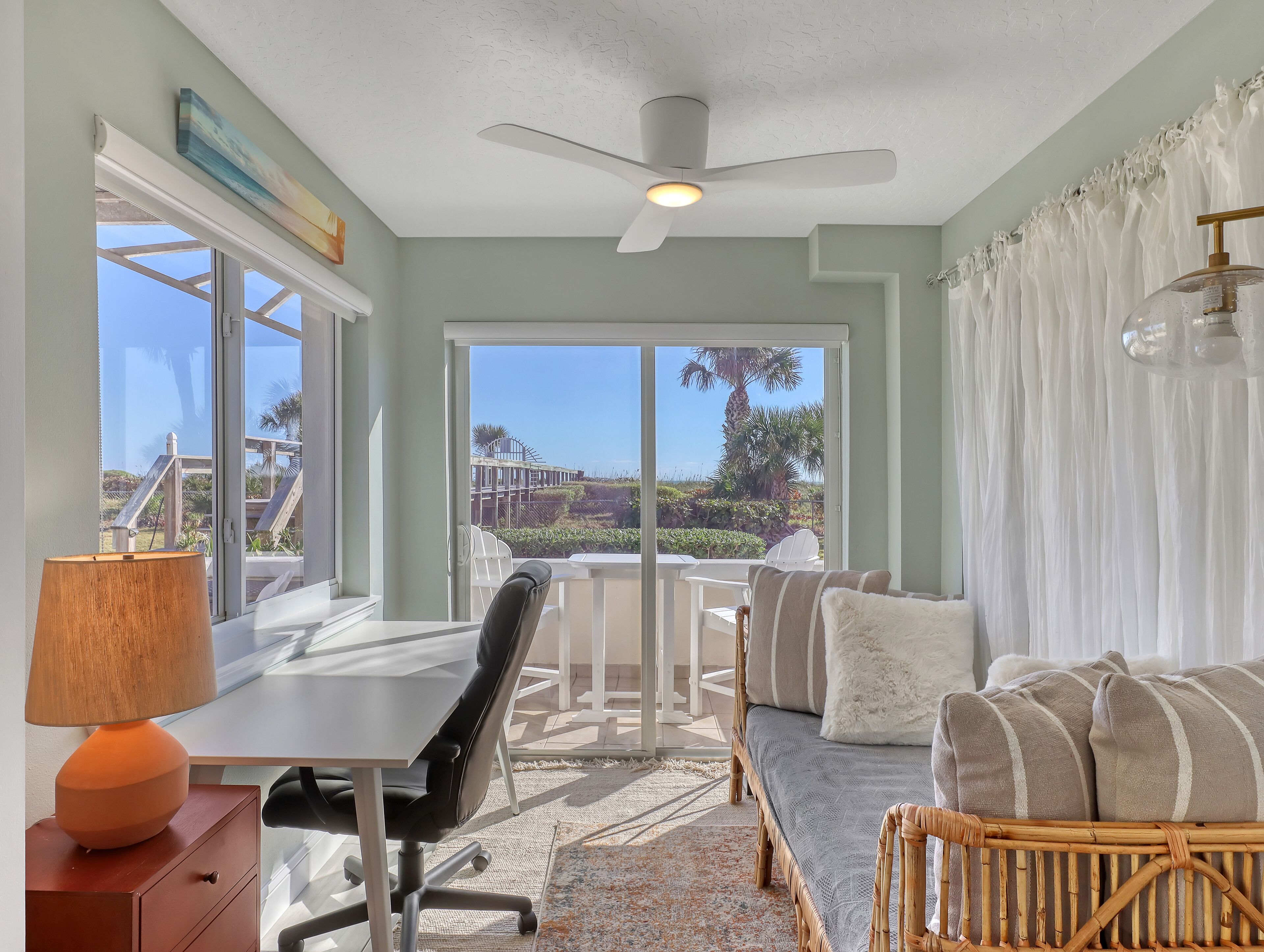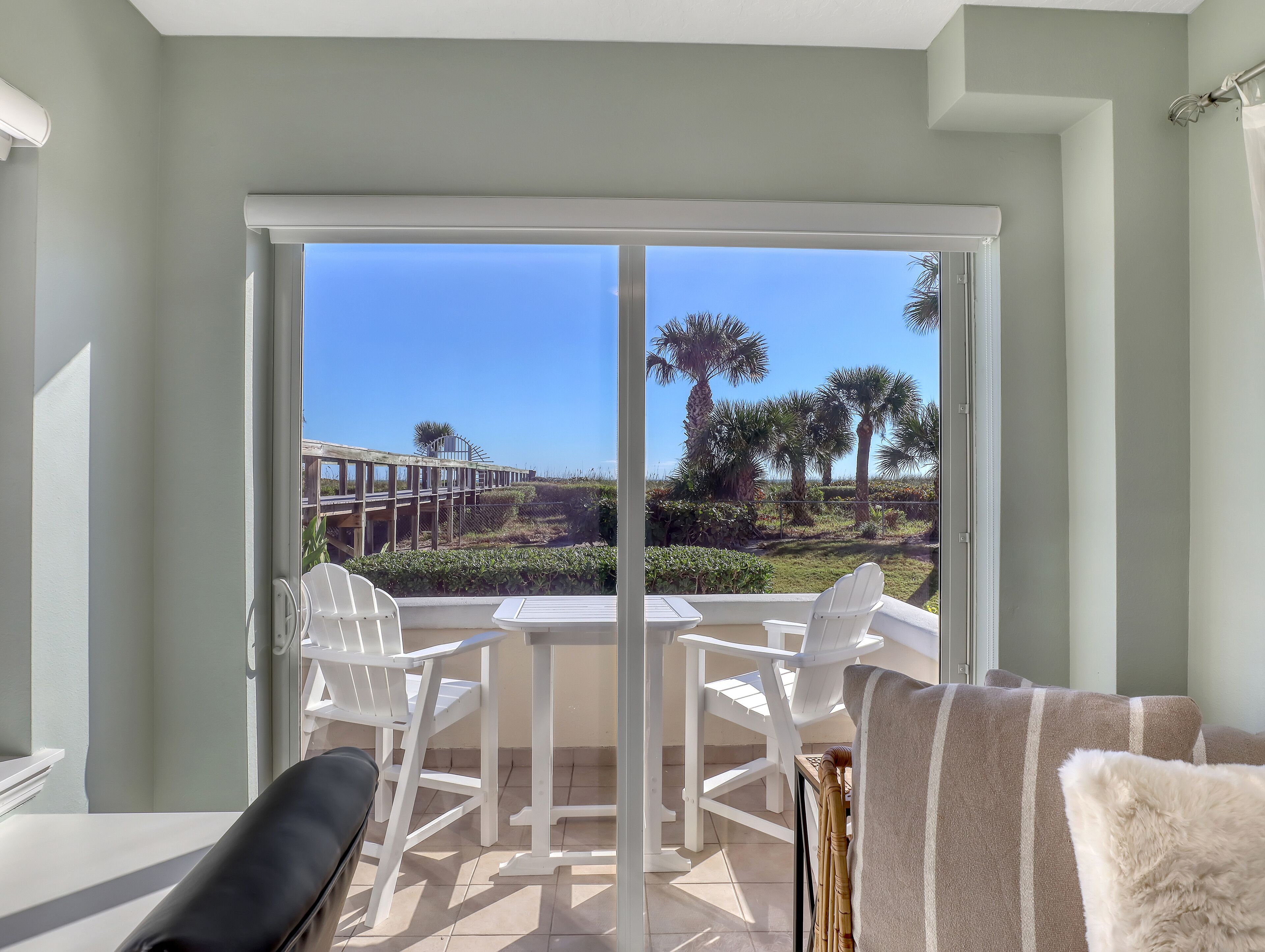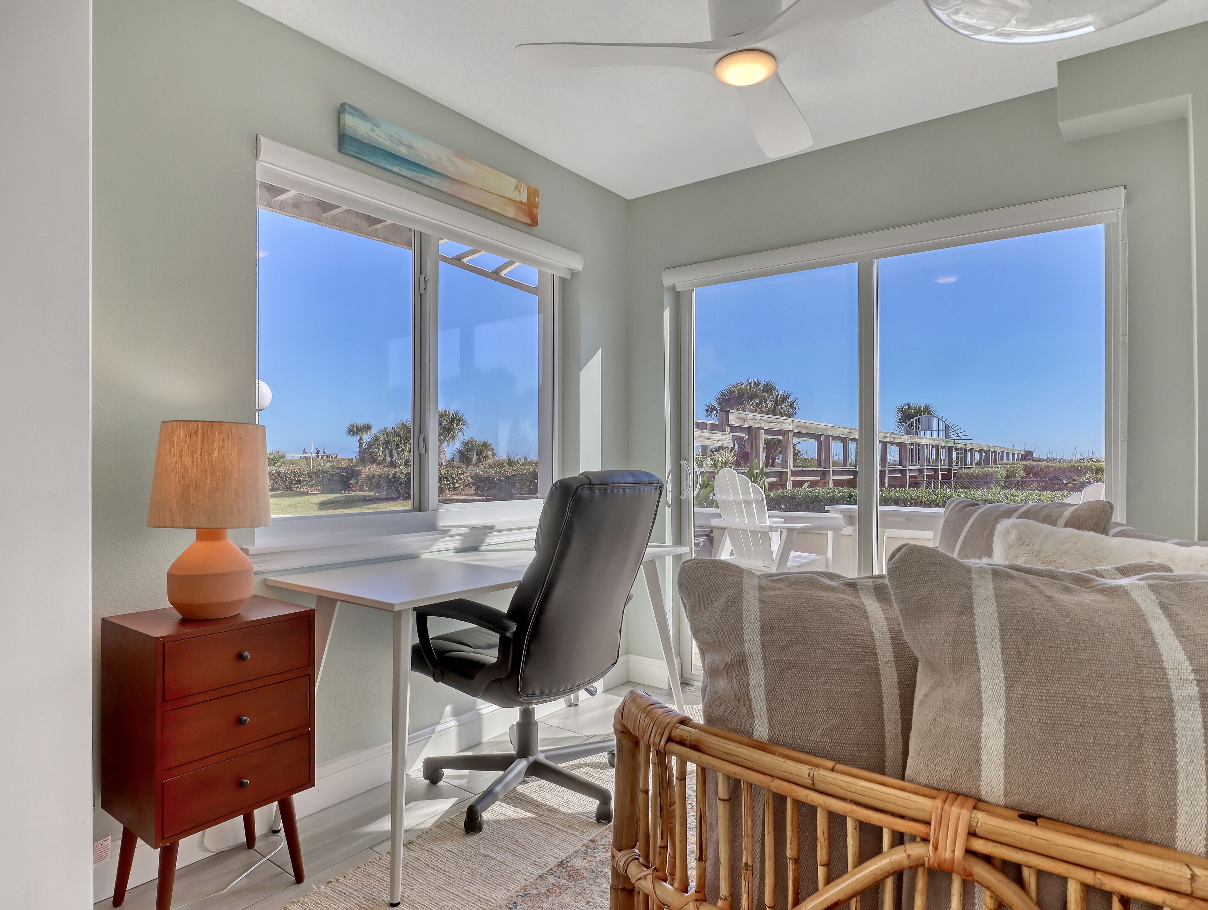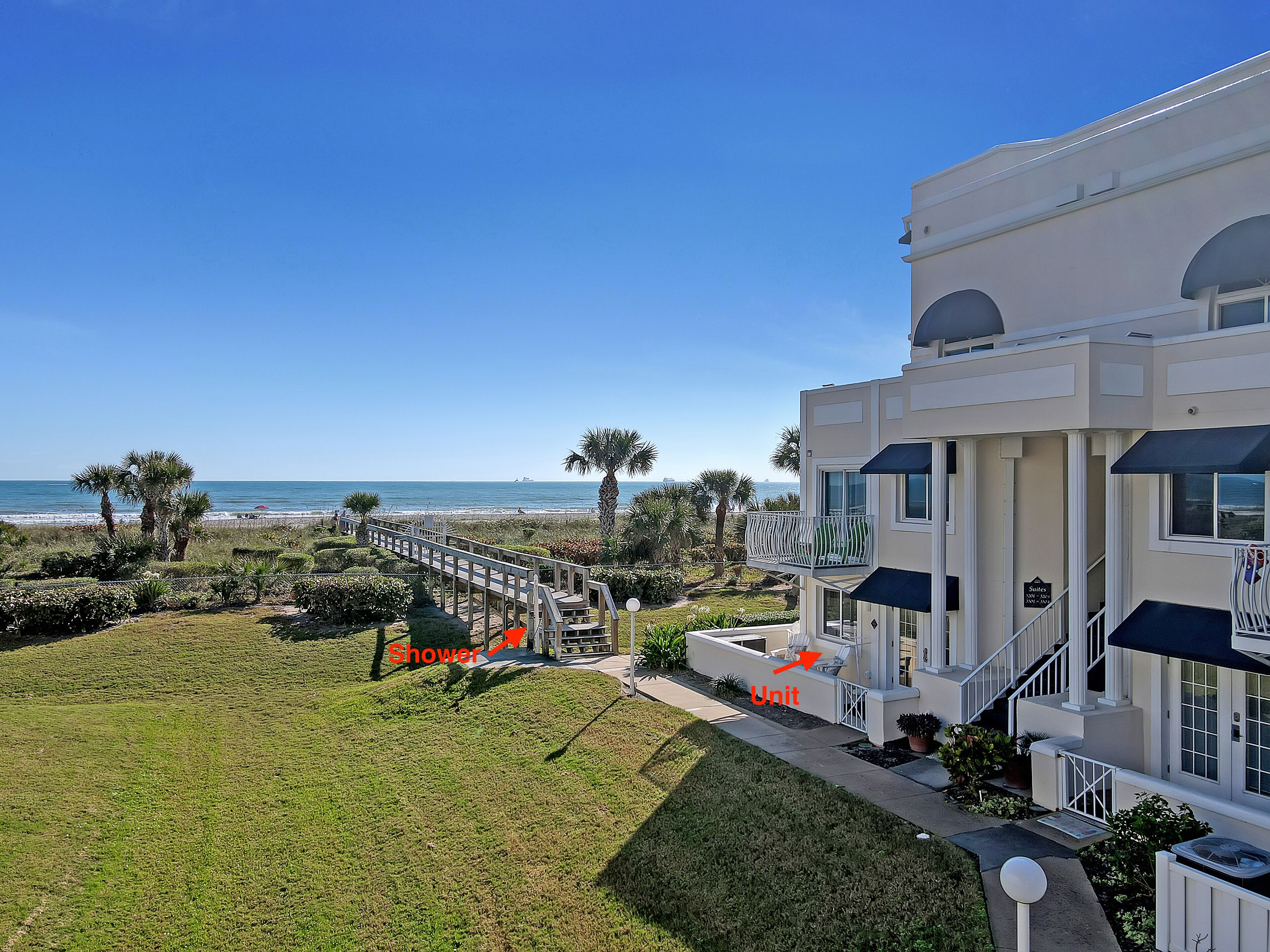 Oceanfront Condo Closest condo to the beach in the complex. It is not located adjacent to the parking lot and there are NO STEPS because it is a first floor unit. Relax and enjoy our UPDATED oceanfront corner condo with unbeatable beach access. Our beautiful and bright ground floor unit lives like a cottage and offers convenience while having all the comforts of home. Grab the beach gear provided and walk steps to the boardwalk to enjoy our quiet beach. Sit on the wrap-around patio and listen to the waves while drinking coffee. Watch cruise ships and rocket launches. Take a swim in the heated pool or relax in the hot tub. Our charming condo is the perfect coastal getaway.
