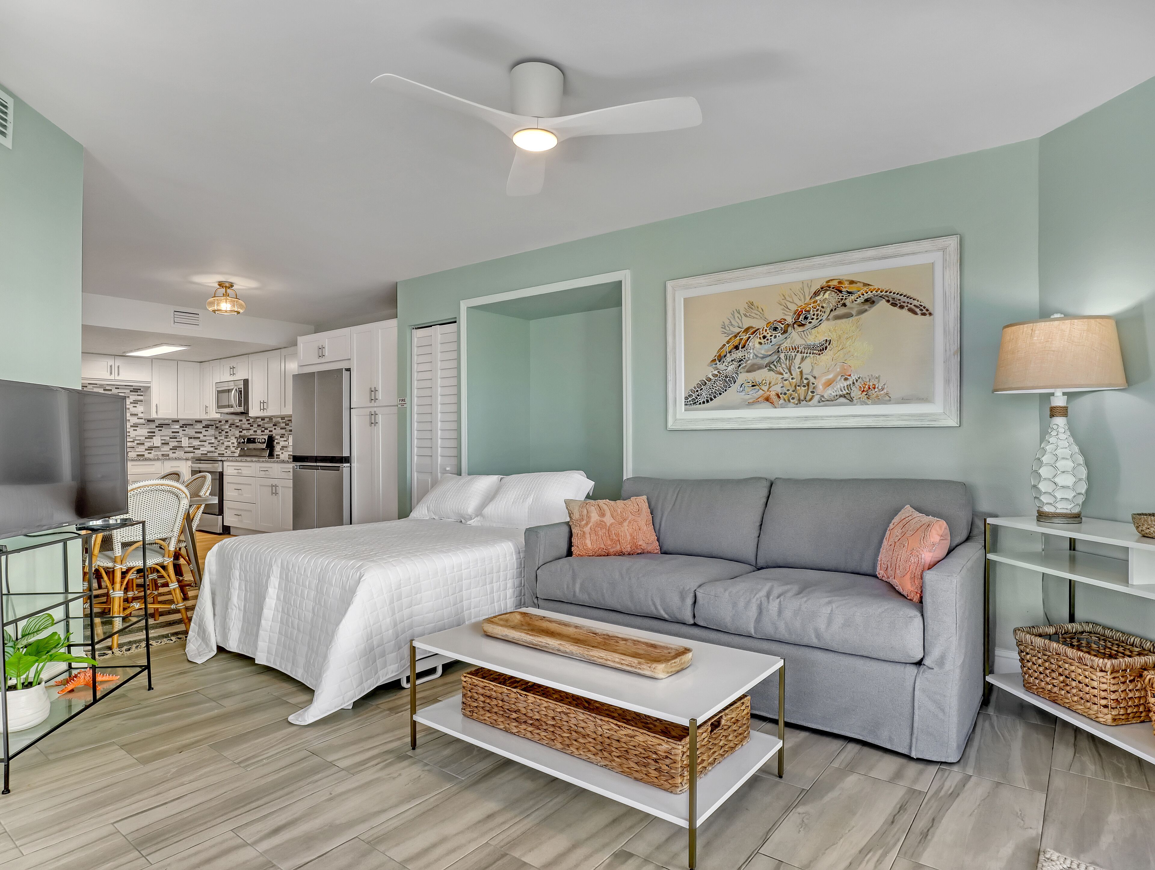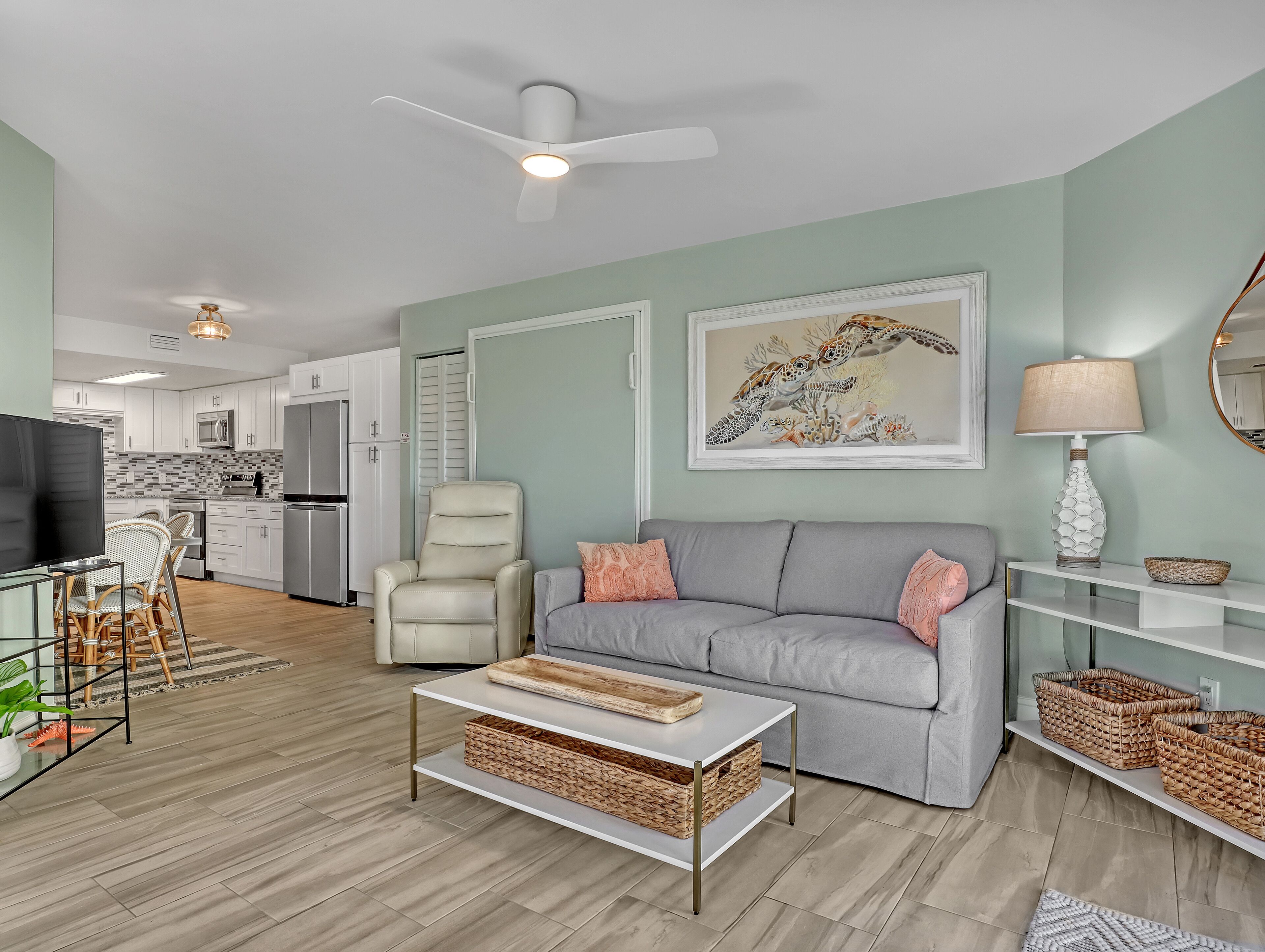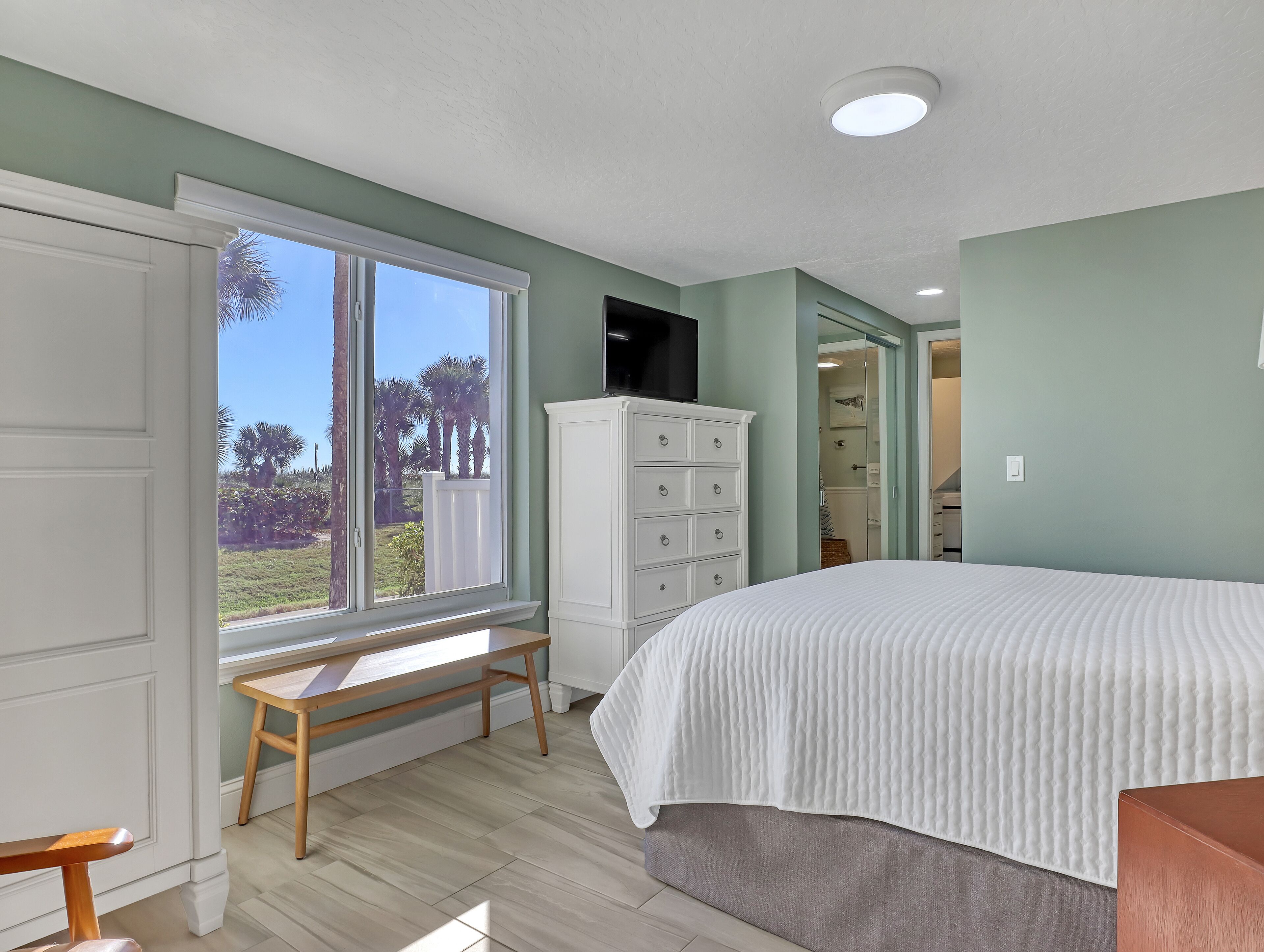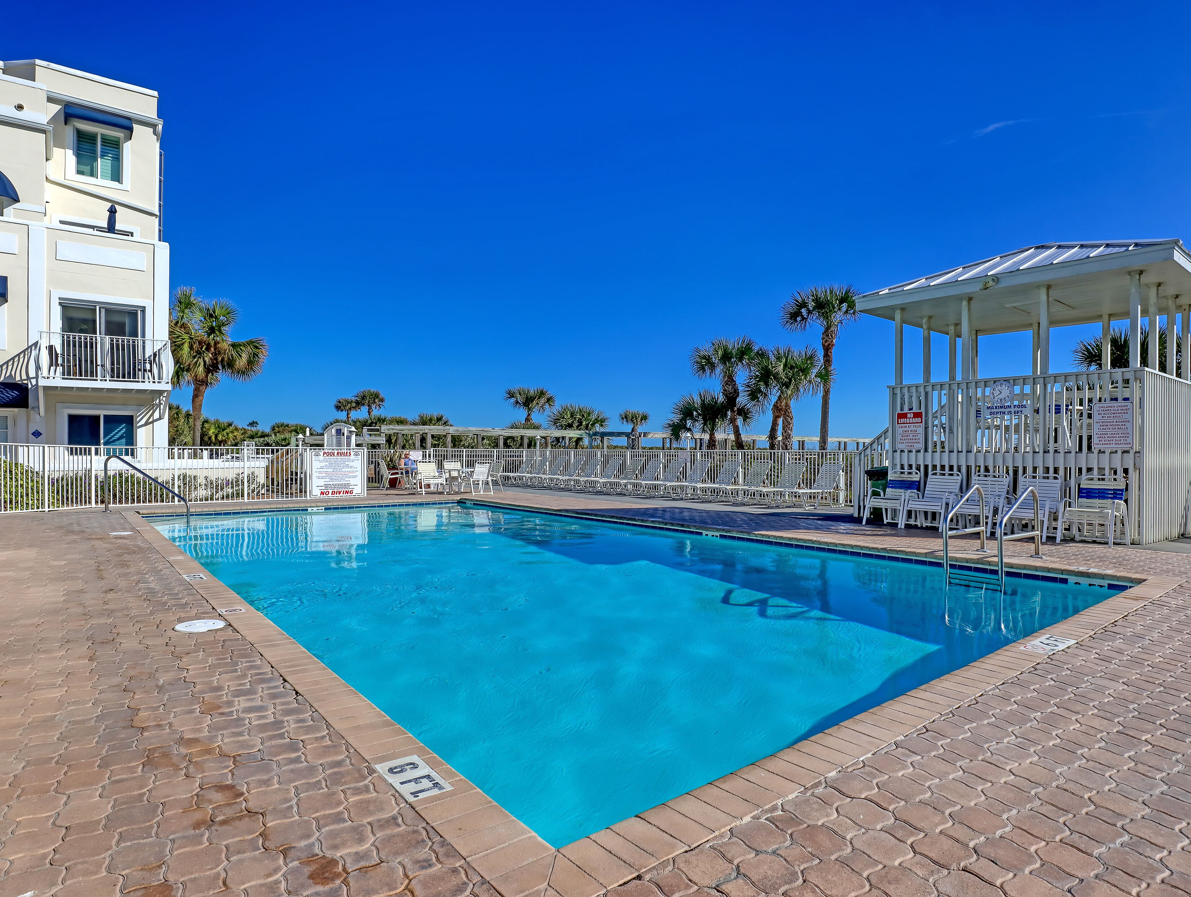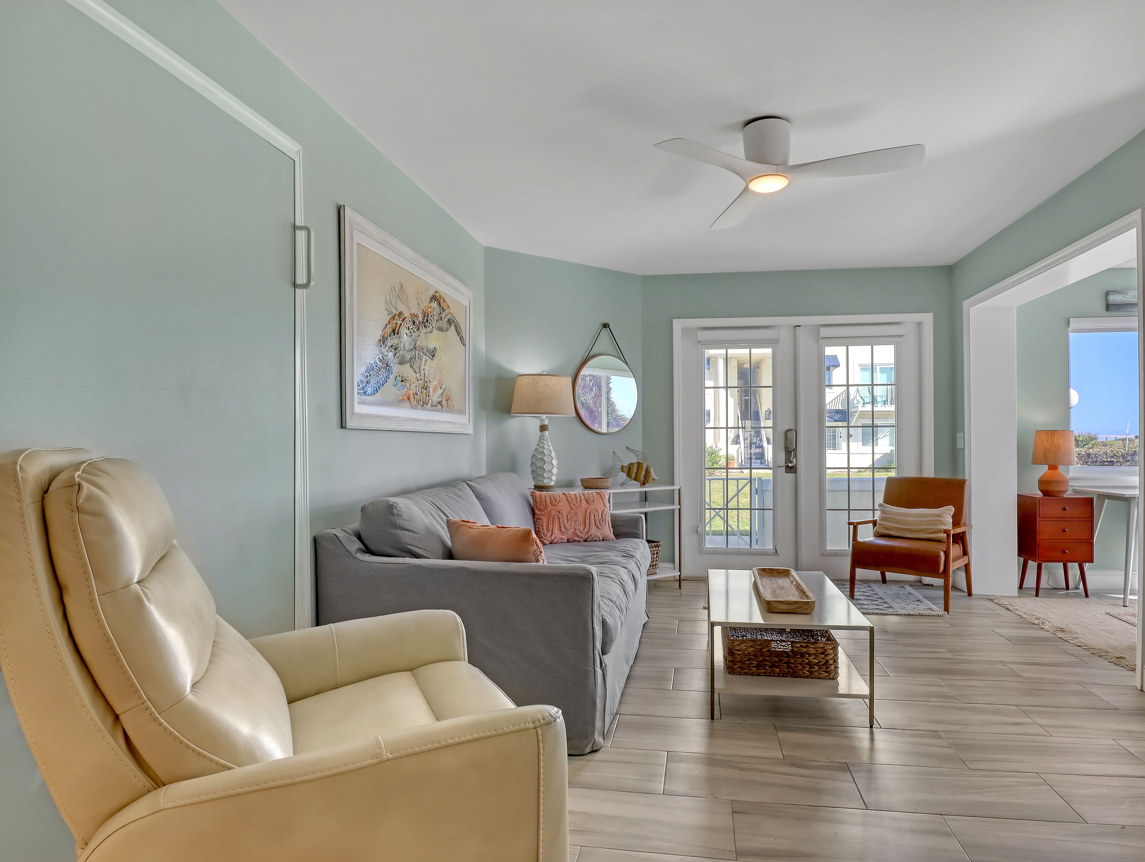 Oceanfront Condo Closest condo to the beach in the complex. It is not located adjacent to the parking lot and there are NO STEPS because it is a first floor unit. Relax and enjoy our UPDATED oceanfront corner condo with unbeatable beach access. Our beautiful and bright ground floor unit lives like a cottage and offers convenience while having all the comforts of home. Grab the beach gear provided and walk steps to the boardwalk to enjoy our quiet beach. Sit on the wrap-around patio and listen to the waves while drinking coffee. Watch cruise ships and rocket launches. Take a swim in the heated pool or relax in the hot tub. Our charming condo is the perfect coastal getaway.