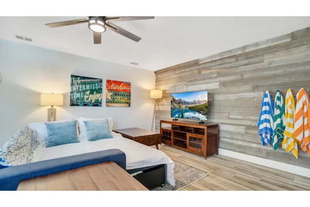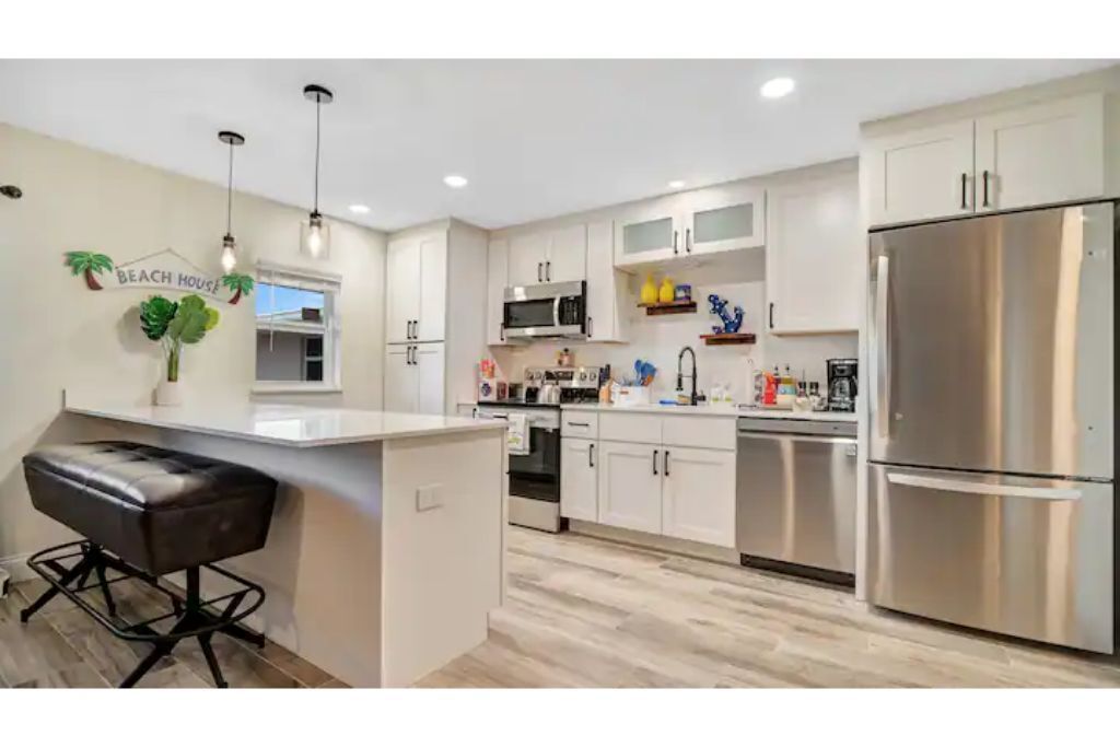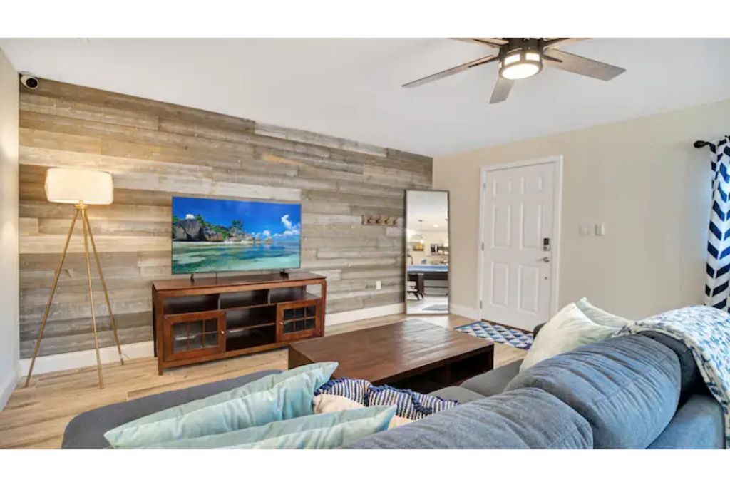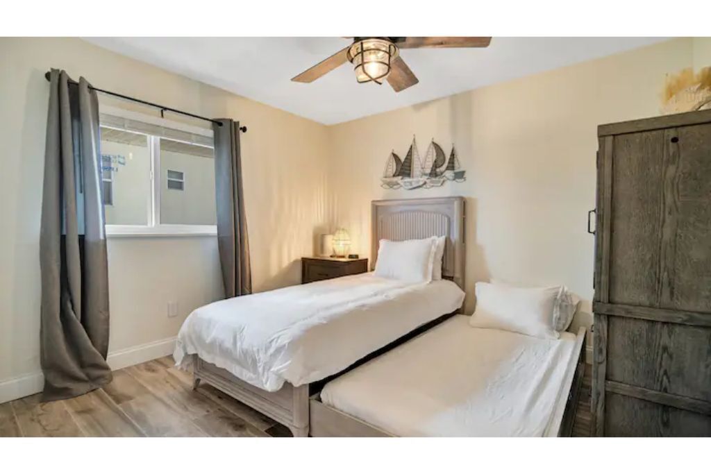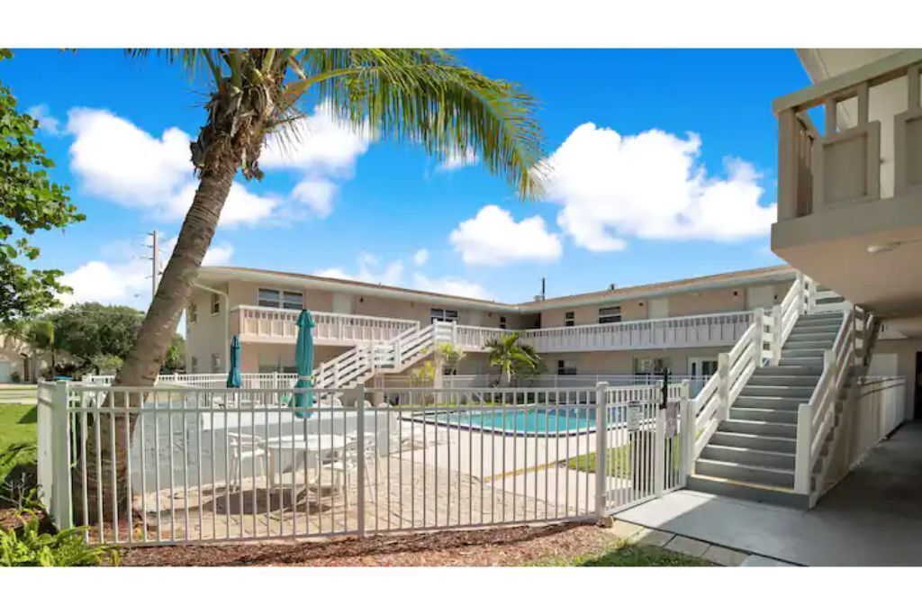 Cape Twelve Retreat Outstanding walk up 2nd floor, remodeled beachside retreat! Interior laundry, smart TV’s with high speed WIFI and the list goes on! Everything you need, and some you may just like! Enjoy NASA launches, 5 minute walk to beach, 45 minutes to Orlando International Airport, 5 minute drive to Port Canaveral, 10 minutes to Cocoa Beach, 15 minutes to Space Center, walk to Distillery and Brewery! Great location to relax, work and play! Complex has pool, shower and hose for sandy return to the property!The spaceOur Quiet, cozy home has room for your family with two large bedrooms, equipped with ample storage, smart tvs on the walls, air filtration and oil difusing units along with headboard lights and bedside power. There is also a pull out sofa for any extra visitors.Beach toys, towels, chairs make walking to the public beach access at the end of the block a breeze! On the return, use the hose by the pool to freshwater wash the equipement and sand off in the grass.American styled art, and a modern feel make this newly renovated home a true pleasure to relax in for an extended beachside stay. Brand new, well appointed kitchen with large stone island where family can gather with a large pull out bench for seating. New bathroom with new cast iron soaking tub make relaxing and bathing the kids an easy task!After a long day, turn on the smart tv and tuck the kids into the comfy twin/trundle bed with brand new luxury linens to watch a movie in bed!The balcony overlooks the pool and courtyard and you may be able to catch a launch if your there at the right time!**We have an additional unit in the complex that may be available for more room, if its available and if needed.. Please inquire!**Guest accessGuest are welcome to use the pool grill, hose, shower, seating areas located in common areas. Please follow the rules, lower umbrellas and clean up behind yourself and guests.There is also an additional Laundry room that is available at a cost on the 1st floor, if needed.Other things to note**We have an additional unit in the complex that may be available for more room, if its available and if needed.. Please inquire!**