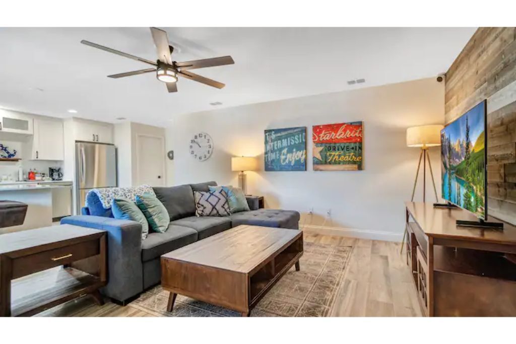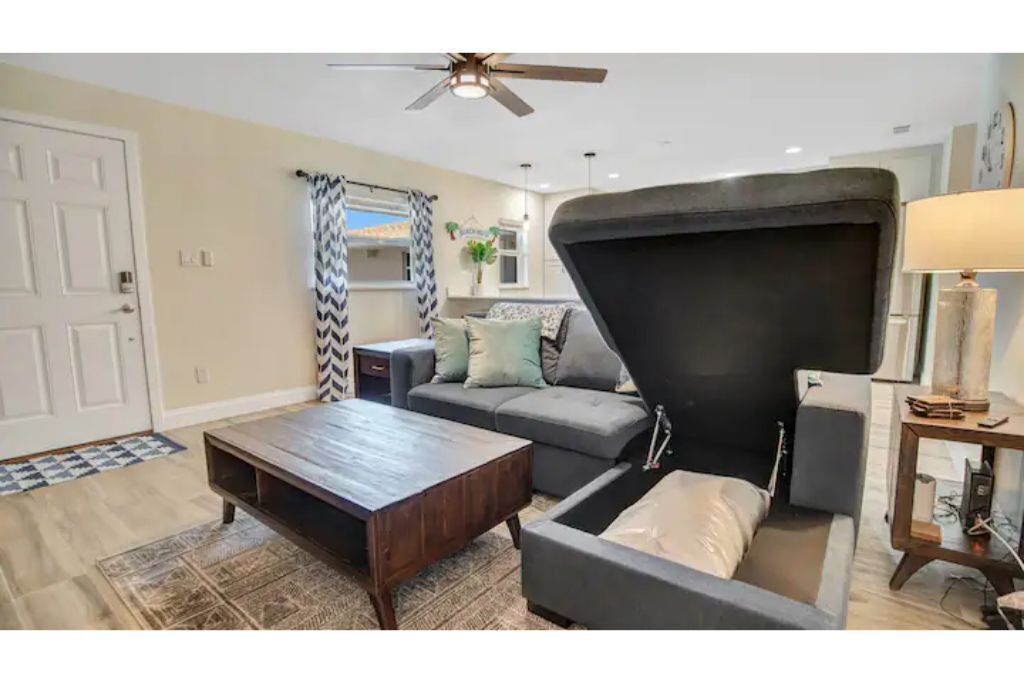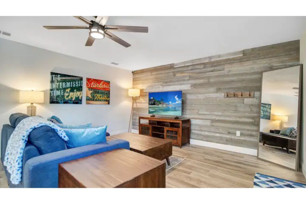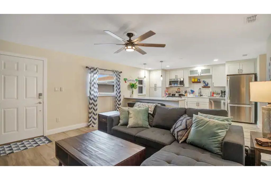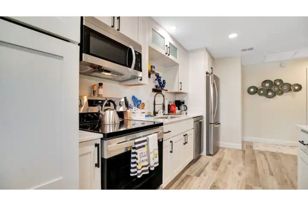 Cape Twelve Retreat Outstanding walk up 2nd floor, remodeled beachside retreat! Interior laundry, smart TV’s with high speed WIFI and the list goes on! Everything you need, and some you may just like! Enjoy NASA launches, 5 minute walk to beach, 45 minutes to Orlando International Airport, 5 minute drive to Port Canaveral, 10 minutes to Cocoa Beach, 15 minutes to Space Center, walk to Distillery and Brewery! Great location to relax, work and play! Complex has pool, shower and hose for sandy return to the property!The spaceOur Quiet, cozy home has room for your family with two large bedrooms, equipped with ample storage, smart tvs on the walls, air filtration and oil difusing units along with headboard lights and bedside power. There is also a pull out sofa for any extra visitors.Beach toys, towels, chairs make walking to the public beach access at the end of the block a breeze! On the return, use the hose by the pool to freshwater wash the equipement and sand off in the grass.American styled art, and a modern feel make this newly renovated home a true pleasure to relax in for an extended beachside stay. Brand new, well appointed kitchen with large stone island where family can gather with a large pull out bench for seating. New bathroom with new cast iron soaking tub make relaxing and bathing the kids an easy task!After a long day, turn on the smart tv and tuck the kids into the comfy twin/trundle bed with brand new luxury linens to watch a movie in bed!The balcony overlooks the pool and courtyard and you may be able to catch a launch if your there at the right time!**We have an additional unit in the complex that may be available for more room, if its available and if needed.. Please inquire!**Guest accessGuest are welcome to use the pool grill, hose, shower, seating areas located in common areas. Please follow the rules, lower umbrellas and clean up behind yourself and guests.There is also an additional Laundry room that is available at a cost on the 1st floor, if needed.Other things to note**We have an additional unit in the complex that may be available for more room, if its available and if needed.. Please inquire!**