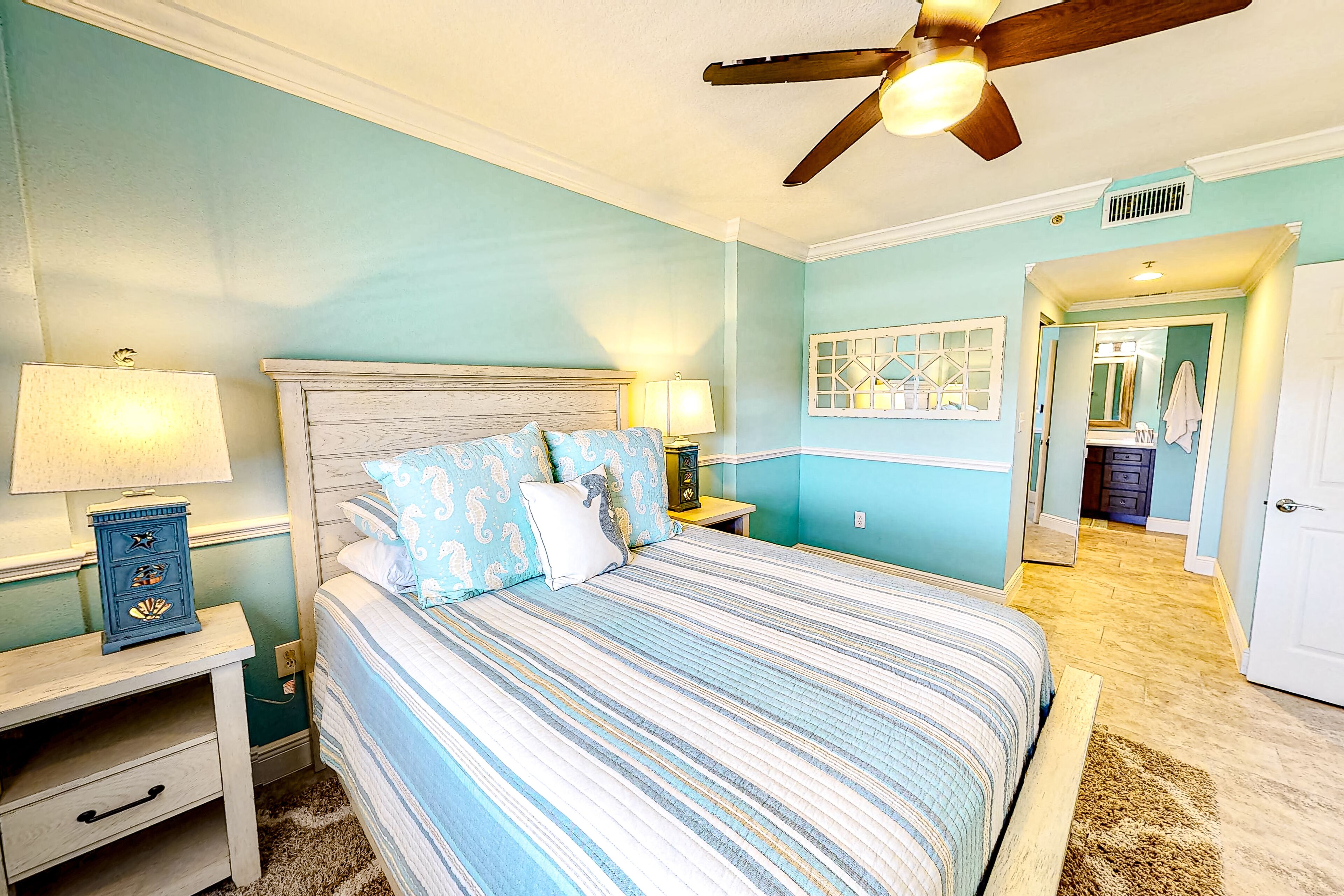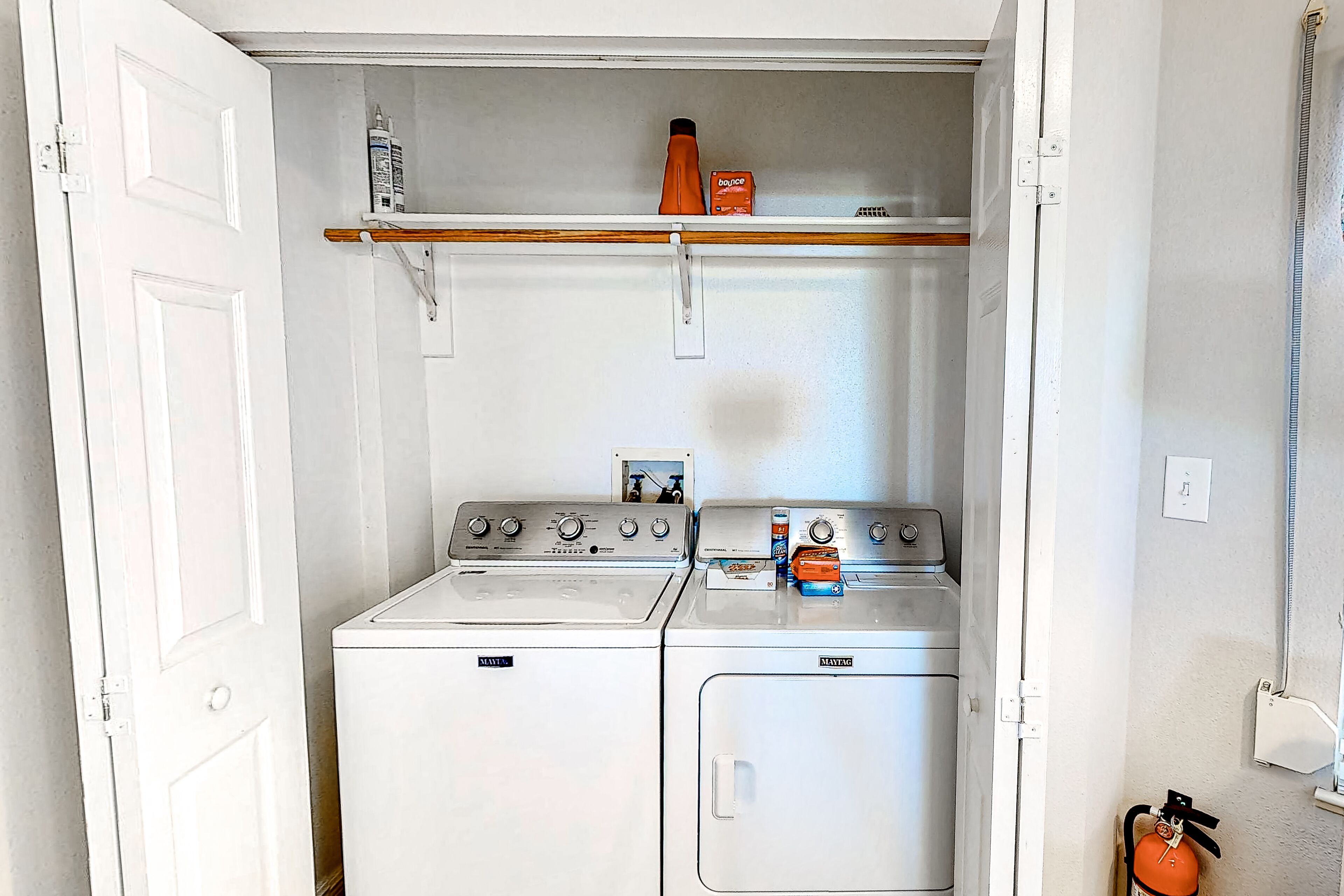 Comfy condo in great location with pool, covered balcony, fast WiFi, W/D & AC