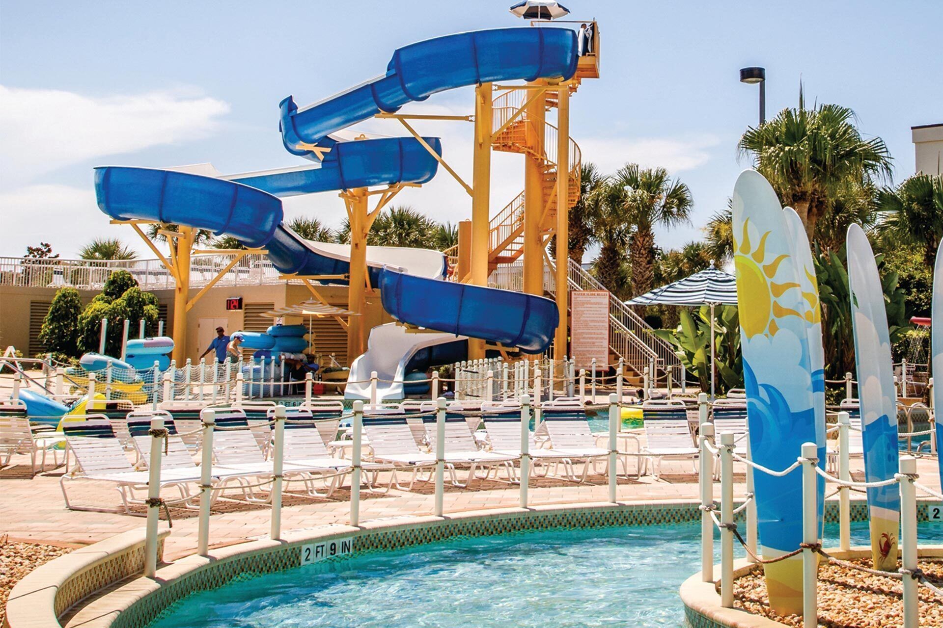 2-Bedroom in Cape Canaveral Beach Resort with free Water Park! GREAT PROPERTY:Perfect property for families. The resort's water park features a lazy river, large water slide, large pool, kids splash pad, and a large jacuzzi. There's also a poolside tiki bar and restaurant onsite, a free movie theater, indoor playground, game room, fitness center, sauna, miniature golf, table tennis, billiards, pla...