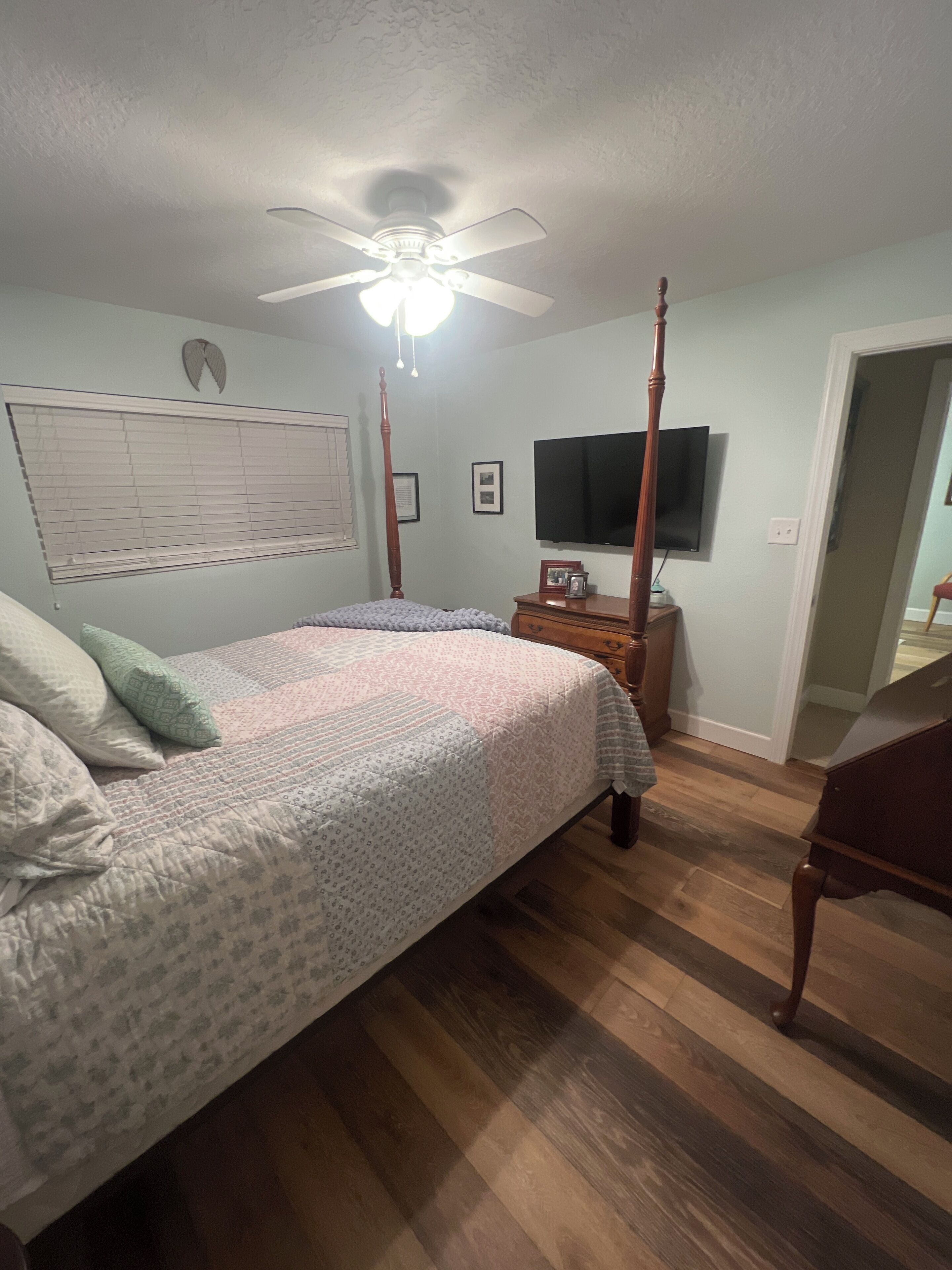 Beautiful beachside home perfect for your vacation with office and fenced yard! Imagine waking up and walking 3 minutes East to watch the sun rise on beautiful white sand beaches. Then, walking the beach and spotting baby sea turtles hatching and racing towards the glimmering Atlantic as the rhythmic crashing of the waves cleanse your soul of life’s stresses.… When you return to the house with the coconut trees in the front, the outside shower provides privacy enough to rinse before coming back inside. Where one can cook breakfast on the gas range in the fully stocked kitchen, for your loved ones or just yourself sitting at the marble countertop island. Whether on vacation or business trip, one can use the office and wifi internet to stay connected. Not having to worry about bringing shampoo or soap or linens or towels, is an added comfort. Each room has a smart TV and multiple streaming services. There is a Publix grocery store within walking distance and many delicious restaurants and a vibrant nightlife all just minutes from this enchanting laidback beach town. You will be seven minutes away from Downtown Melbourne, crossing one bridge and 13 minutes from the Eau Gallie Art District on the other bridge if you decide to cross the Indian River Lagoon. Not to mention, if you are here for 3 days or more you are almost guaranteed to catch a SpaceX launch visible from the front yard. Kayaking, fishing, scuba diving, snorkeling, skydiving, surfing, boating, swimming, and much more is available to you and your family if you desire to relax in this slice of paradise on the Space Coast of Florida. 1 hour east of Orlando and the theme parks.Please come stay, stress-free in our barrier island bungalow. You won’t regret it!