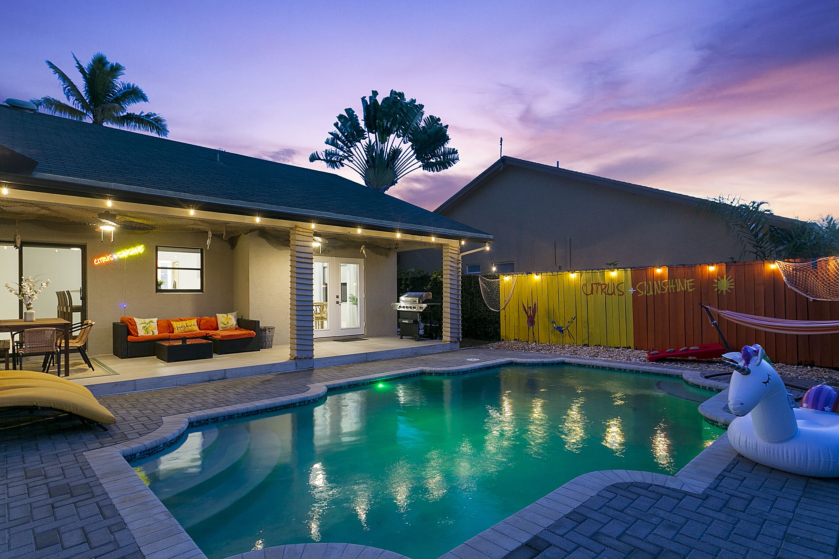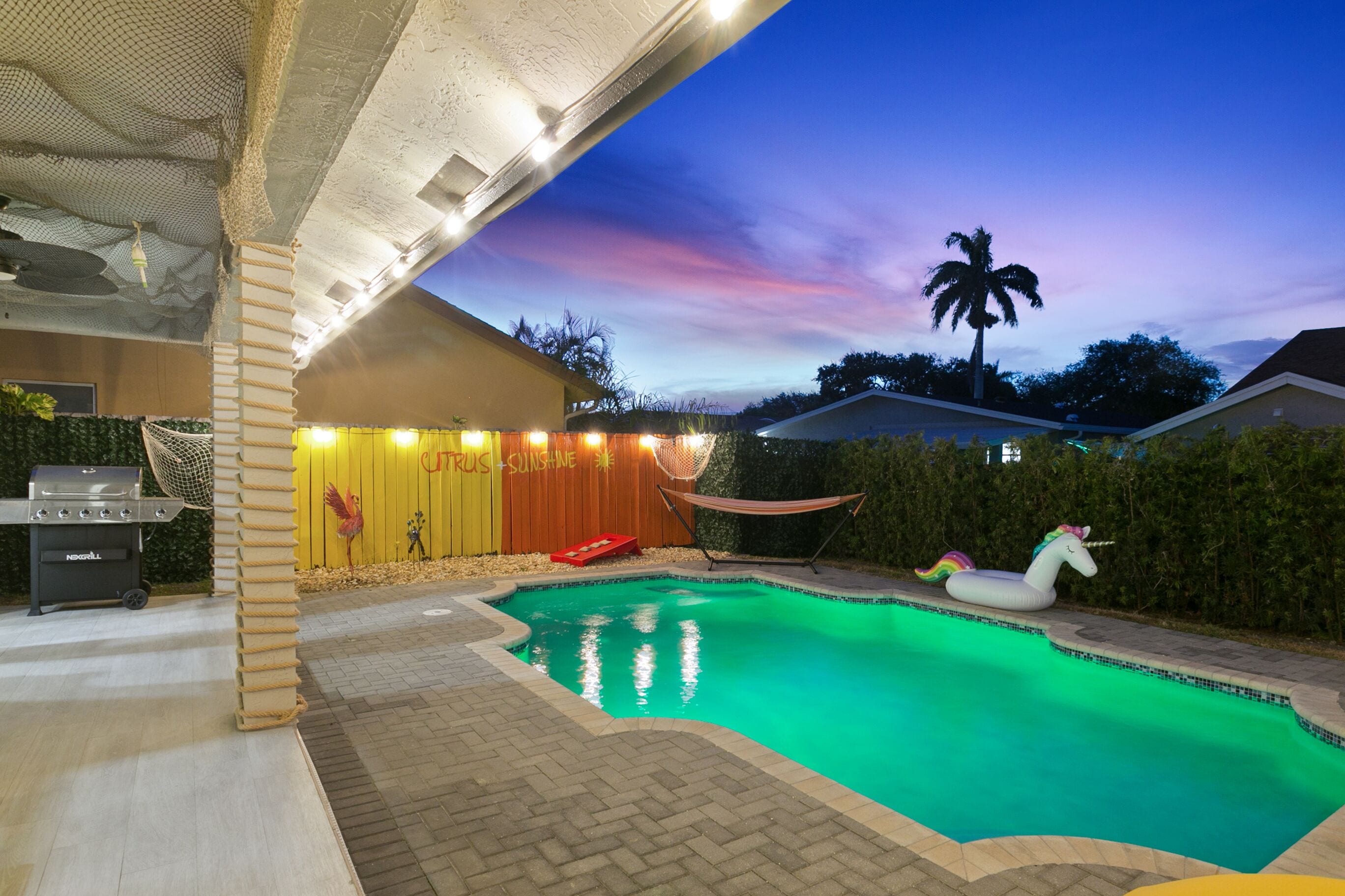 Home Near Hollywood Beach/ Backyard Oasis w/ Heated Pool Citrus+Sunshine is a luxurious home in a quiet neighborhood only minutes from beaches, shops, and many restaurants. With four comfy bedrooms, a spacious living area, a modern kitchen, and a heated outdoor pool, this is the perfect vacation destination. Enjoy your own private tropical oasis and easy access to nearby attractions.Dania Beach Fi...