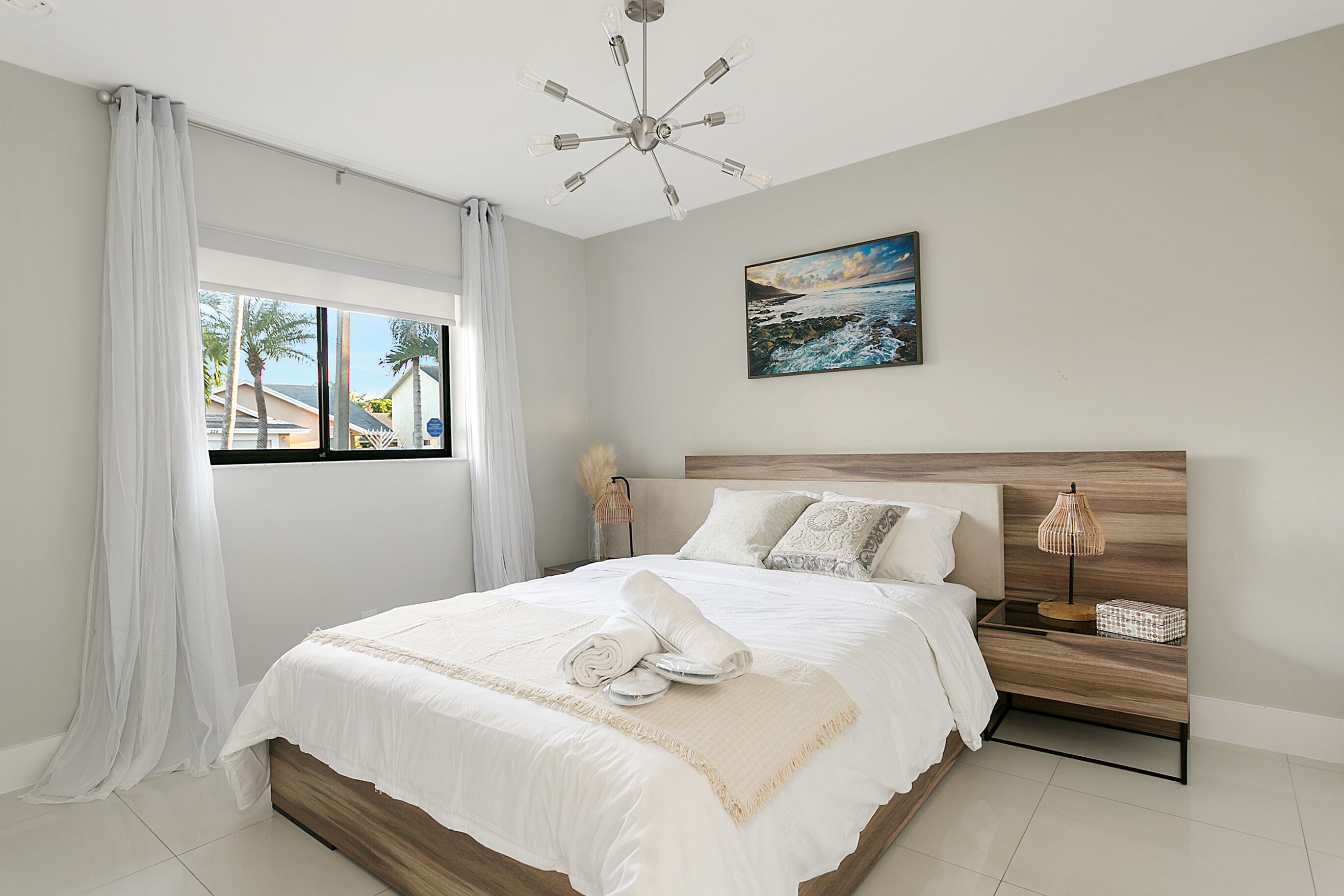 Home Near Hollywood Beach/ Backyard Oasis w/ Heated Pool Citrus+Sunshine is a luxurious home in a quiet neighborhood only minutes from beaches, shops, and many restaurants. With four comfy bedrooms, a spacious living area, a modern kitchen, and a heated outdoor pool, this is the perfect vacation destination. Enjoy your own private tropical oasis and easy access to nearby attractions.Dania Beach Fishing Pier - 7 Min DriveHollywood Beach - 10 Min DriveFort Lauderdale - 14 Min DriveCreate Lasting Memories In Dania Beach With Us & Learn More Below!☆☆ HIGHLIGHTS ☆☆✹ 4 spacious bedrooms; 1 king, 2 queens, 2 twin-over-full bunk beds✹ 3 full bathrooms; essential toiletries provided✹ Modern kitchen w/ stainless steel appliances✹ Complimentary coffee bar✹ Comfortable living room w/ sectional sofa + 65” 4K HDTV w/ free Netflix access✹ Tropical backyard w/ a heated in-ground pool, hammock, outdoor games + more✹ Outdoor grill and dining table✹ High-speed WiFi✹ Central A/C + heat✹ Dog-friendly✹ Washer + dryer✹ Free parking in the driveway for 2 cars✹ Early check-in and late check-out available upon request✹ Prime location w/ easy access to beaches, parks + more✹ Beach gear provided; towels, beach chairs and umbrella. Eager to Read More?Here Are A Few Kind Words From Our Previous Guests:“We had a wonderful stay at this beautiful house. The house was clean, nicely furnished, had all the amenities, and plenty of space for our big family. The heated pool was a big plus. Regina and Marina are fantastic hosts. Would definitely come back again!” - Fahri“I had an amazing stay at Regina's place on Airbnb. Regina was an incredible host who provided quick responses and made our stay extra special. The place was lovely, and all of our guests thoroughly enjoyed it. Regina's hospitality was truly awesome, and we're definitely looking forward to staying here again in the future. Highly recommended!” - Swakin“This house was absolutely amazing! The house is beautiful, clean and had plenty of room for our family of 10. The heated pool was a huge hit! The neighborhood was quiet and we felt very safe. Regina was very responsive to all of our request. She made our family vacation stress free and enjoyable. We definitely will be staying here again! Thank you Regina for being such a great host!” - Jamie★★ BEDROOMS ★★This thoughtfully designed single-story home allows your whole group to spread out comfortably among four welcoming and spacious bedrooms. Each bedroom features charming coastal decor and its own unique charm. Large windows let in plenty of natural light during the day, and the plush bedding will help lull you to sleep by night.✹Primary suite: King-sized bed, crib, flat-screen smart TV, ensuite bathroom, bohemian vibes✹Bedroom 2: Queen-sized bed, bedside tables✹Bedroom 3: Queen-sized bed, bedside tables✹Bedroom 4: 2 twin-over-full bunk beds, flat-screen smart TV, dresser★★ BATHROOMS ★★With three sparkling full bathrooms, there’s plenty of space for everyone in your group to freshen up throughout the day. The primary bedroom has an attached full bath with a walk-in shower. The second full bathroom contains a washing machine and dryer so you can keep your wardrobe fresh during your stay. Each bathroom is stocked with complimentary toiletries, fresh towels, and a hair dryer for your convenience.✹Bathroom 1: Ensuite to the primary bedroom with a large walk-in shower✹Bathroom 2: Full bathroom with a step-in shower✹Bathroom 3: Full bathroom with a shower/tub combo✔ Essential toiletries provided (including shampoo, conditioner and body wash)✔ Hair dryer✔ Fresh towels✔ Full-size washer and dryer ★★ KITCHEN & DINING ★★The bright, modern kitchen provides an upscale space to create delicious meals for the whole family or group. With high-end stainless steel appliances, ample cabinet space to store your favorite vacation groceries, large granite countertops, and plenty of cookware and dishes, you’ll feel right at home. Help yourself to some complimentary coffee to start each day off right. There is ample seating between the bar counter and the dining table.✔ Fully stocked kitchen w/ modern appliances ✔ Complimentary coffee bar✔ Basic cookware & dinnerware✔ Oversized dining table w/ seating for 8✔ Bar seating at the kitchen counter for 4✔ High chair for kids★★ LIVING ROOM ★★ The open floor plan in the spacious living area lets conversations flow seamlessly, allowing your group to easily mingle whether you’re prepping a meal in the kitchen or relaxing in the lounge. This is a great place to cool down with some air-conditioning after soaking up the sun at the nearby beaches. Stream your favorite shows on the flat-screen smart TV or have a fun family game night with our collection of board games. ✔ 65” flat-screen smart TV w/ Netflix✔ Comfy sectional sofa + chairs✔ Collection of board games + kids toys★★ OUTDOOR SPACE ★★The outdoor area is the highlight of this spacious home. Step out onto the large patio to enjoy the warm weather. Take a refreshing dip in the heated pool while the kids enjoy a game of cornhole. When you feel like soaking up some sun, the swaying hammock and reclining lounge chairs are a great place to do so. There’s also a grill and outdoor dining table for alfresco meals, plus a shaded lounge area with plenty of outdoor seating. The fun can continue well into the evening thanks to the lovely string lights that provide a cozy ambiance on the patio.✔ Large heated pool + sun loungers✔ Cornhole ✔ Hammock + shaded lounge space✔ Grill + outdoor dining table w/ seating for 6★★ ACTIVITIES/ATTRACTIONS ★★This house is conveniently located in a friendly neighborhood between Fort Lauderdale and Hollywood. The home is just minutes from some of the area’s most beautiful natural landmarks and many restaurants. Here are a few of the best activities and attractions nea