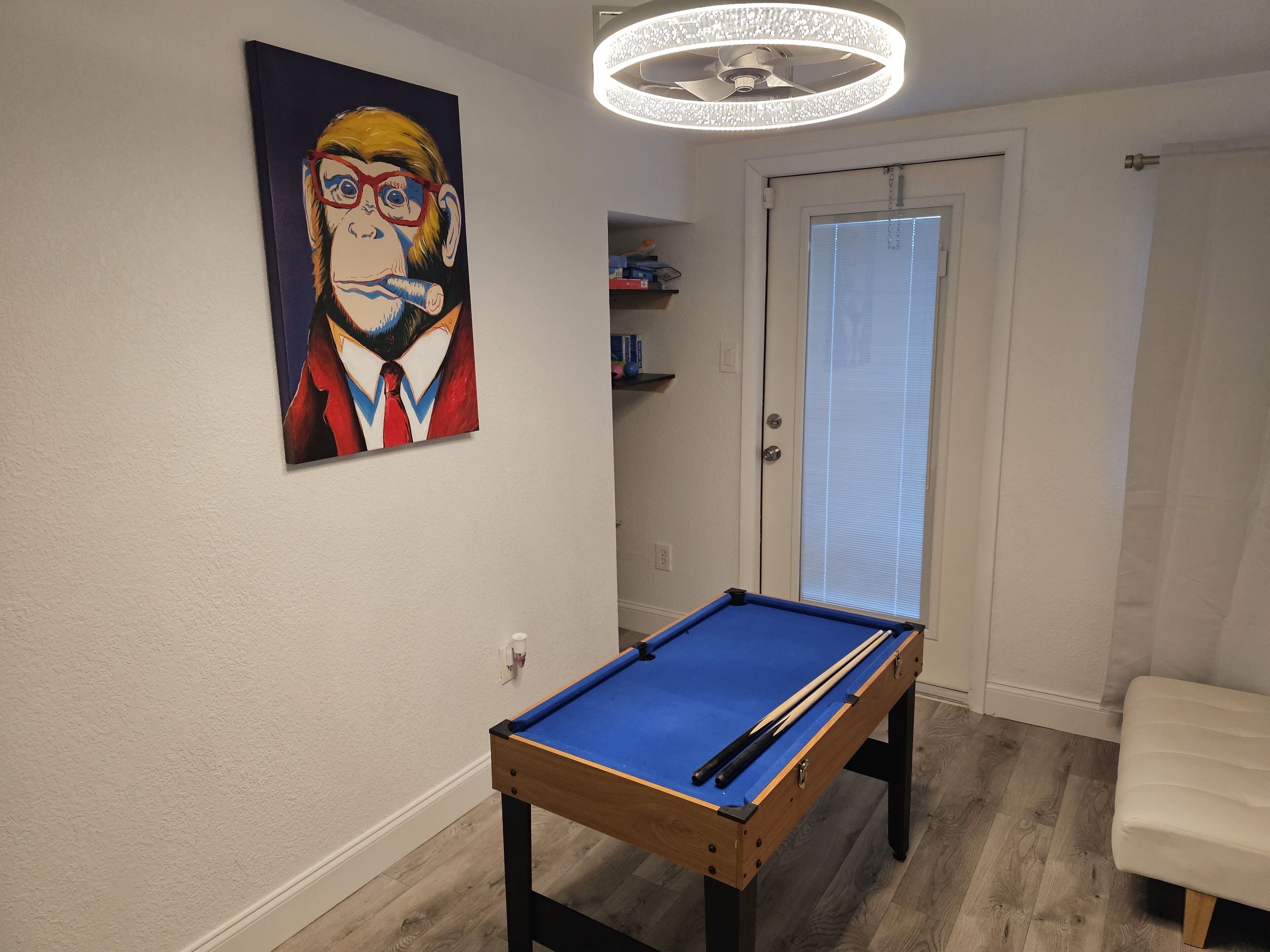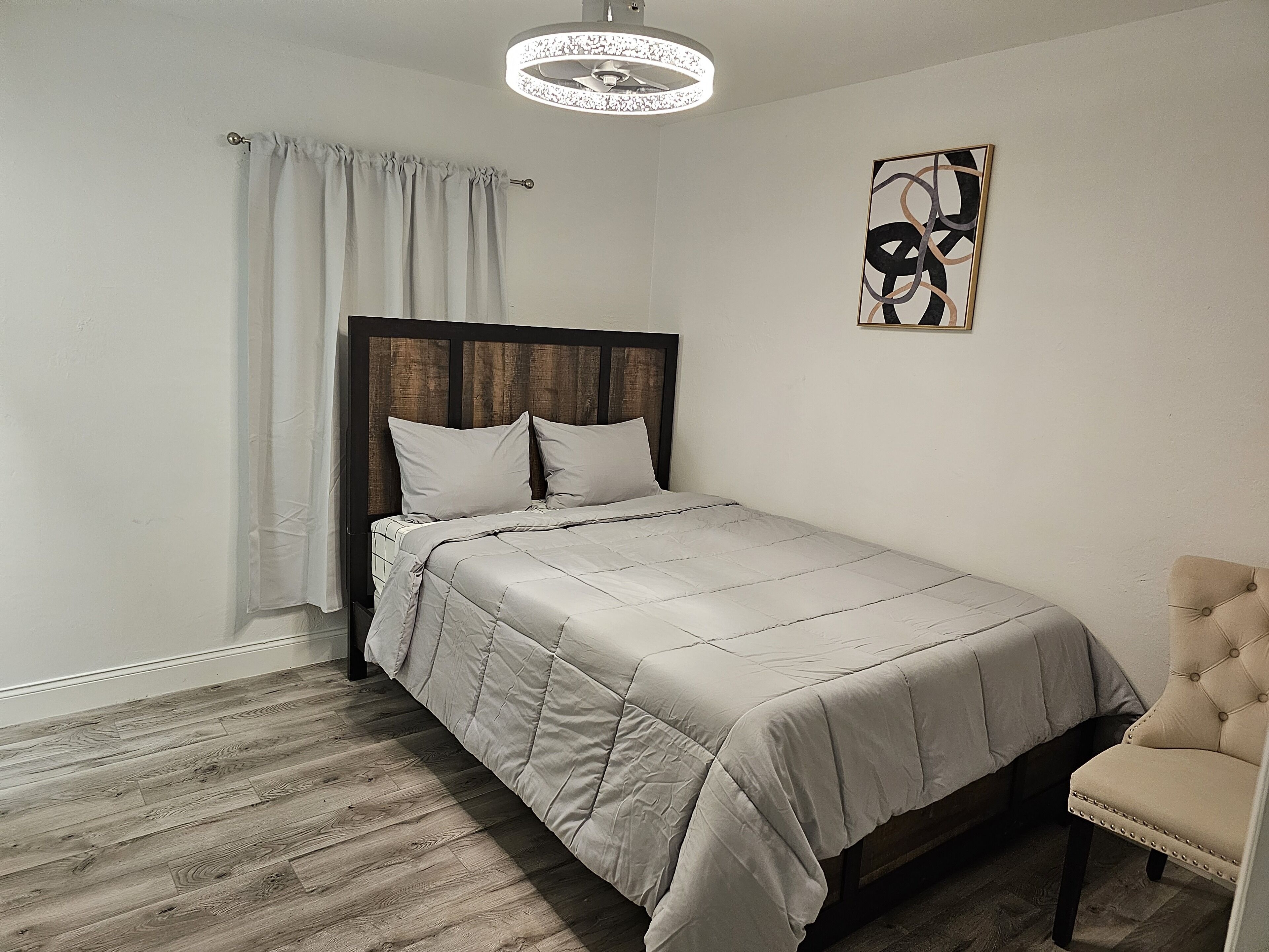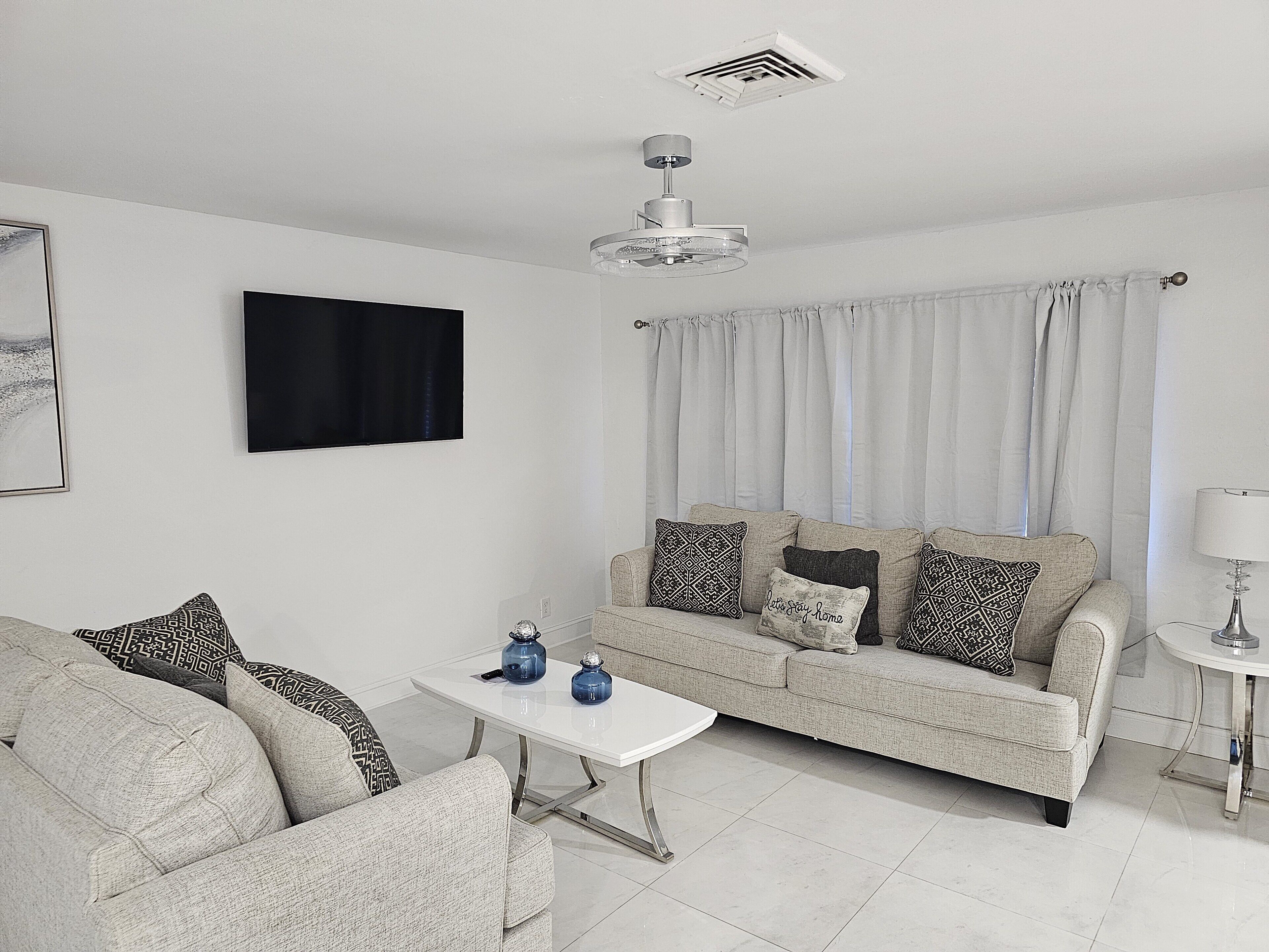 Sunny Goldie in Lauderdale Lakes This modern and comfy getaway will leave you in awe. This is a quiet, safe, spacious home. It is ideal for families and small groups. Centrally located short trip to the beach, games at Hard Rock, Drive Pink, and the airport. It features a large backyard with a large pool to enjoy the beautiful South Florida weather as well. The kitchen is fully loaded although you will most likely be enjoying the fabulous restaurants nearby. Smart TVs in living room and bedrooms. Brand New AC, professionally cleaned and sanitized. Wifi and plenty plenty parking for small groups. Library and parks in walking distance.