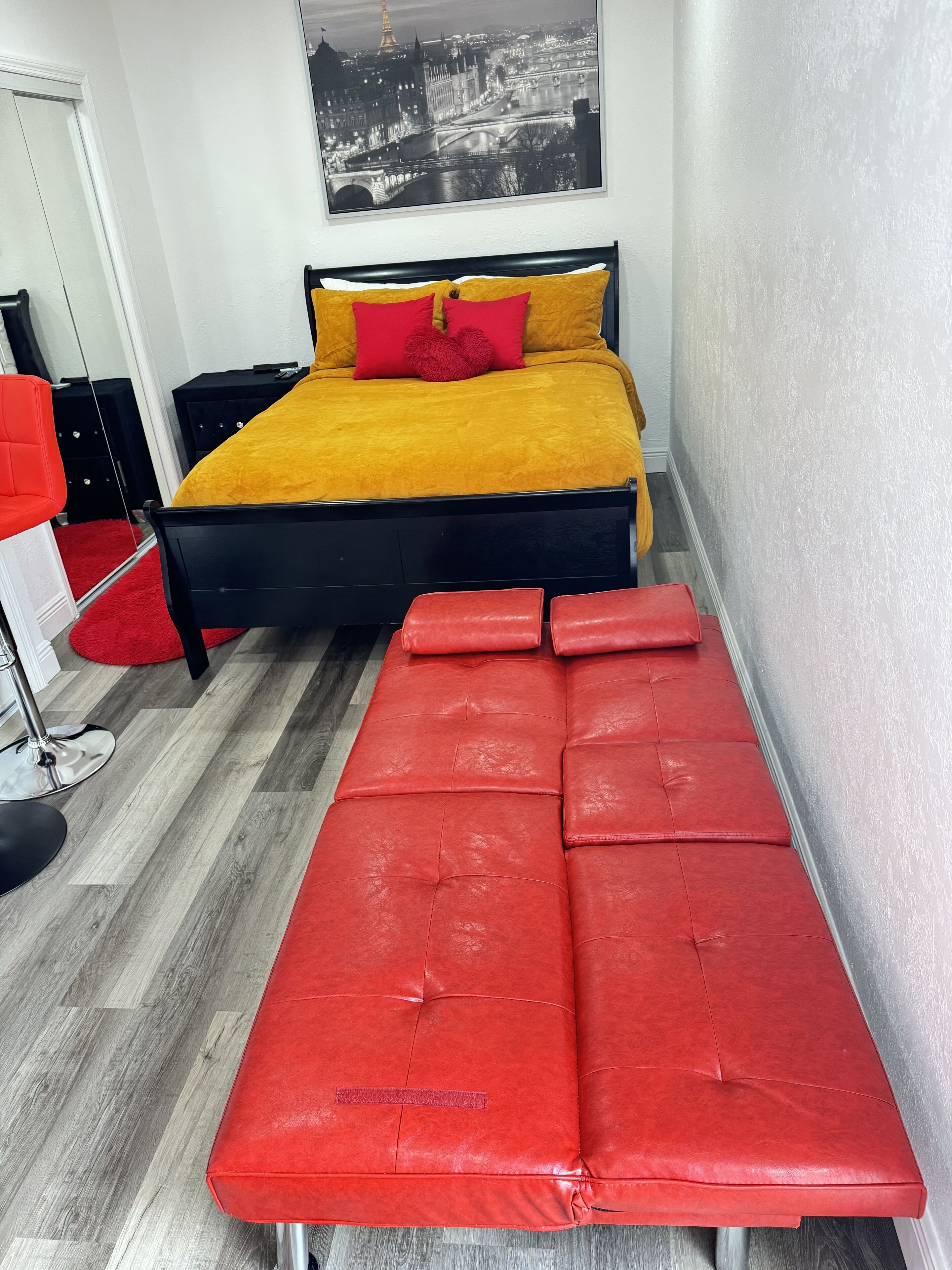 Luxurious 1 bedroom studio Step into a realm of indulgence with our exquisite luxury suite. Nestled in the heart of a vibrant city, this opulent retreat offers unparalleled comfort and sophistication. As you enter, be greeted by elegant furnishings, tasteful decor. A cozy 1-bedroom suite featuring a comfortable queen-size bed, a modern ensuite bathroom, and a small seating area. The space is tastefully decorated, equipped with essential amenities, and perfect for a solo traveler or a couple looking for a relaxing stay.