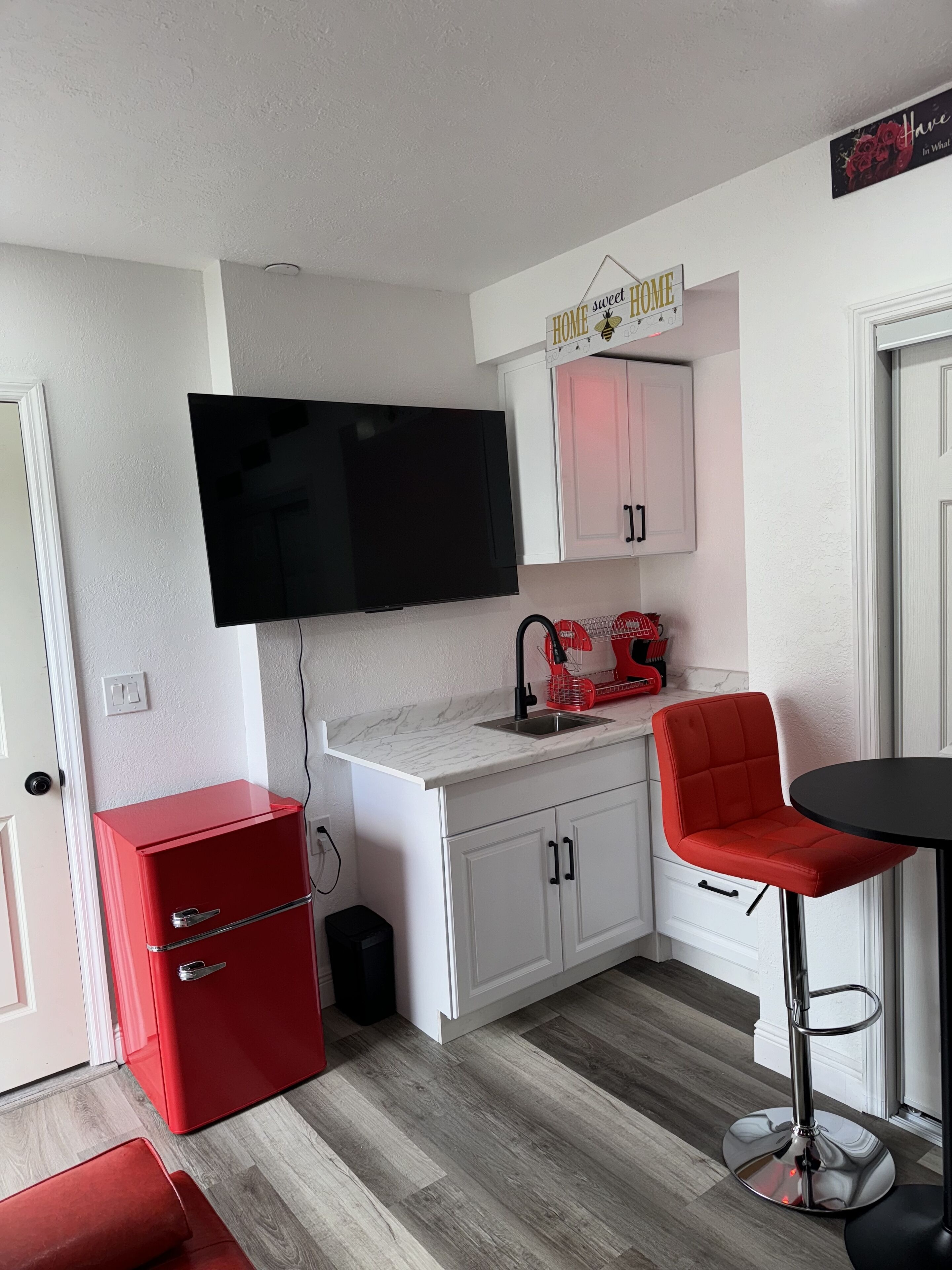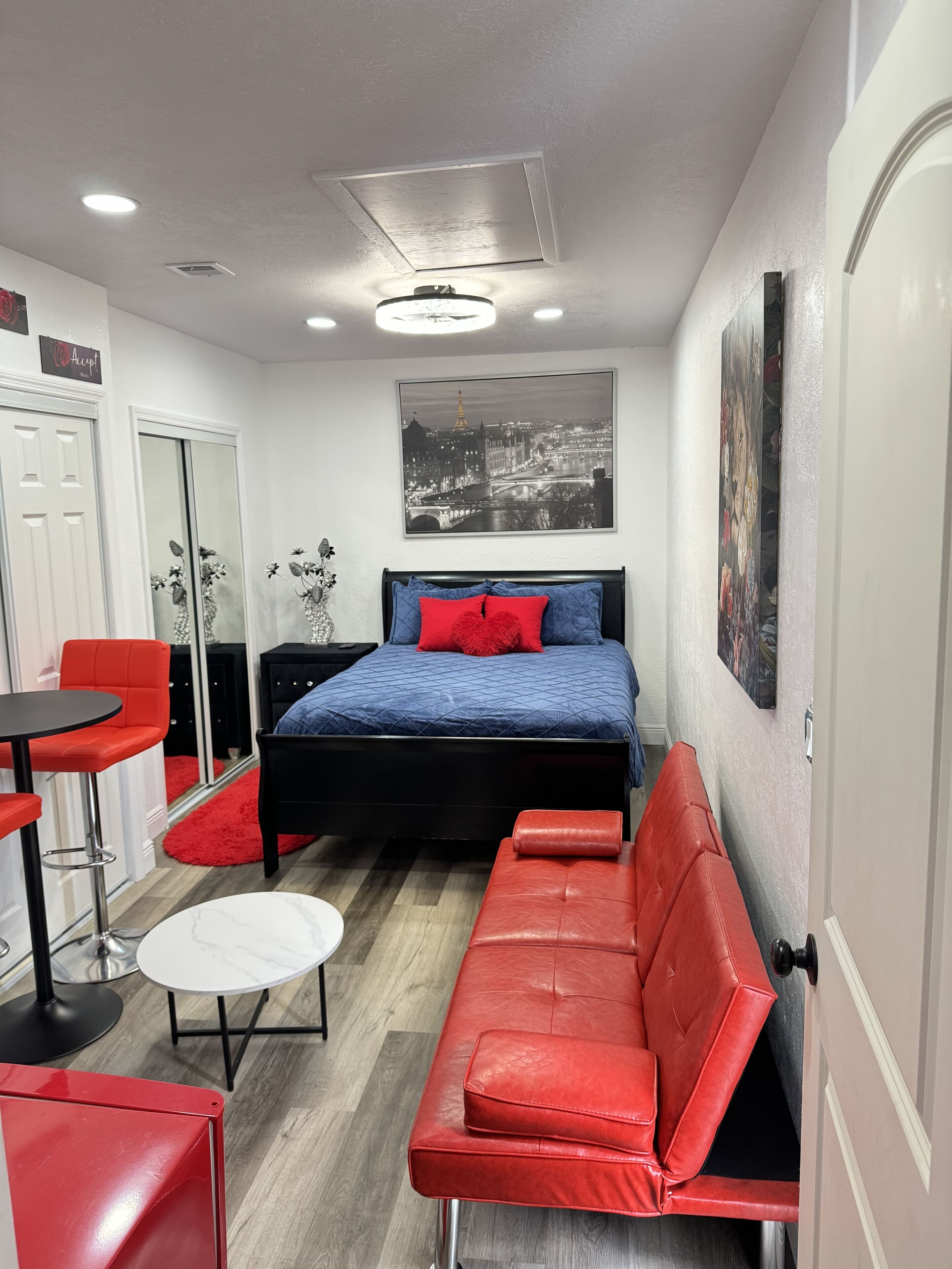 Luxurious 1 bedroom studio Step into a realm of indulgence with our exquisite luxury suite. Nestled in the heart of a vibrant city, this opulent retreat offers unparalleled comfort and sophistication. As you enter, be greeted by elegant furnishings, tasteful decor. A cozy 1-bedroom suite featuring a comfortable queen-size bed, a modern ensuite bathroom, and a small seating area. The space is tast...
