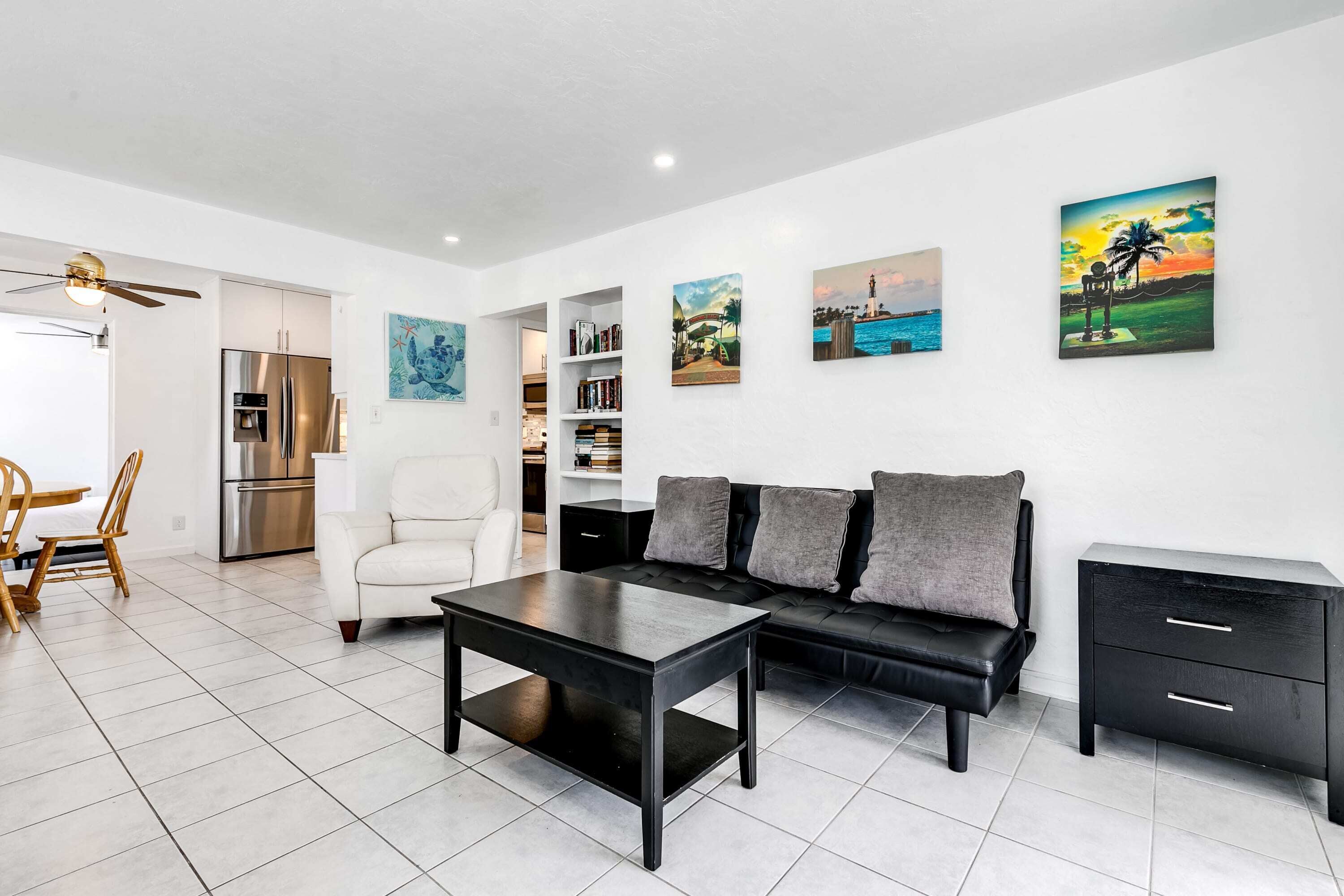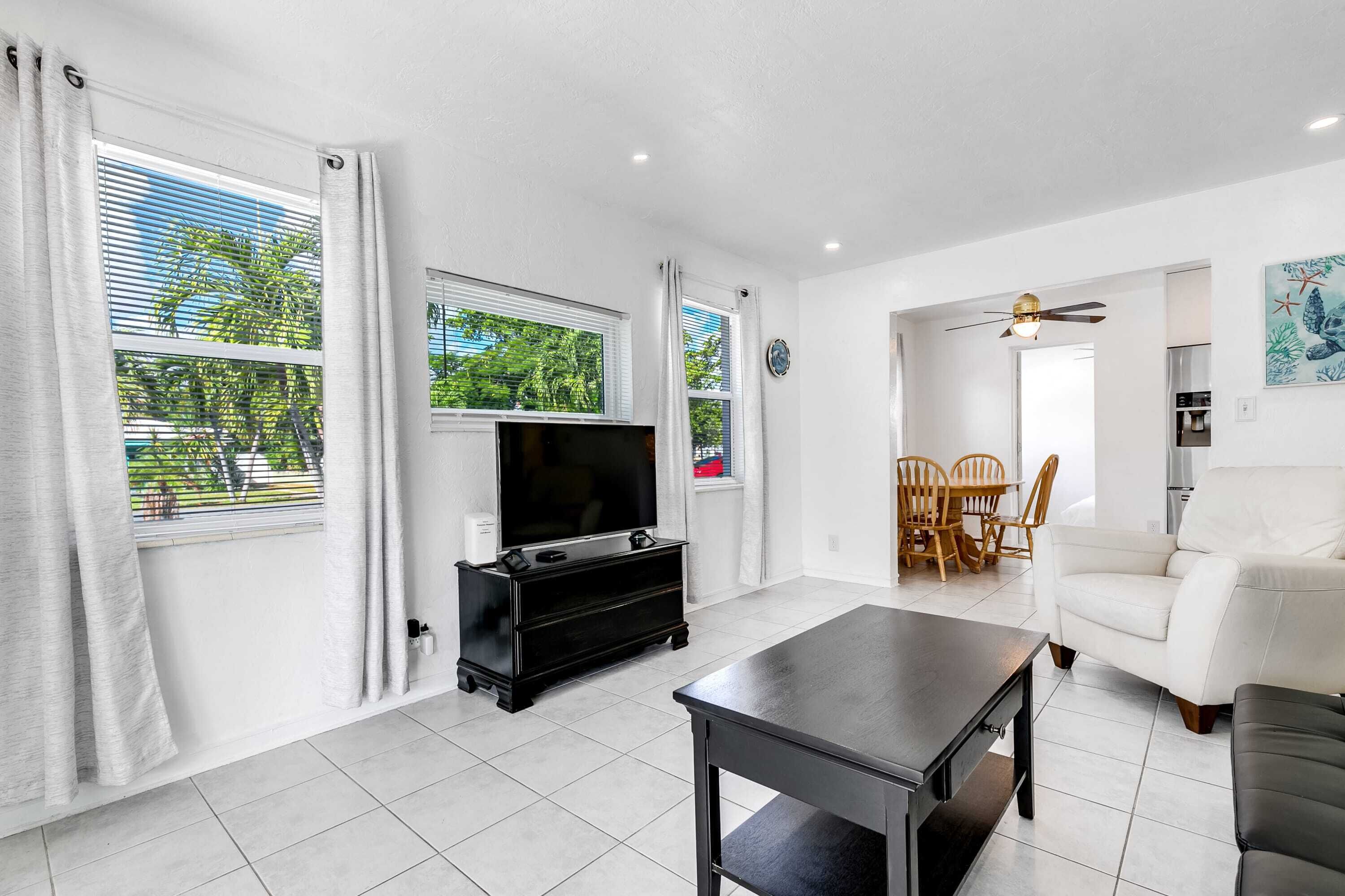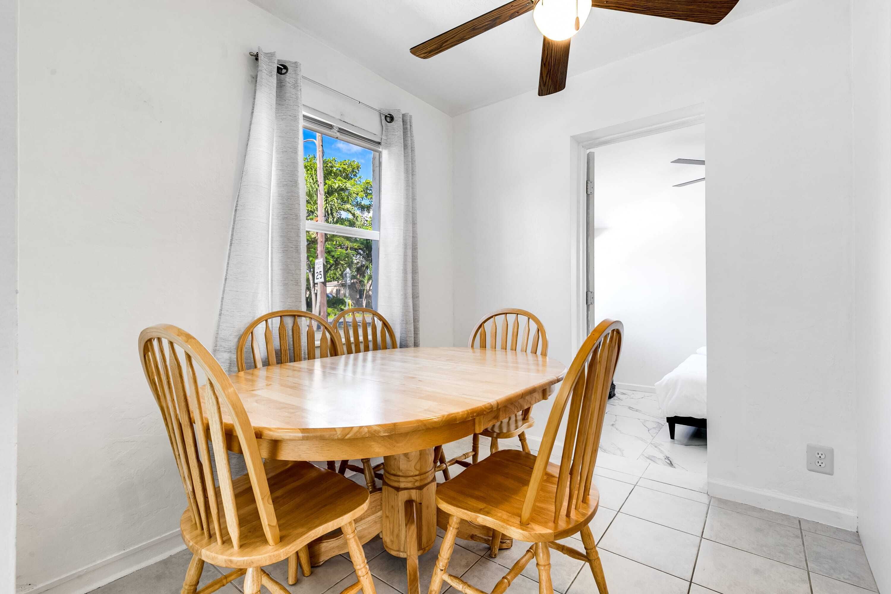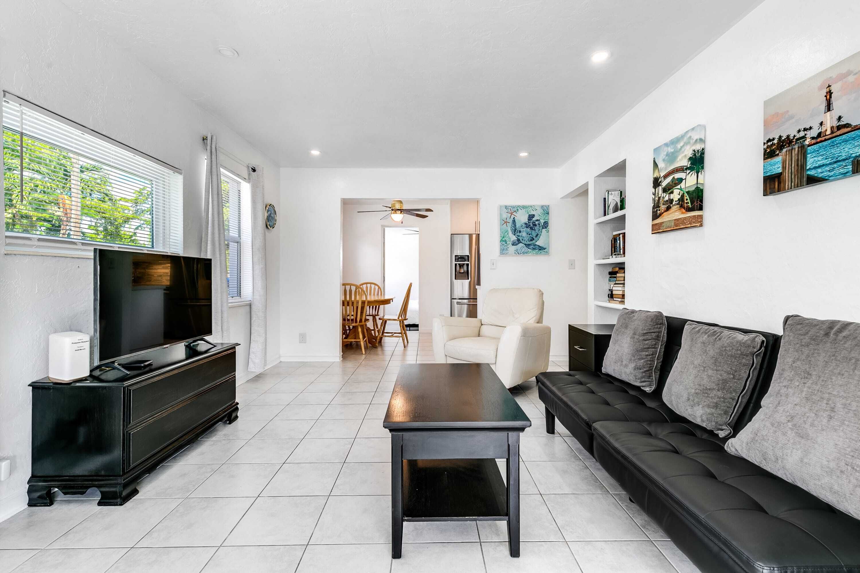 Bungalow with large backyard, 5 min from beach Summary:Enjoy a stay in this renovated bungalow located in a quiet, friendly neighborhood just 5 minutes from Pompano Beach and the Fisher Family Pier. This 3BR+2BA home features a large, fenced backyard perfect for children and pets, along with a BBQ grill for outdoor cooking. Parks, tennis courts, shops, restaurants, and many other conveniences are also just a few minutes away on foot.The Space:✓ 3 beautifully appointed bedrooms:- Bedroom #1: Queen-sized bed- Bedroom #2: Queen-sized bed- Bedroom #3: Queen-sized bed✓ 2 bathrooms w/ quality bath essentials ✓ Fresh & soft linens + towels provided✓ Fully equipped kitchen ✓ Coffee maker ✓ In-unit washer + dryer (detergent included)~ EXPERIENCE OVERVIEW ~ ✓ Large, fenced backyard w/ patio ✓ High-speed WiFi✓ Smart TV w/ streaming✓ BBQ grill✓ 5 min from beach✓ Walkable to shops, restaurants & other amenitiesThe bungalow is just 5 minutes from the beach and close to many local attractions. We’ve listed some of our favorite places below. ~ NEARBY ATTRACTIONS ~» Pompano Beach Golf Course → 3 min» Harbor's Edge Park → 4 min» Bailey Contemporary Arts → 4 min» Pompano Citi Centre → 4 min» The Great Lawn → 4 min» Sample-McDougald House → 4 min» Pompano Beach Amphitheater → 6 min walk» Pompano Beach Pier → 7 min» Atlantic Boulevard → 7 min» Hillsboro Inlet Lighthouse → 9 min» Harrah’s Pompano Beach Casino → 9 min» Fern Forest Nature Center → 14 min» Hillsboro Antique Mall → 14 min» Festival Marketplace → 15 min» Butterfly World → 15 min~ OUR FAVORITE LOCAL RESTAURANTS ~» Cafe Maxx → 3 min » Houston’s → 3 min» The Foundry → 3 min» Flanigan's Seafood Bar and Grill → 3 min» Cafe Brie → 3 min» The Rusty Hook Tavern → 4 min » Saito's Japanese Steakhouse → 4 min » Beach House Pompano → 5 min ~FAQ~What do guests enjoy most about the property?» Based on reviews, these are the features guests love most about the property:- Our responsiveness and communication- Our large and lush backyard- Our great location, just minutes away from the beach!- Our quiet neighborhood and friendly locals- Our attention to cleanliness Is the area safe?» Yes, we’re situated in a safe, quiet and friendly neighborhood.Is the house equipped for business-travelers?» Absolutely. We have WiFi connectivity and the home has many quiet spaces you can turn into a makeshift office. ♥ A NOTE FROM YOUR HOSTS We look forward to welcoming you to our home. Whether you’re looking to relax or seeking an adventure-filled vacation, Pompano Beach has activities for everyone. We’re happy to be your guide so don’t hesitate to reach out if you have questions!Your host, John and MauraHoldfast HoldingsGuest Access:Prior to arrival, guests will be given a unique access code for a safe and seamless check-in experience.The Neighborhood:We are situated in the Old Pompano neighborhood which is primarily residential, offering a quieter atmosphere than some of the more commercial areas of Pompano Beach. There are several local shops, restaurants, and parks within walking distance or a short drive and the coastline is just minutes away.Getting Around:The house is located in a walkable community close to the beach and many shops and restaurants. Bringing a car would be the most convenient option but rideshare services like Lyft and Uber are also available.Other Things to Note:» Smoking is not permitted» Please refrain from moving furniture» Please don’t flush items that could clog toilets» Avoid putting grease down the sink» Pets allowed for a fee and w/ approval from hosts» Parties are prohibited» No commercial photography» Hosts must be notified of visitors» Quiet hours from 10 PM - 7 AM» Maximum of 7 guests
