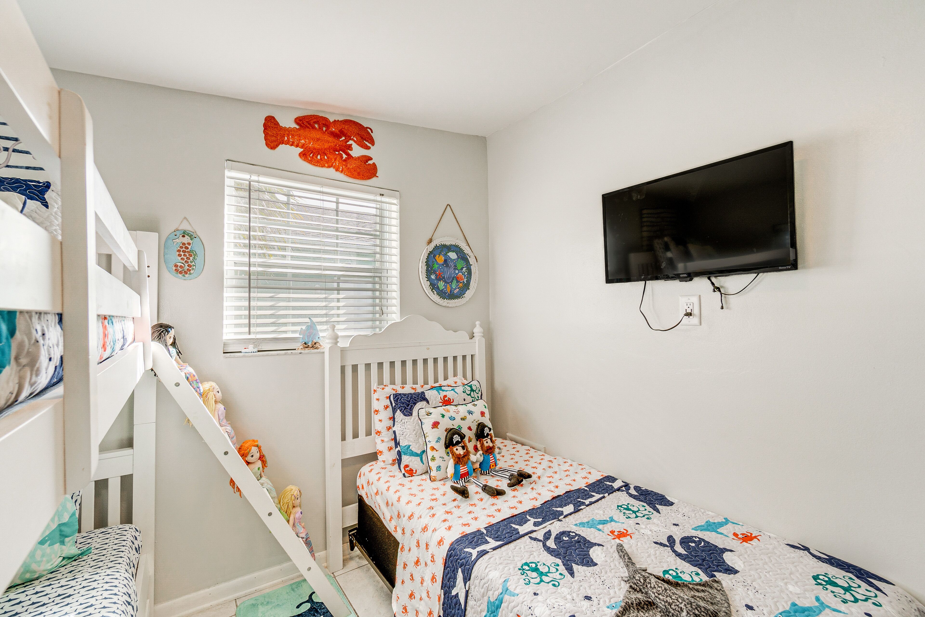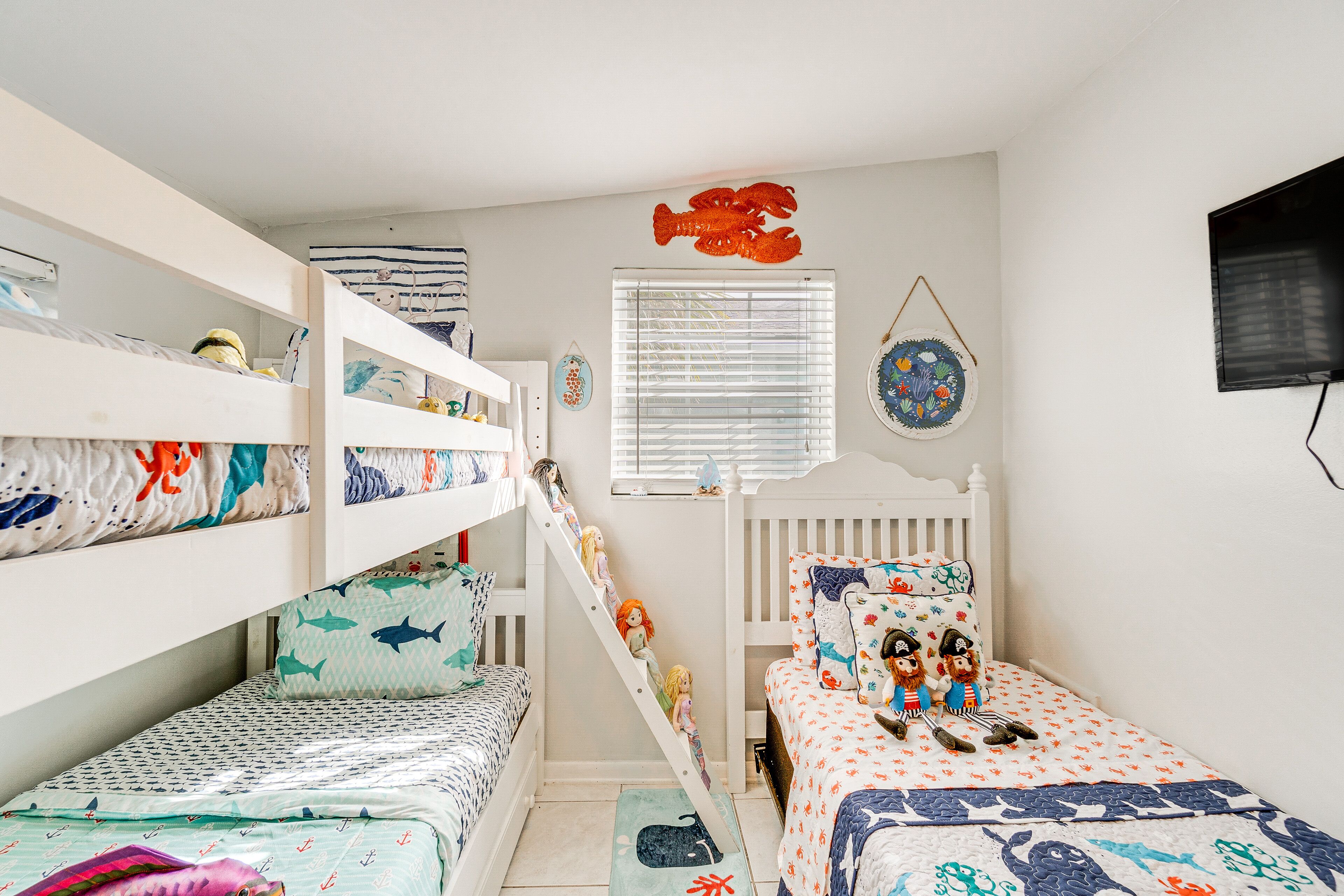 Port Charlotte Paradise w/ Private Outdoor Oasis! Escape to the Sunshine State and indulge in a remarkable vacation experience at this 3-bedroom, 2-bathroom vacation rental in Port Charlotte. With its inviting atmosphere, spacious layout, and serene ambiance, this house is the perfect base for exploring the area's top attractions. From boating on Charlotte Harbor to shopping at Fishermen's Village, there's something for everyone. After a day of adventures, relax on the patio, take a dip in the pool, or enjoy a BBQ in the outdoor kitchen!-- THE PROPERTY --Quiet Neighborhood | Private Boat Dock & Jet-Ski Lift | Pet Friendly w/ No FeeBedroom 1: Queen Bed | Bedroom 2: Queen Bed | Bedroom 3: Twin Bed, Twin Bunk Bed w/ Twin Trundle | Living Room: Full Sleeper Sofa | Additional Sleeping: Pack ‘n PlayOUTDOOR SPACE: Covered patio, outdoor kitchen, mini fridge, outdoor dining, patio furniture, lanai, private pool (depth 3'-8'), gas grill, loungers, single kayak, double kayak, adult and children's lifejackets, kid floaties, 2 bicycles, horseshoes, badminton, 3 coolers, 2 swimming fins, sand toys, beach wagon, beach umbrellas, beach blankets, beach bags, beach towels, fishing polesINDOOR LIVING: 4 Smart TVs, 4-person dining table, recliner chair, walk-in showers, ceiling fansKITCHEN: Stove/oven, microwave, dishwasher, refrigerator w/ ice maker, dishware/flatware, 2-person breakfast bar, Keurig single-serve coffee maker, drip coffee machine, blenderGENERAL: Free WiFi, washer/dryer, linens/towels, complimentary toiletries, central air conditioning/heating, high chair, booster seat, car seat, wheelchair, hair dryerACCESSIBILITY: Single-story home, 2 steps required to enterFAQ: Ring doorbell (facing front entry), optional nightly pool heat fee (paid pre-trip, applied to entire stay), quiet hours (10:00 PM-9:00 AM)PARKING: Driveway (2 vehicles), street parking-- THE LOCATION --FISHERMAN’S VILLAGE (5 miles): Walking esplanade, Punta Gorda Boat Club, Gilchrist Park, open-air shopping, waterfront dining, boat rentalsHOT SPOTS: Sunseeker Resort (3 miles), Gasparilla Island (27 miles), Boca Grande (28 miles)SUN & SAND: Port Charlotte Beach Park (2 miles), Chadwick Park at Englewood Beach (23 miles), Venice Beach (27 miles), Blind Pass Beach (55 miles)WALK IN THE PARK: Edgewater Park (0.8 miles), Bayshore Live Oak Park (1 mile), Audubon-Pennington Nature Park (4 miles), Larry Taylor Kiwanis Park (4 miles)AIRPORTS: Punta Gorda Airport (7 miles), Southwest Florida International Airport (46 miles)-- REST EASY WITH US --Evolve makes it easy to find and book properties you’ll never want to leave. You can relax knowing that our properties will always be ready for you and that we’ll answer the phone 24/7. Even better, if anything is off about your stay, we’ll make it right. You can count on our homes and our people to make you feel welcome — because we know what vacation means to you.-- POLICIES --- No smoking- Pet friendly- No events, parties, or large gatherings- Must be at least 21 years old to book- Additional fees and taxes may apply- Photo ID may be required upon check-in- NOTE: The single-story home requires using 2 exterior steps to enter- NOTE: There is an optional pool heat fee of $10/night (+ fees & taxes, paid pre-trip, applied to entire stay)- NOTE: Please observe quiet hours from 10:00 PM to 9:00 AM- NOTE: Your safety matters. This property features a Ring doorbell device with an exterior security camera facing the front outdoor entry. The camera does not look into any interior spaces. The camera actively records video and sound when motion is detected by the device. All doors also feature a SimpliSafe sensors