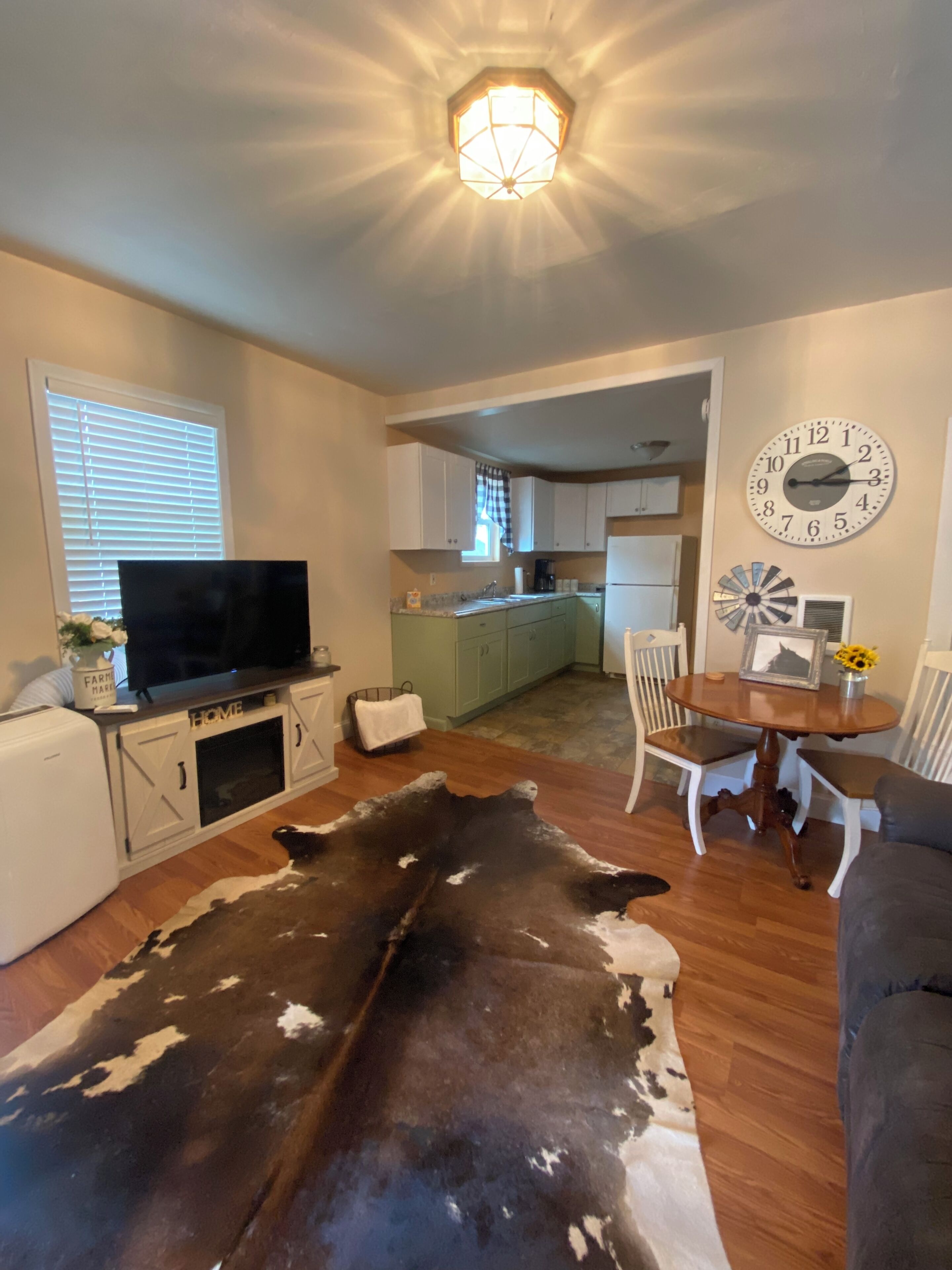 The yellow cottage Come enjoy a quiet stay at the farmhouse cottage just a mile from downtown and shopping. This place feels like home away from home.What this place offersBathroomBathtubHair dryerCleaning productsHot waterBedroom and laundryWasherFree dryer – In unitEssentialsTowels, bed sheets, soap, and toilet paperBed linensCotton linensClothing storage: closetHeating and coolingIndoor fireplaceRadiant heatingHome safetySmoke alarmCarbon monoxide alarmFire extinguisher