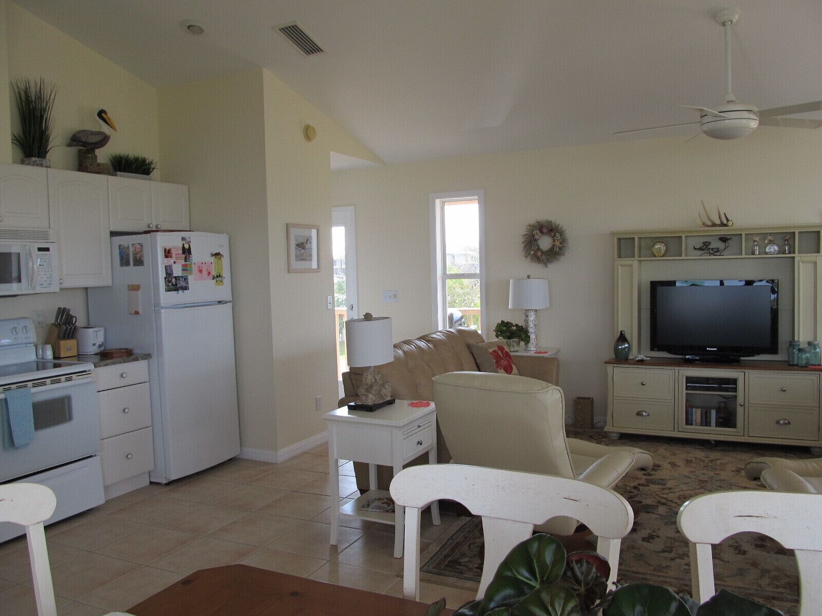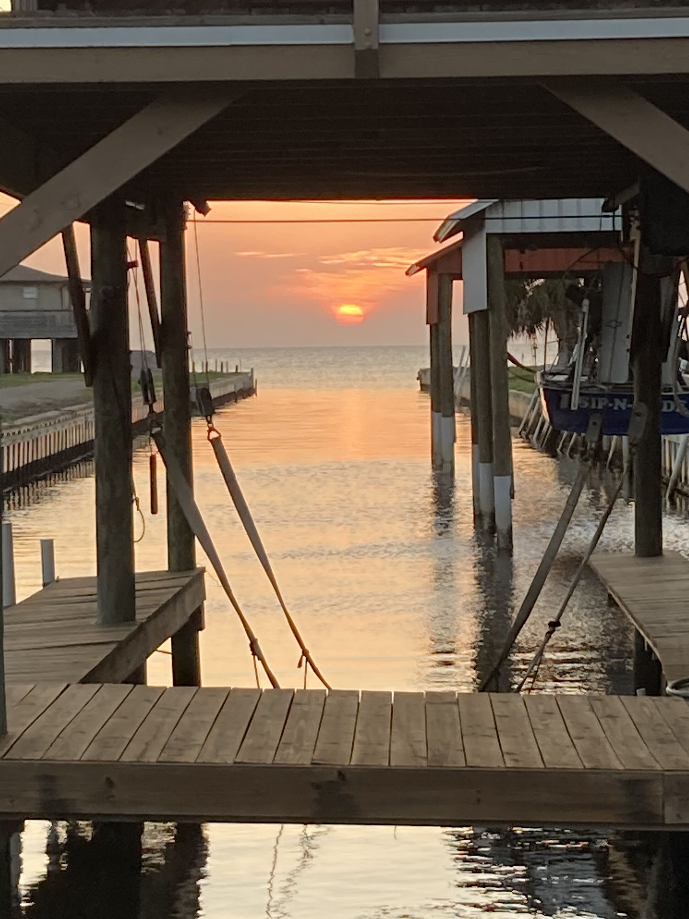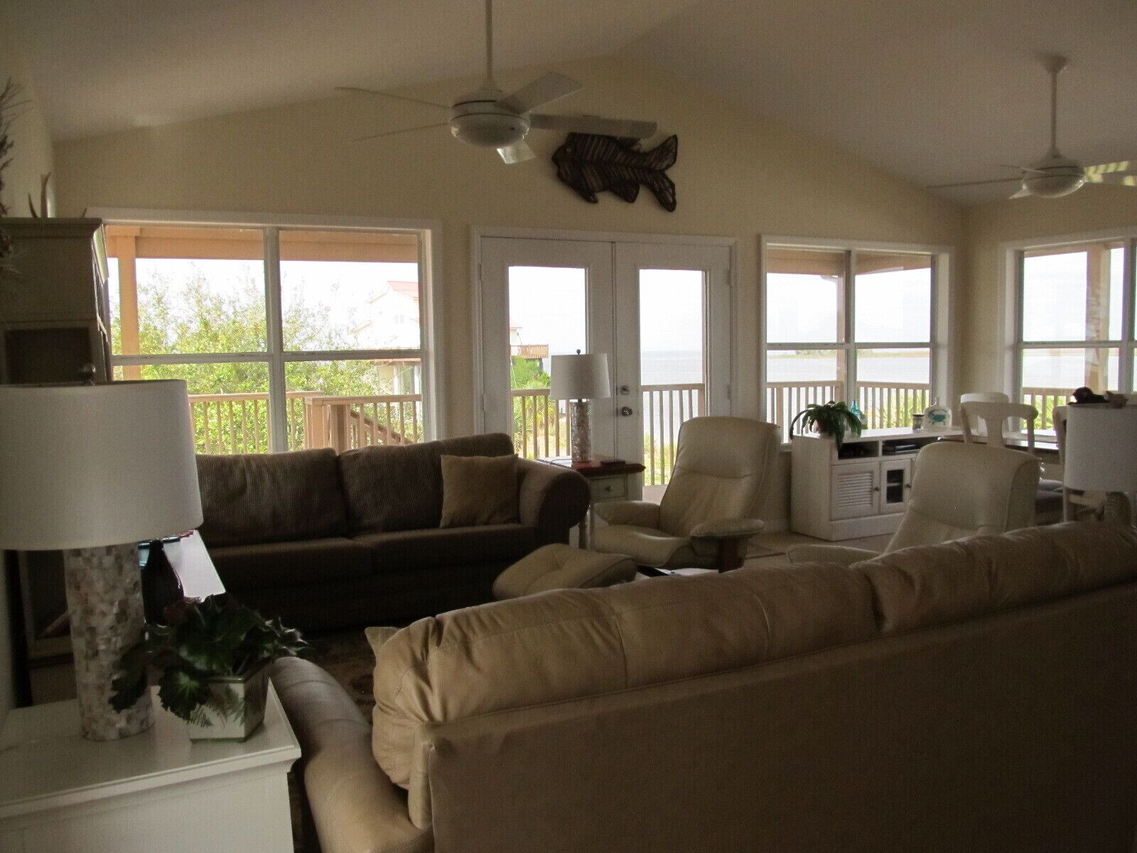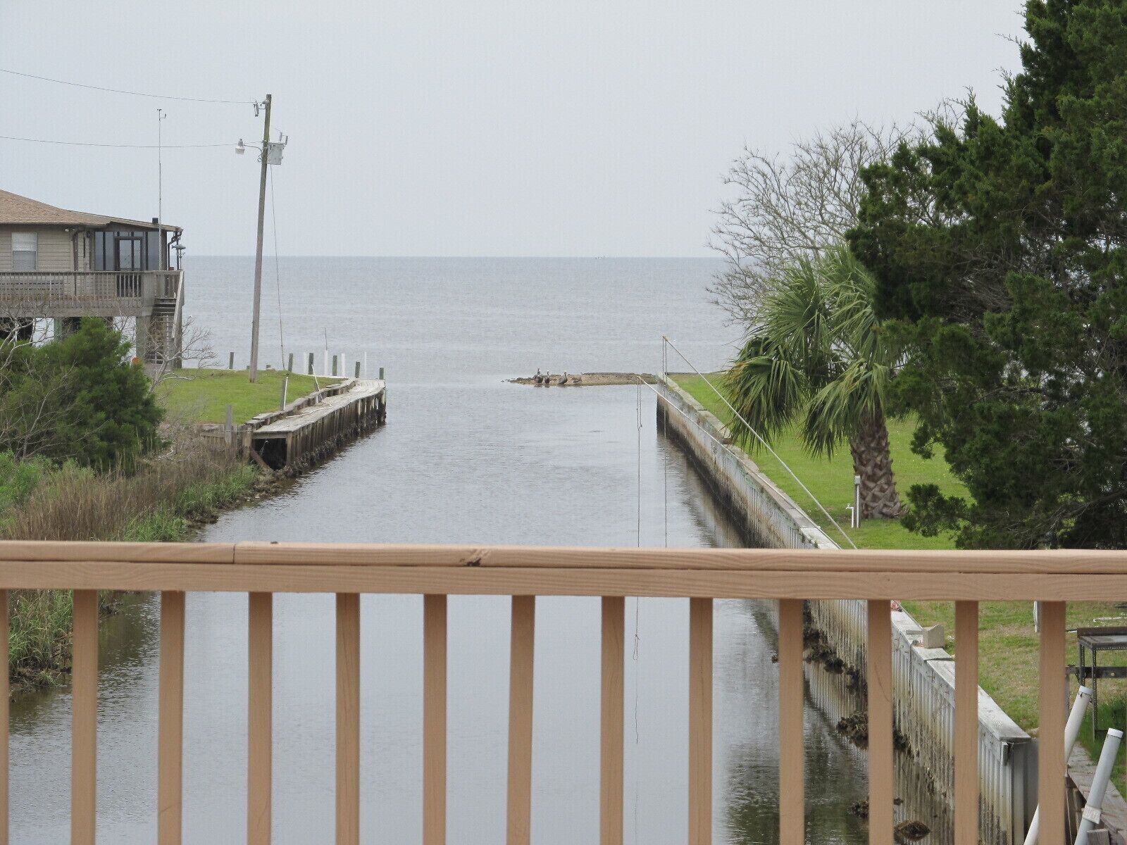 Outstanding Gulf Views and Direct Gulf Access This rental has breathtaking gulf views and has direct gulf access from the canal located directly beside the house. This short canal ends at our large over the canal deck which covers 2 boat lifts and a large fish cleaning station. Home has wrap around decks on three sides with plenty of room for relaxing, outside dining, watching the wildlife and viewing the beautiful sunsets. This cozy home (900 square feet) sleeps 4 with 1 1/2 baths. There are 2 bedrooms, one with a queen and the other with a double bed and a queen size sofa sleeper in the living room. Each bedroom has French doors that lead out on the outside decks that offer unique views. The kitchen is fully stocked with everything you might need, including ice maker, toaster, coffee maker, mixer, blender, microwave, dishwasher and some spices. There also is a gas grill on the deck for your use as well as other deck furniture for your enjoyment. Below the house we have a large ice machine for your use that a few neighbors and friends may also use, there is plenty for everyone! Home also includes washer and dryer.In the living room there is a flat screen TV that has Dish network and a DVD player for your use. The DVR has many movies that have been recorded if you feel like a movie. There is WiFi for your use.Since there are no grocery stores in town, we suggest you do your shopping prior to your stay.