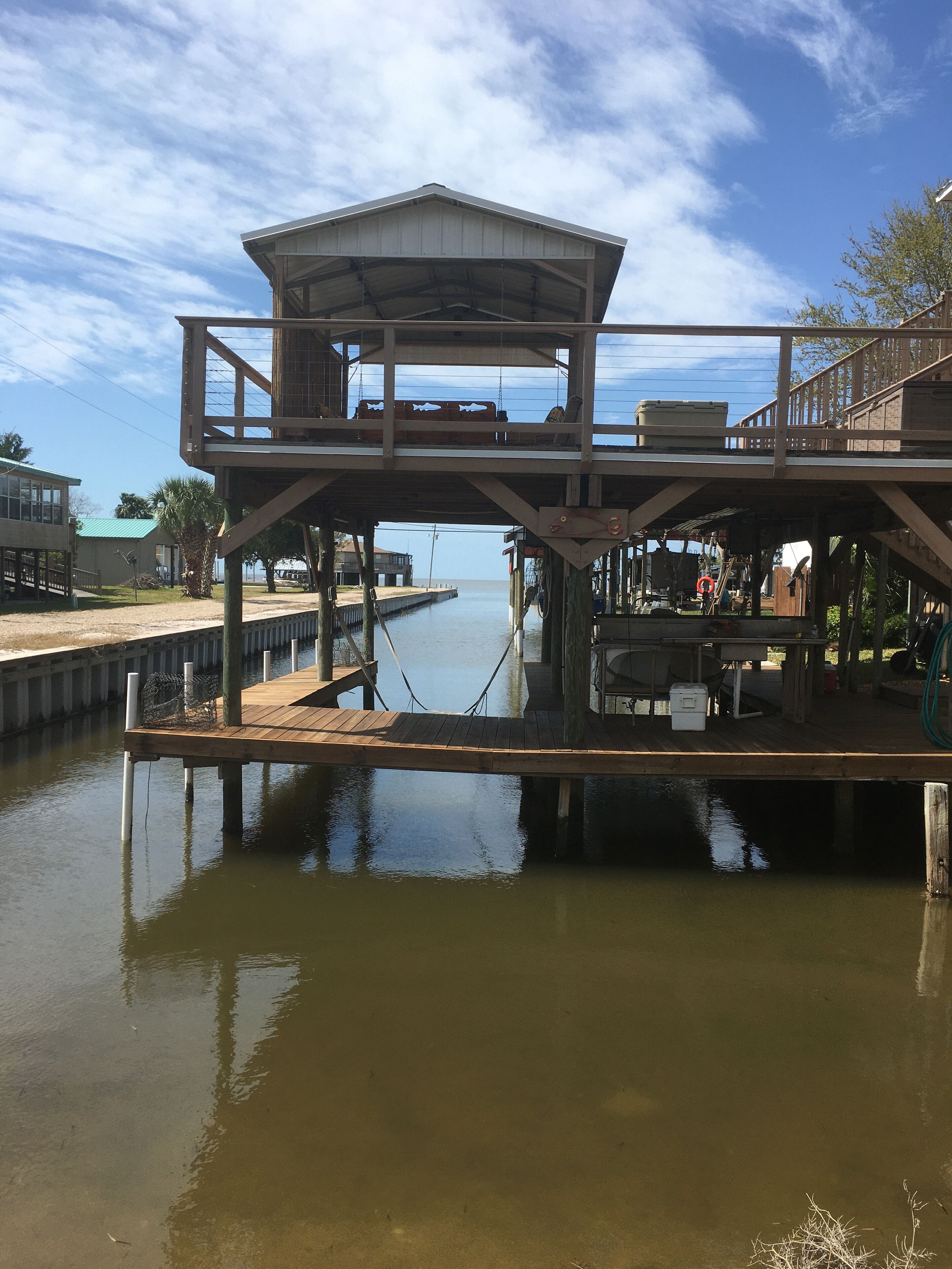 Outstanding Gulf Views and Direct Gulf Access This rental has breathtaking gulf views and has direct gulf access from the canal located directly beside the house. This short canal ends at our large over the canal deck which covers 2 boat lifts and a large fish cleaning station. Home has wrap around decks on three sides with plenty of room for relaxing, outside dining, watching the wildlife and vie...