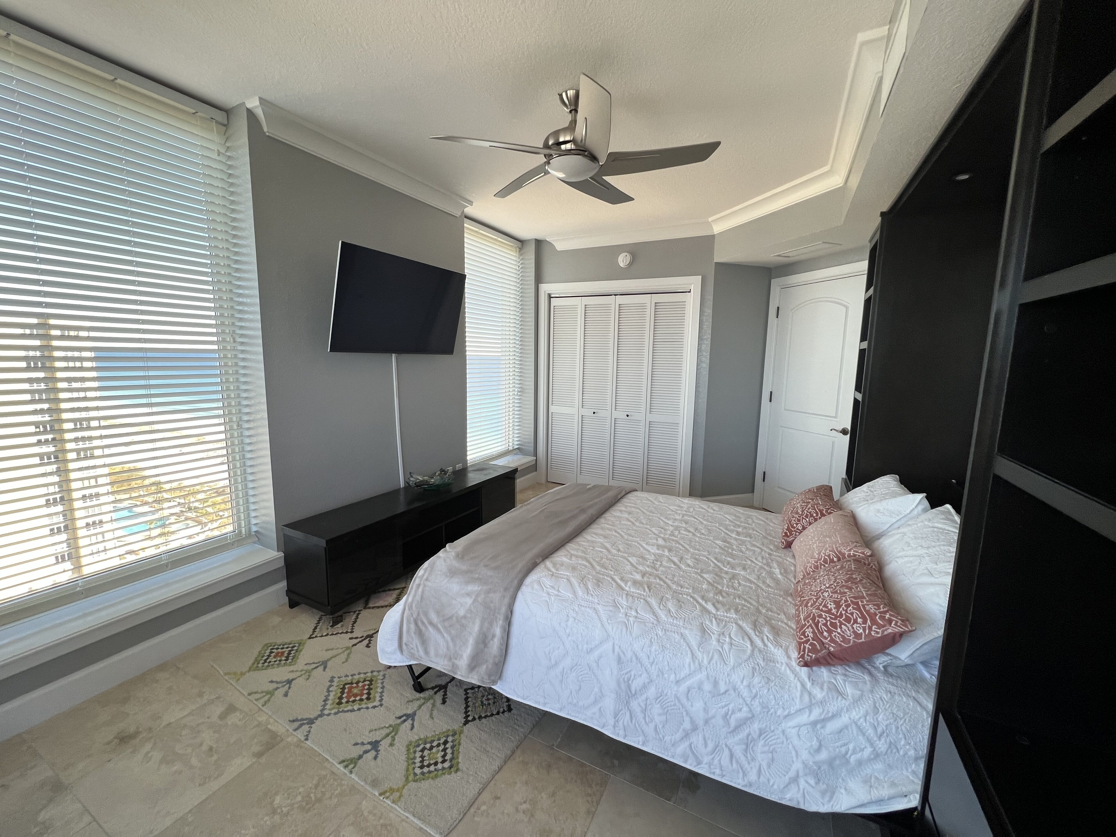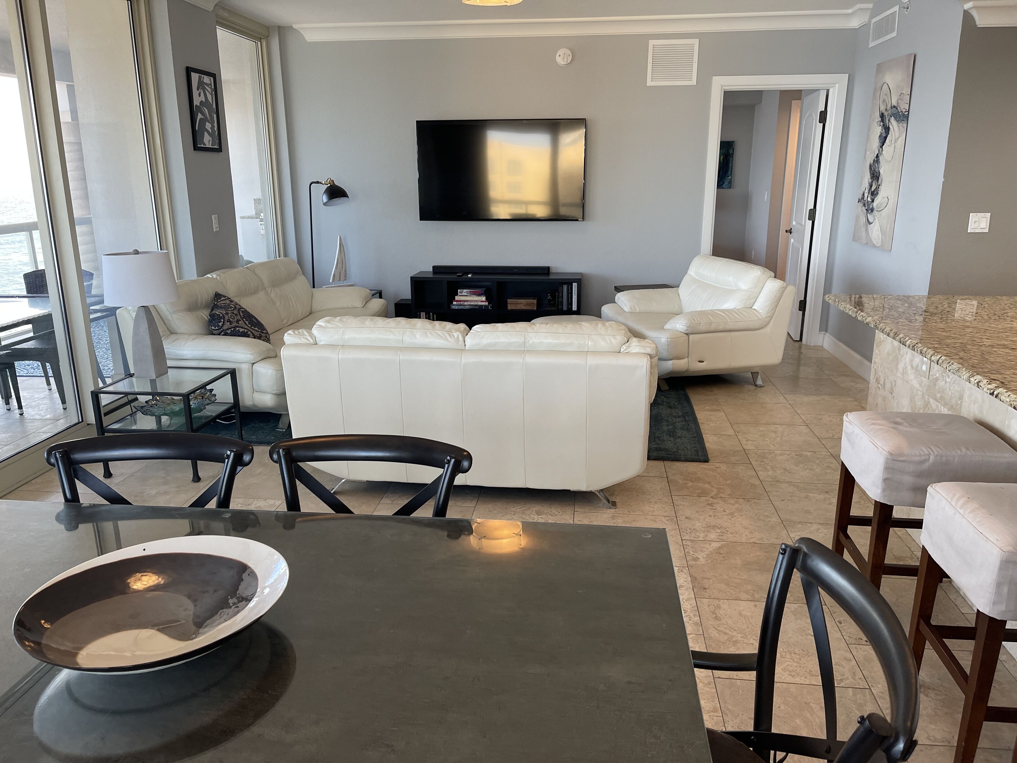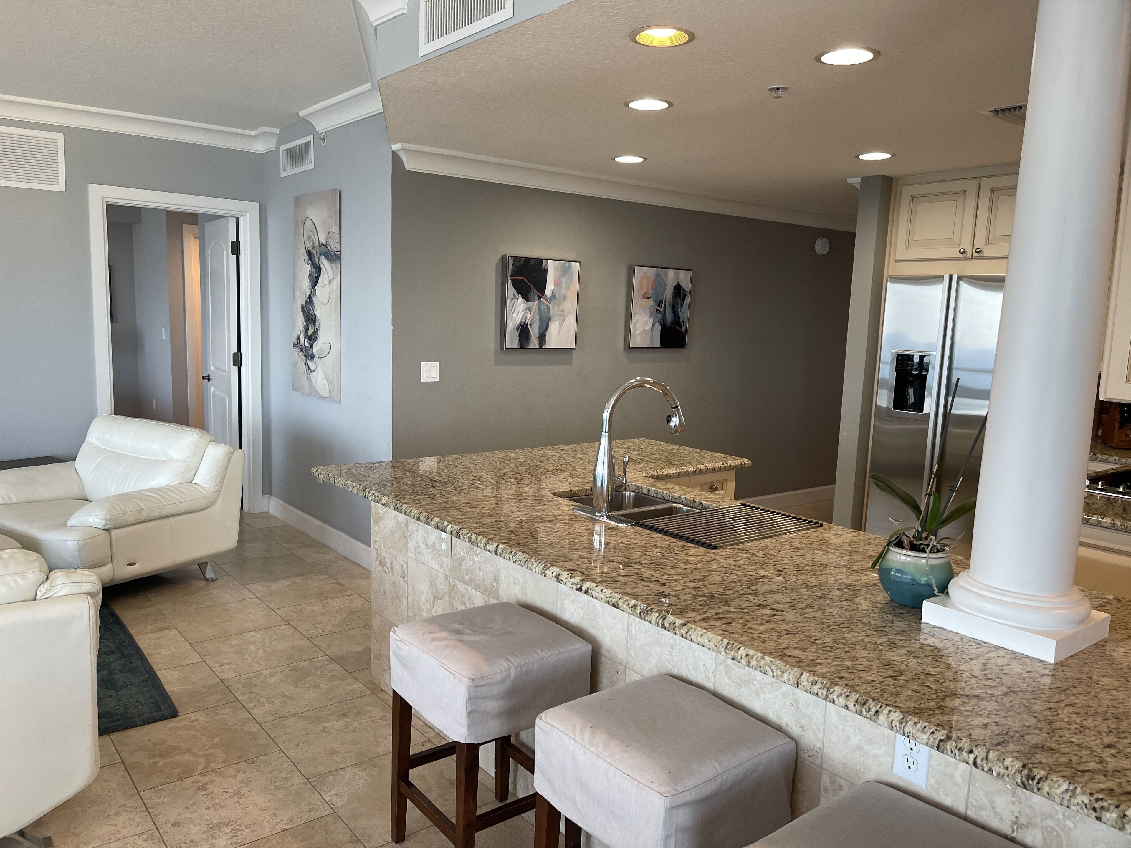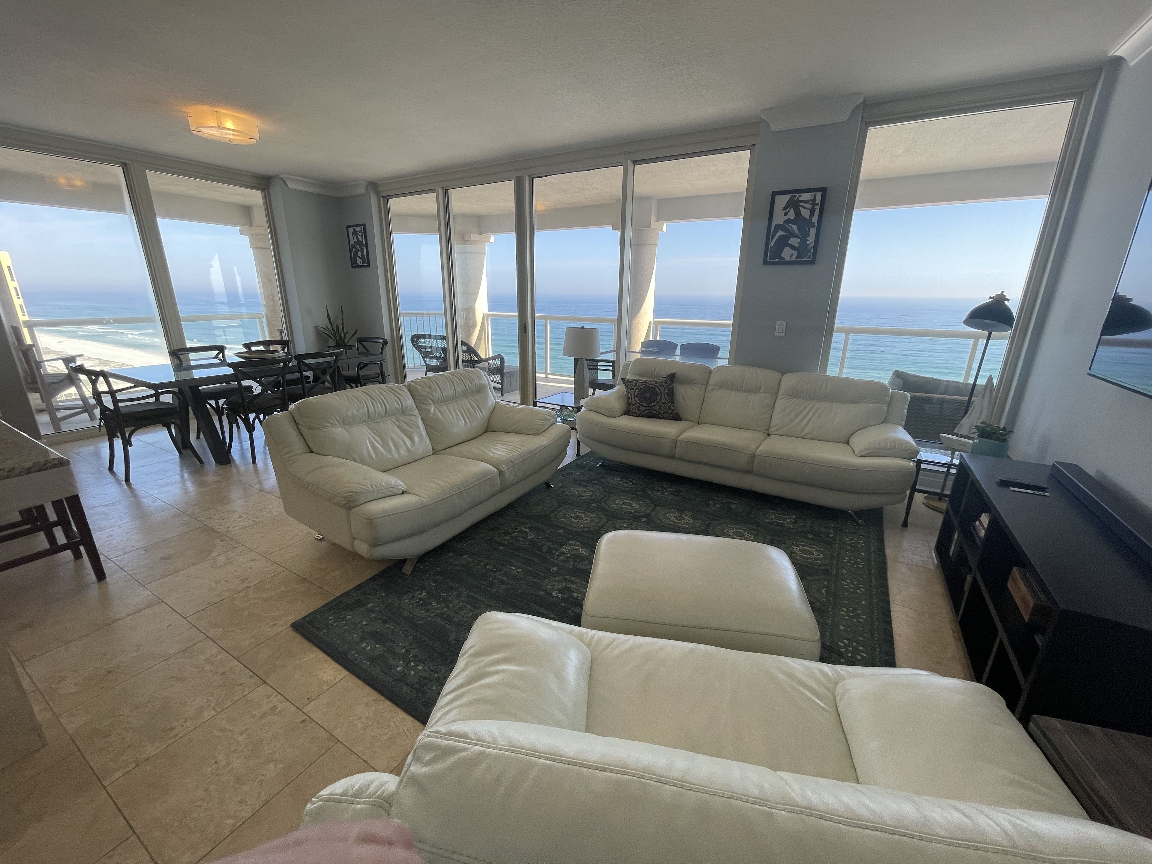 'Gulf Vibrations' Beach Club High-rise Gulf Front 20% off til 2/28/25 7+ nights OFFSEASON SPECIAL ! VRBO will automatically calculate 20% off any new bookings throughout 2/28/25 of 7 nights or more. Come enjoy the beach when the rates are down, the crowds are low and the heat is not scorching !! Welcome to Gulf Vibrations ! 2nd picture in is a informal video , check it out see if this is a good fit for you, your guests and your family. This unit sleeps 9 MAX including children in a bed but 8 would be a better fit unless the last two are kids, so please read the bed descriptions and watch the video. We strictly adhere to the maximum amount of people allowed !! Nice roomy 1,962 sq feet of living space 4 bedroom /4 bath DIRECT GULF FRONT on the 15th floor it doesn't get much better than this ! Location, location as always . I like to be very truthful in describing all condos so please watch the video it is the second picture in. This condo includes 2 beach chairs and one umbrella at the beach chair service Lazy Days thru the end of October when the season winds up. That is available 7 days a week March 1st-Oct 31st ,8 am til 6 pm peak season ,weather permitting of course !! We pride ourselves on cleanliness, ease of communication and making your vacation feel like a home away from home with a well stocked rental. This is a luxury 4 bedroom Upgraded Condo - floor to ceiling windows give panoramic views of the white sandy beaches of the Gulf of Mexico. This 4 bedroom, 4 bath premium condo is located on the 15th floor at Beach Club Resort & Spa on Pensacola Beach right in the core of the beach within walking distance to shopping,restaurants ,bars and gulf front ! Due to the parking being tight there are only 2 parking passes allowed to be given per rental because parking is simply at a premium in the high season. Just wanted to be clear and upfront about that from the get go as set forth in the rules from the HOA. If you have a 3rd vehicle you will have to park it off premise as The Beach Club will tow extra cars beyond 2 to a unit . Rules and other important info ! This sleeps 9 MAX including children please read bed descriptions below and you must be 25 years old to book AND be staying on premise. NO PETS and NO SMOKING. Thank you for following these rules set forth by the owner and or the HOA . Travel insurance is always suggested to buy via vrbo at the start of your booking . I know VRBO offers different types of insurance and is offered at the time of booking .We do not sell travel insurance so see what VRBO offers and covers but be sure to look at the available polices and what they include . No refunds are given for bad weather, hurricanes, or storms so please when booking look into travel insurance. Condo info: There are 50 pictures included and a informal video located at the second picture. Please feel free to ask questions via the dashboard before booking, I answer all promptly !! Sleeping accommodations. There is a king size bed in the master, the second master bedroom has a murphy queen bed, the third bedroom is a queen bed and the last bedroom is set up for kids with a full bed on the bottom, and stairs that go up to a twin bed. The couch is not a pull out so in beds there is a MAX of 9 people allowed including children and please read the description of the bed types . There is also a 'playard' which is similar to a pack and play just a different name for babies purchased brand new as of Aug 2021 for use with your young ones and one less thing to pack !—floor to ceiling windows - for welcoming sandy Gulf-sweeping views—Granite countertops __ Travertine flooring—Fully equipped kitchen—Extensive wrap around balcony for Southern and East facing views, with access from the living room, and master bedroom--2nd Private balcony access with North facing views overlooking the Island, Pensacola Sound, Pensacola Beach Boardwalk, Pier, and Sabine Bay-- Master Bathroom Jacuzzi tub—Laundry with washer and dryer . There are 4 beach towels you can use any other beach towels needed just bring your own. Master Bedroom: King, View overlooks the white sands of the Gulf of Mexico. Closet, Access to South (Gulf Balcony). Includes bathroom with spa tub, two large vanities, travertine shower Second Master: Queen Bed, closet, access to the North Balcony overlooking the sound and up and down the entire island. Private bathroom, travertine shower.3rd Bedroom: Full & Twin (note: bunk beds). Private bathroom, with shower/tub, and closet. East Facing Views of the Island - Gulf & Sound4th Bedroom: Queen bed, ample closet space, Overlooks the breezeway - south views of the sound. Bathroom (detached) includes a vanity and travertine shower. Open kitchen plan, allows ample living and dining space. Sliders are Hurricane Rated floor to ceiling glass, spanning a 10' opening to extend the patio to in/outdoor living. Extensive Southern view patio Wraps around for additional East facing views, Electric Grill, and patio dining. *NOTE: 2nd master queen is a murphy bed.Firm Non-smoking policy. No exceptions.The Tower of Beach Club Resort and Residences is a gated resort, fully-loaded with amenities. Heated, Medetranian-inspired indoor and outdoor pools, indoor and outdoor jacuzzis, direct beach access, spa, gym, and dedicated beach chair service available for hire. The Gym is OPEN! The spacious full gym is bright with natural light, and overlooks the outdoor pool. For added COVID-19 precaution, there is dedicated management for increased control over cleanliness, and occupancy. The spa offers both dry and steam saunas, showers, and locker room. These amenities are included in your stay. Spa services for massage, facials, nails etc. are conveniently available for additional charge, all services can be booked on property - see the desk agent located inside the gym, or by calling the Beach Club Aqua Spa: 855.564.0027 This resort is walking distance to several in/outdoor restaurants, and the boardwalk. FREE Island 