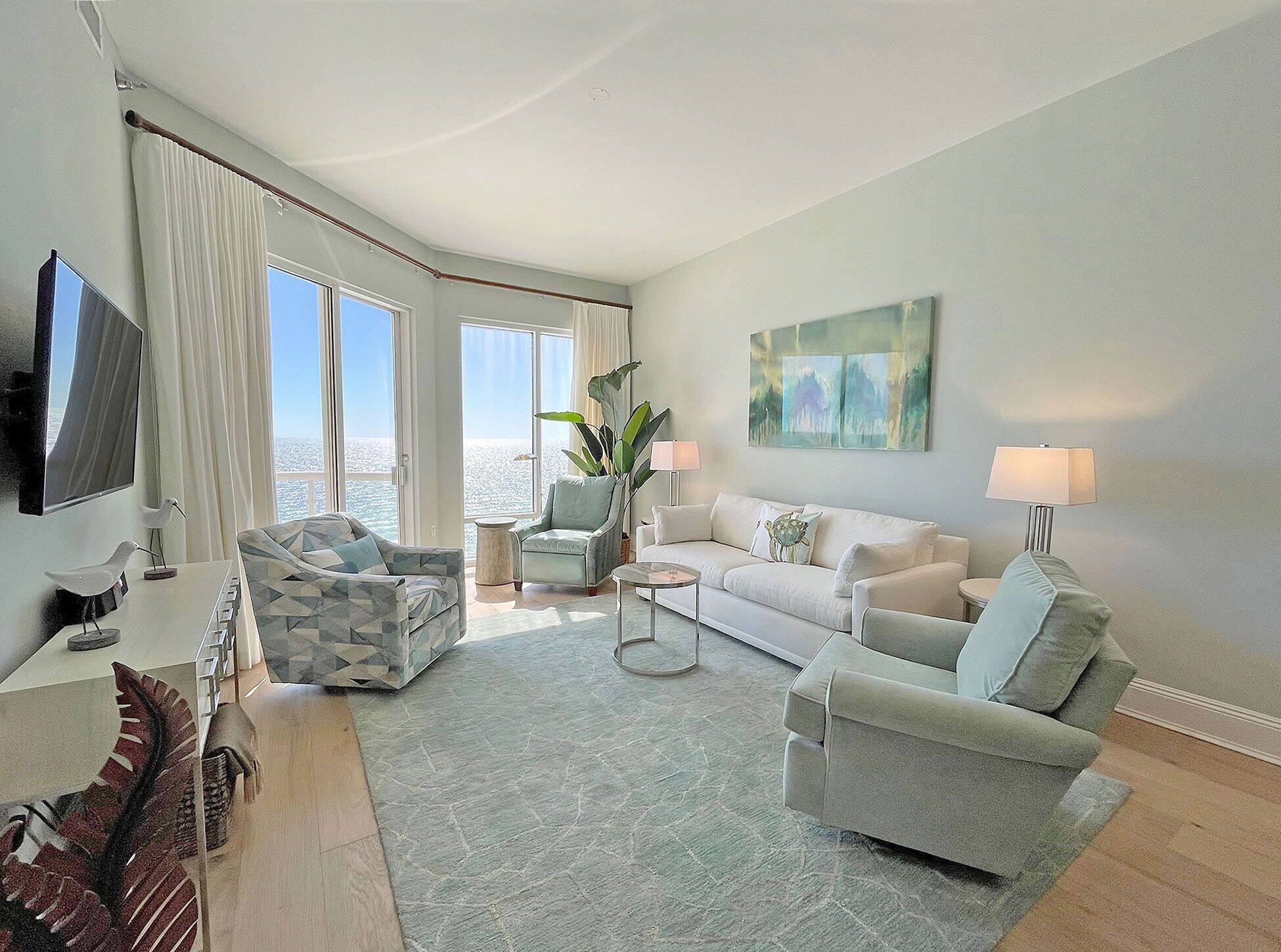 Gulf-front 17th floor penthouse at Emerald Isle! Beautiful views! Gulf-front 17th floor penthouse at Emerald Isle! Beautiful views of the Gulf of Mexico and sugar white sandy beach. Sleeps 7 with king in master, queen bed in guest as of 1/1/23, and a sleeper sofa in the living room. This newly-renovated, beautifully-decorated condo is the perfect getaway and offers so many amenities. And the views...