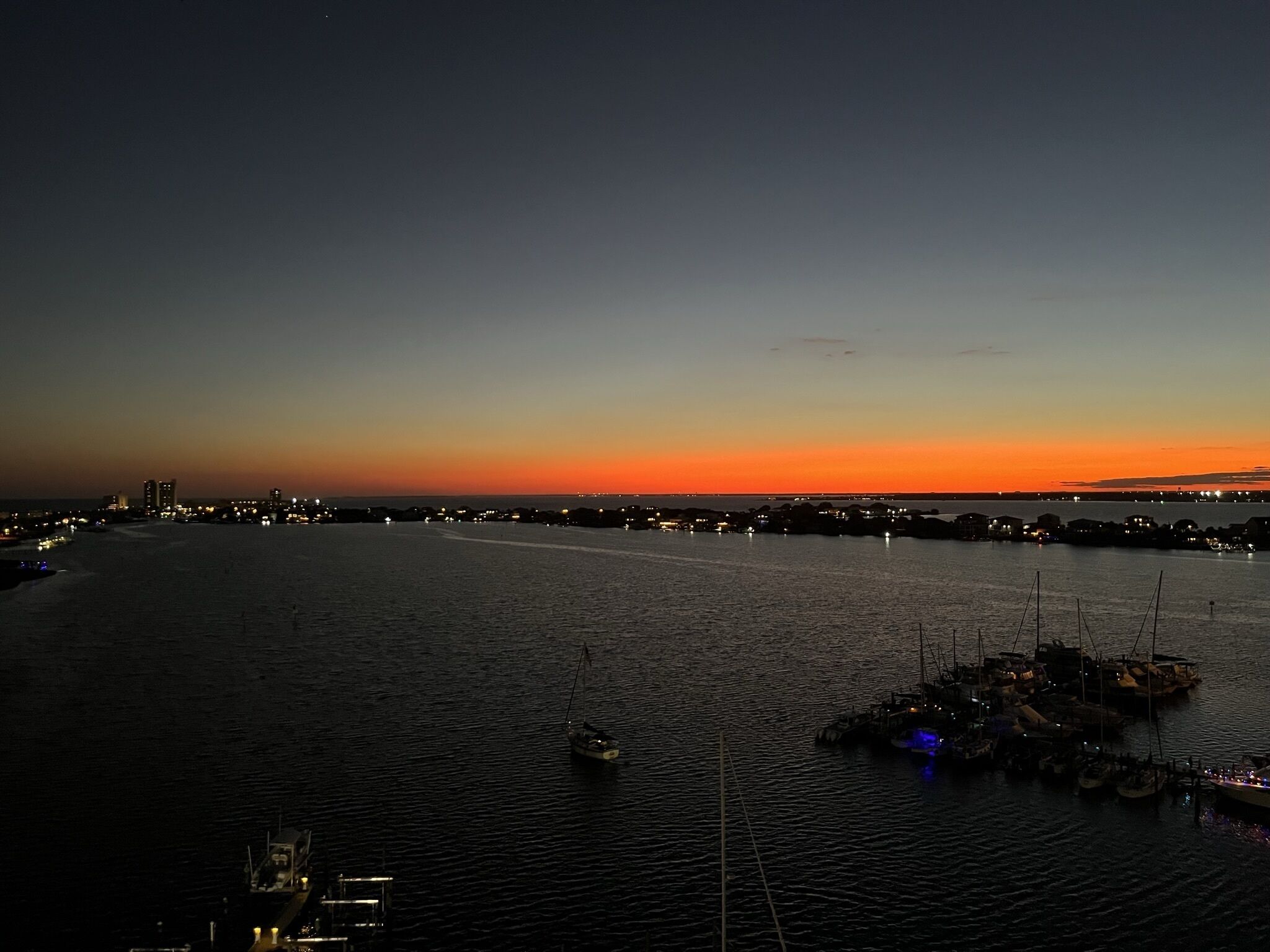Entire condo in the heart of Pensacola Beach across from the Gulf This 10th floor condo unit is just steps to the Gulf and all the best restaurants. The master bedroom features a king size bed, spacious vanity off of the master bath. The second bedroom hosts a queen size bed. Relax in the outdoor pool after a long day at the beach, followed by a nice dinner out or just staying in and cooking in the fully equipped kitchen. Enjoy breathtaking views of the Gulf and fabulous sunsets from the private balcony. A washer and dryer is located in the condo for your convenience.