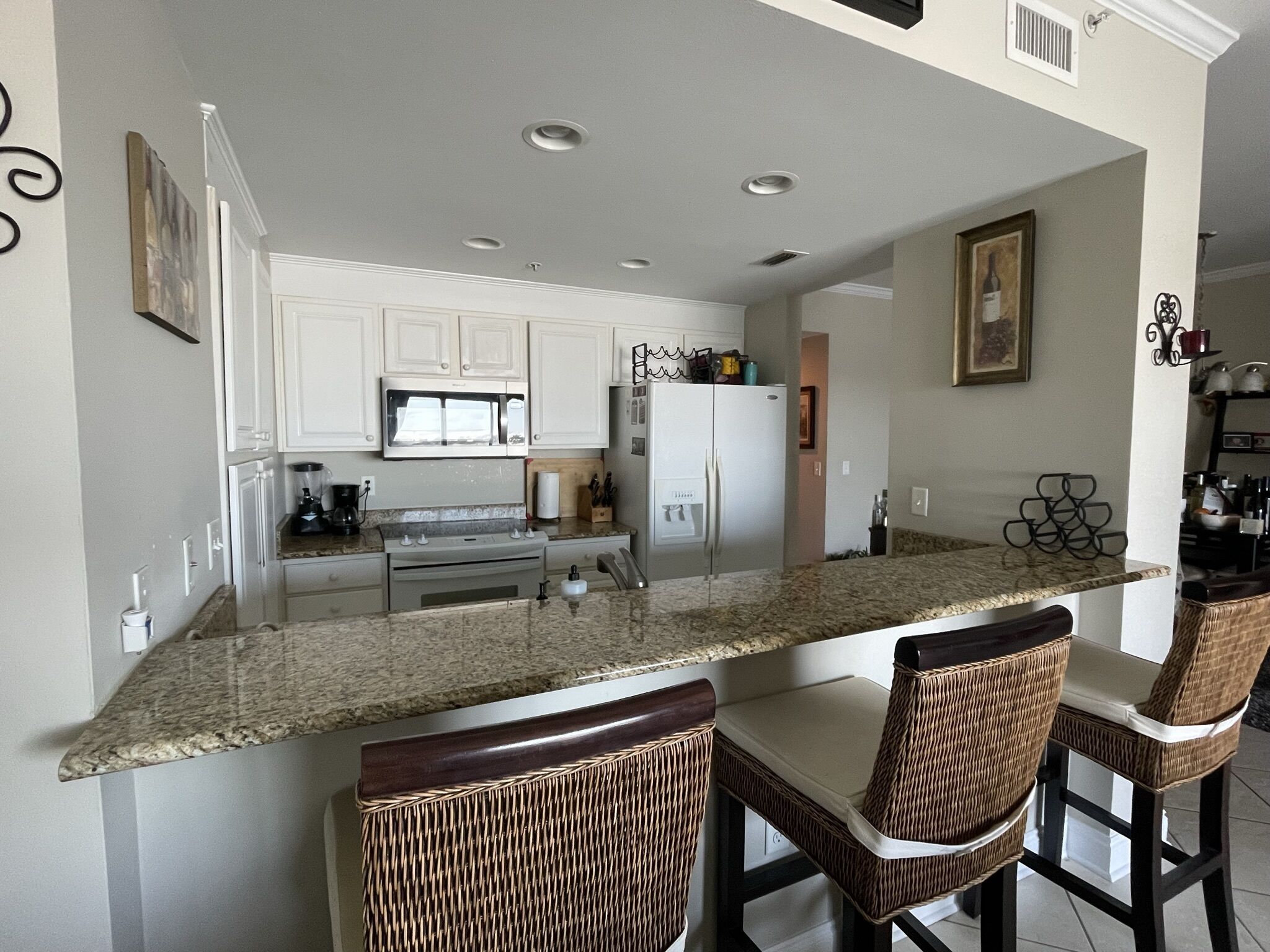 Entire condo in the heart of Pensacola Beach across from the Gulf This 10th floor condo unit is just steps to the Gulf and all the best restaurants. The master bedroom features a king size bed, spacious vanity off of the master bath. The second bedroom hosts a queen size bed. Relax in the outdoor pool after a long day at the beach, followed by a nice dinner out or just staying in and cooking in th...