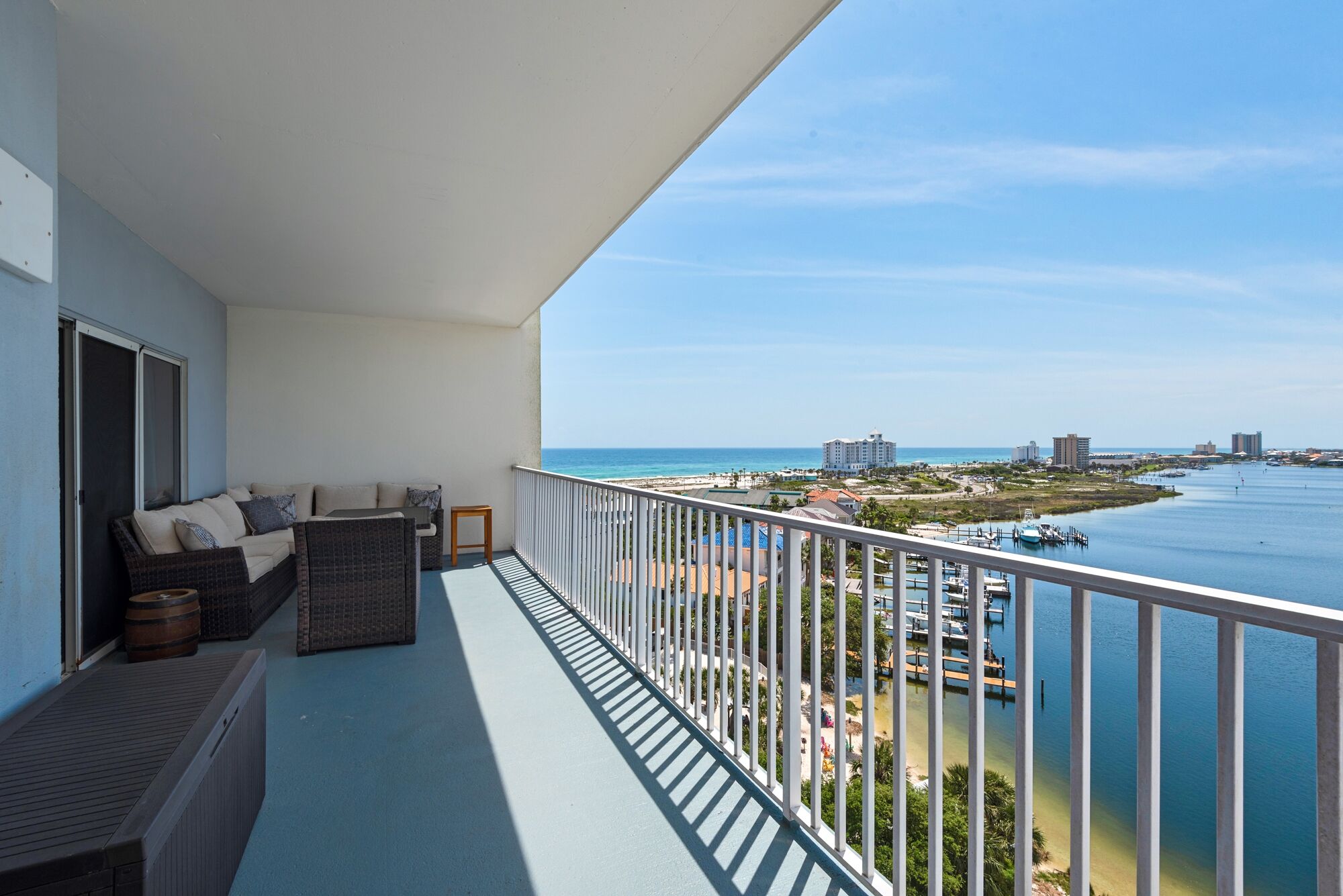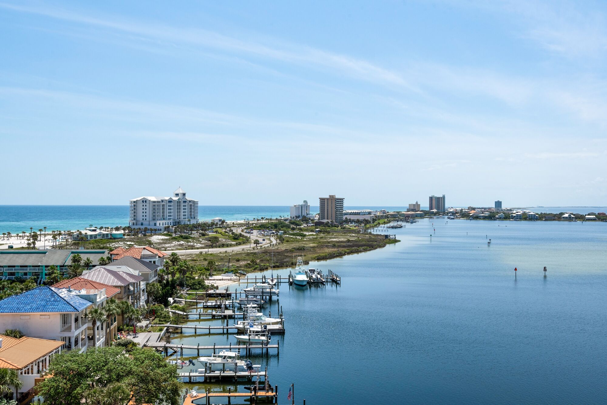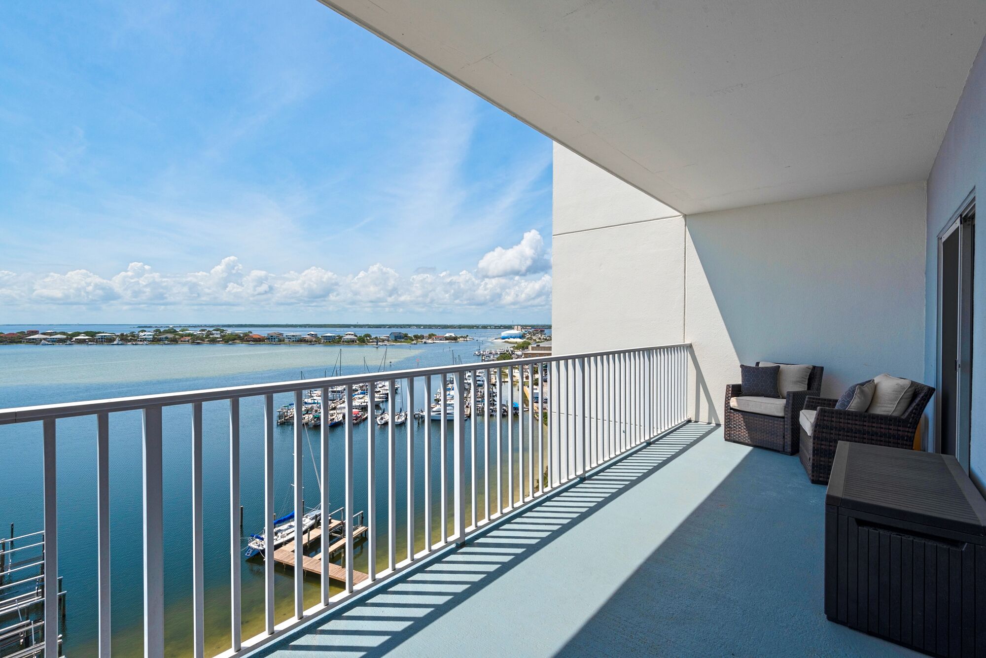 TheView...South Harbour Newly Renovated and ready to be booked! 2 Bedroom/ 2 Bath with panoramic views of all bodies of water on Pensacola beach. South Harbour 9B sleeps 6. Relax in the perfect beach condo, 9th-floor unit in Paradise. The kitchen has beautiful granite countertops, stainless steel appliances, and offers everything you will need to feel right at home. The bedrooms each offer Queen beds. For indoor meals and entertaining there is a lovely dining set and bar stools or head out to the balcony for dining while enjoying the best sunset or sunrise. The spacious, balcony is a wonderful place to start the day with your morning coffee. Watch Sabine Bay come alive with Large Charter boats headed out to the Gulf for a day of fishing, and paddle boarders and kayakers taking advantage of the wonderful Florida sun. At day’s end marvel at the spectacular sunsets that melt into the horizon leaving behind the tranquil lights surrounding Sabine Bay. After nightfall watch the bay glow in rainbow hues with the newest Pensacola Beach attraction, Glow Paddle. There is a seasonally heated pool looking out over Sabine Bay as well as a great little gym area. Once you park your car in this gated complex, you won’t need it again until it is time to head home! The boardwalk and famous Casino Beach are within easy walking distance and there is a free beach trolley during the season to catch a ride where you don’t care to walk! To satisfy your adventurous side, next door are outlets for charter fishing, dolphin and sailing cruises, parasailing, go-carts, and rental shops offering jet skis, bikes, kayaks, paddleboards and more! South Harbour is an amazing year-round choice for family and friends to get away from it all and discover a slice of paradise. Professionally managed by Deja Blu Rentals...