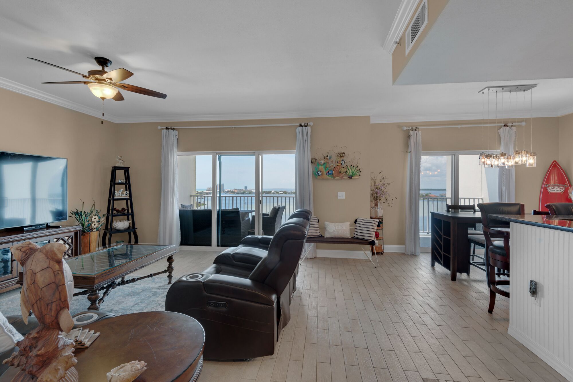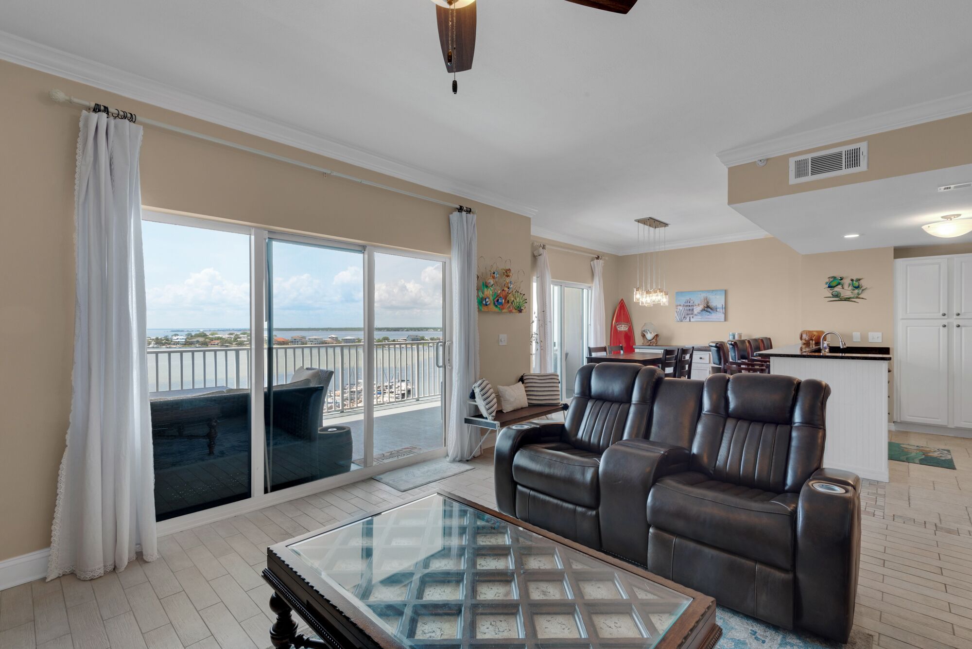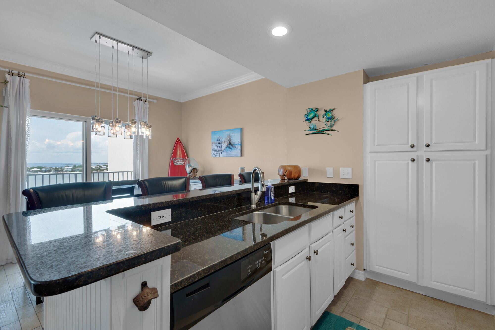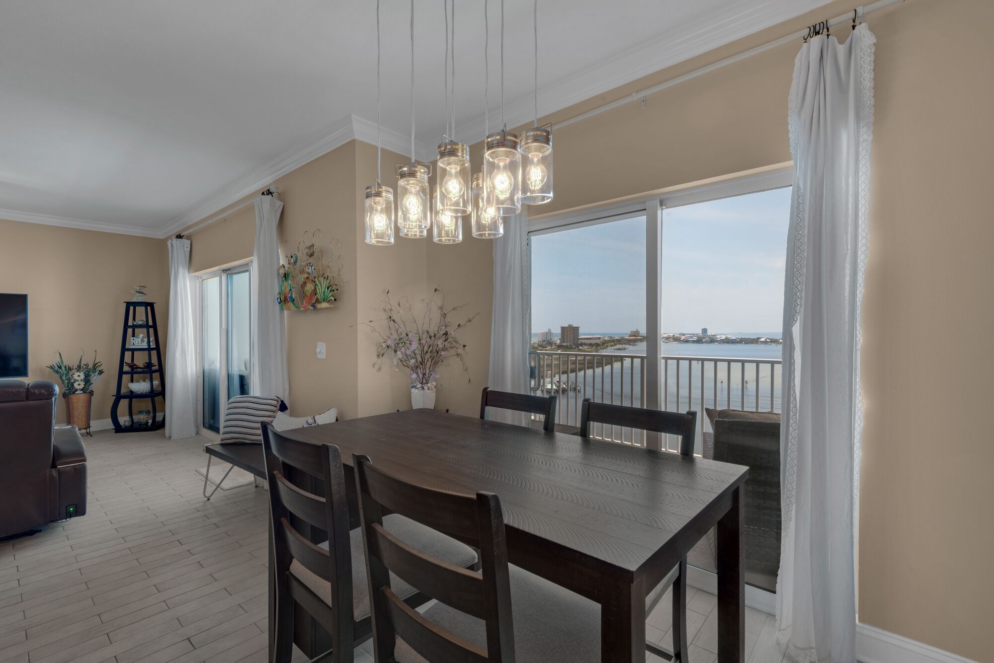 TheView...South Harbour Newly Renovated and ready to be booked! 2 Bedroom/ 2 Bath with panoramic views of all bodies of water on Pensacola beach. South Harbour 9B sleeps 6. Relax in the perfect beach condo, 9th-floor unit in Paradise. The kitchen has beautiful granite countertops, stainless steel appliances, and offers everything you will need to feel right at home. The bedrooms each offer Queen beds. For indoor meals and entertaining there is a lovely dining set and bar stools or head out to the balcony for dining while enjoying the best sunset or sunrise. The spacious, balcony is a wonderful place to start the day with your morning coffee. Watch Sabine Bay come alive with Large Charter boats headed out to the Gulf for a day of fishing, and paddle boarders and kayakers taking advantage of the wonderful Florida sun. At day’s end marvel at the spectacular sunsets that melt into the horizon leaving behind the tranquil lights surrounding Sabine Bay. After nightfall watch the bay glow in rainbow hues with the newest Pensacola Beach attraction, Glow Paddle. There is a seasonally heated pool looking out over Sabine Bay as well as a great little gym area. Once you park your car in this gated complex, you won’t need it again until it is time to head home! The boardwalk and famous Casino Beach are within easy walking distance and there is a free beach trolley during the season to catch a ride where you don’t care to walk! To satisfy your adventurous side, next door are outlets for charter fishing, dolphin and sailing cruises, parasailing, go-carts, and rental shops offering jet skis, bikes, kayaks, paddleboards and more! South Harbour is an amazing year-round choice for family and friends to get away from it all and discover a slice of paradise. Professionally managed by Deja Blu Rentals...