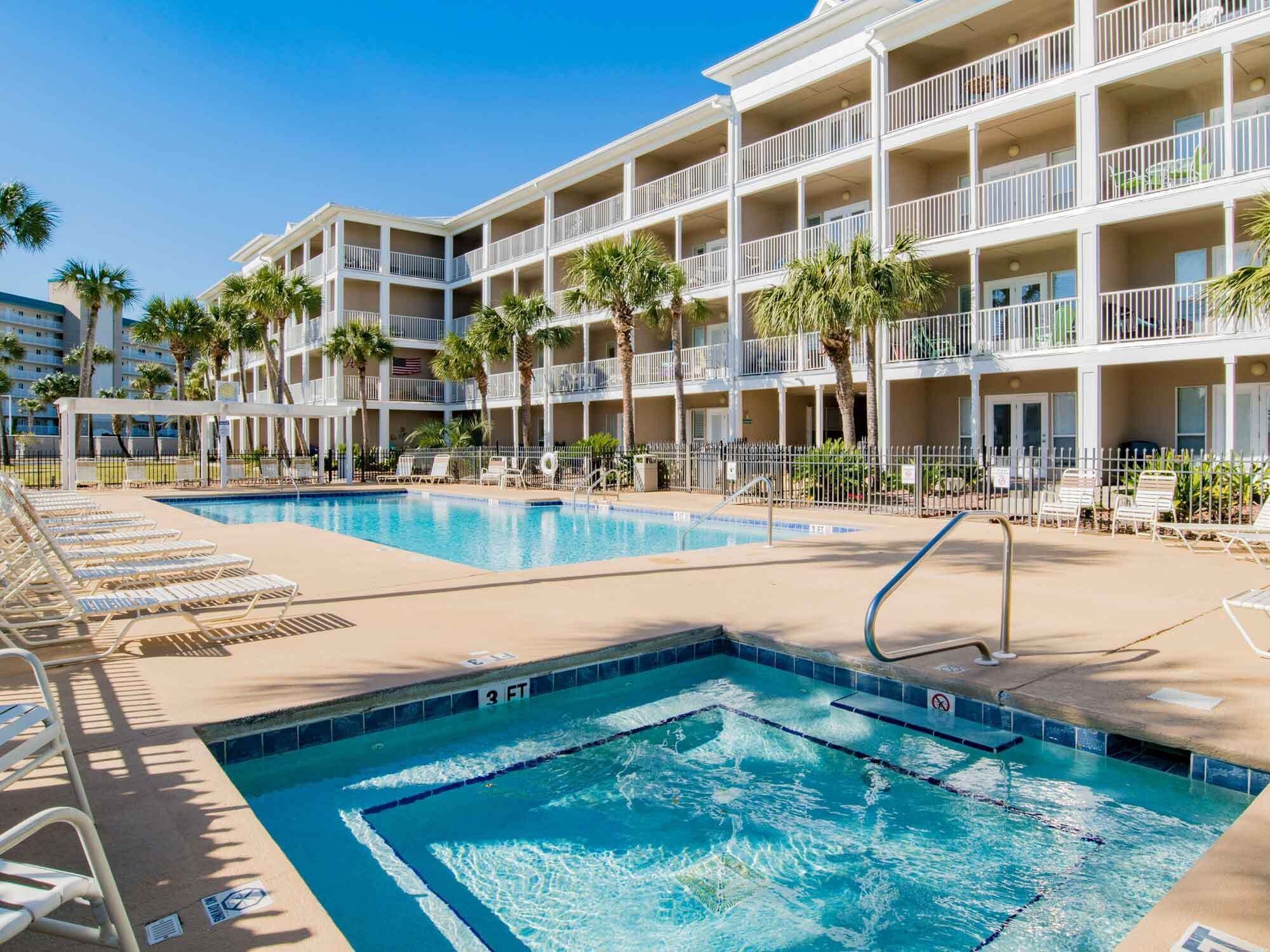 Enjoy the Fresh Sea Breeze from Your Covered Balcony - Easy Walk to the Beach! Bring your family to the emerald waters of the Gulf of Mexico and stay at Grand Caribbean 216 East! The two-bedroom condo rental in Perdido Key, Florida comes with all the comforts of home. You will be feeling right at home from the moment you enter!Two bedrooms and two bathrooms allow eight guests to comfortably stay here, with additional built-in hallway bunk beds that the kids will adore. A fully equipped kitchen makes preparing meals a breeze, an there is even a second-story balcony overlooking the lush green landscaping so you can sit and enjoy your food. Or, simply relax and take in your gorgeous surroundings. Brightly colored walls throughout will have you dreaming of the Florida sunshine during your beach getaway!Meanwhile, during your stay at Grand Caribbean East in Perdido Key, make use of the resort-like amenities. Soak up some sun in the pool, spacious pool deck, or hot tub. Not only are you steps away from the pool, but you are only a short walk from the beach! When you return from spending your day on sugar-white sands and in cobalt-blue waters, enjoy a cookout at the community barbecue grills at the picnic area. There is even a lake with a gazebo for you to enjoy as well.In addition, great shopping, restaurants, and golfing are just minutes away. Perdido Key is nestled perfectly between Orange Beach and Pensacola, so fun is never far away. This family-friendly destination boasts many activities including nature walks at Johnson Beach and Big Lagoon State Park, or the chance to practice stand-up fishing in the shallow Gulf waters.Make Perdido Key your next family destination! Book Grand Caribbean 216 East with Southern today.Clean Coverlet Program: This property provides fresh and clean bed linens, including comforters and coverlets, laundered prior to every check-in.**Please note: one parking pass per unit.