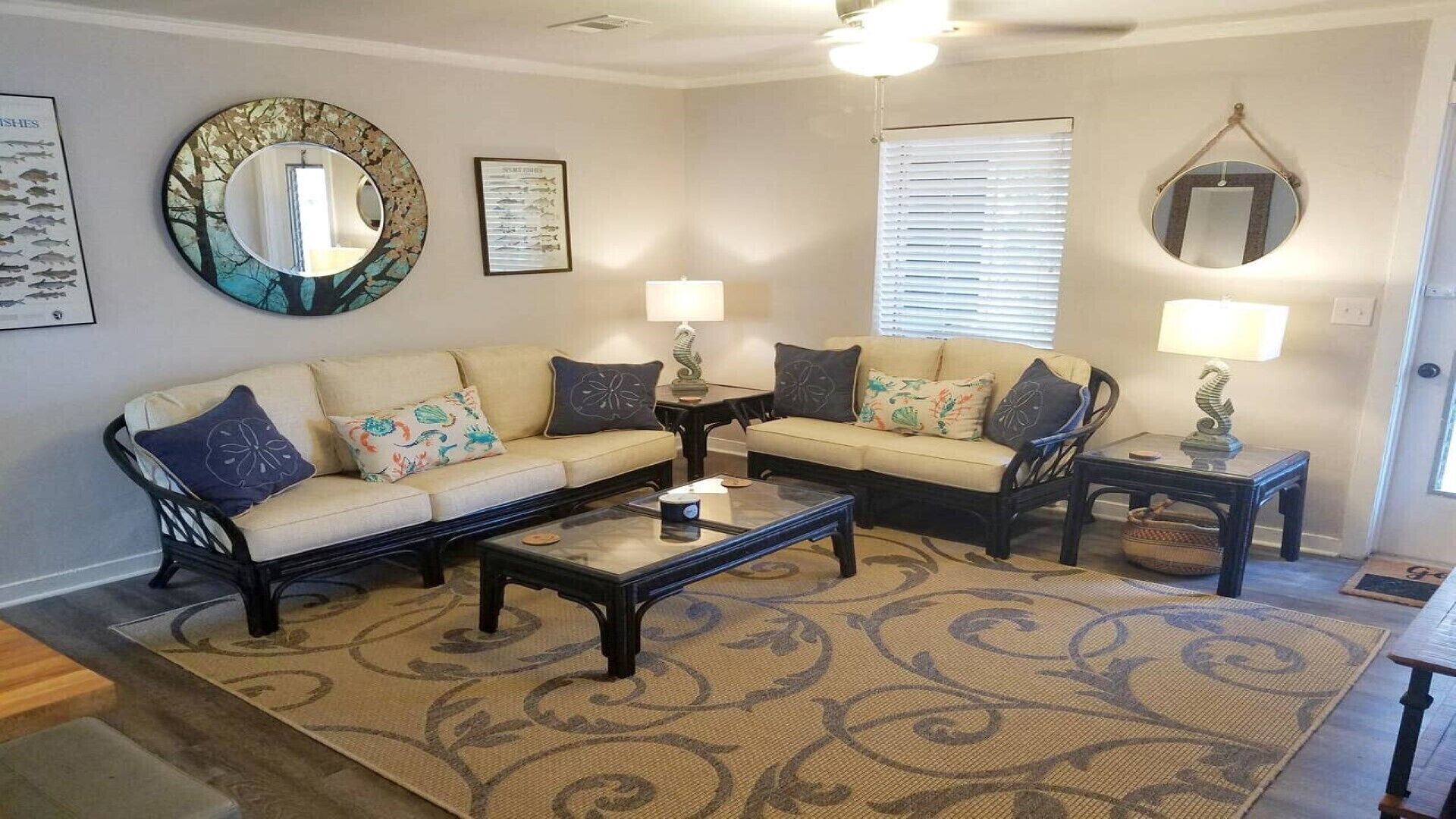 Gone Fishing/Coastal Cottage Completely renovated 2/1 Beach/Fishing Paradise. This roomy cottage is now the perfect vacation getaway! Enjoy awesome fishing, beaching, boating, fresh seafood restaurants, shopping & relaxing. 1/2 mile to the Lanark Boat Ramp, 3 miles to St. James Bay Golf, 4 miles to Carrabelle, 8 miles to beach. 31 miles to St. George Is, 34 miles to historic Apalachicola! Lanark V...