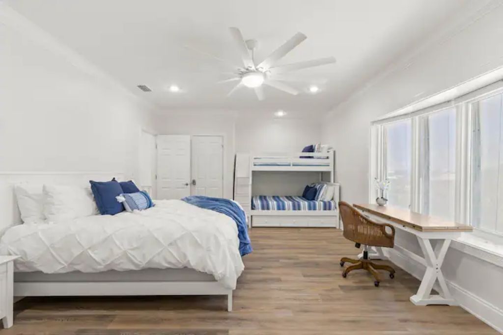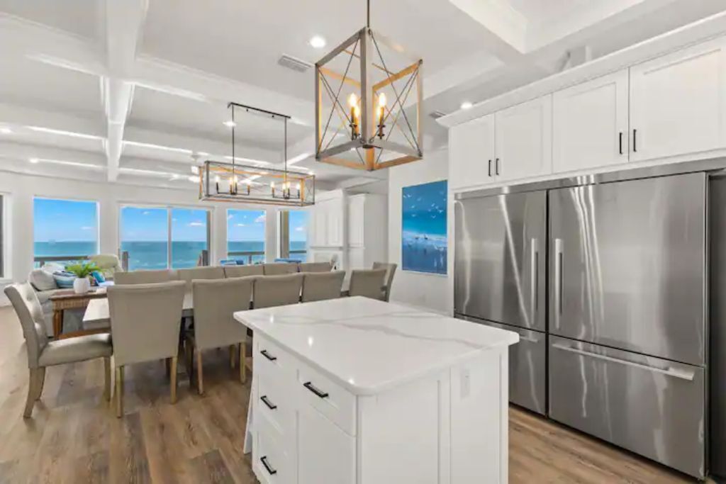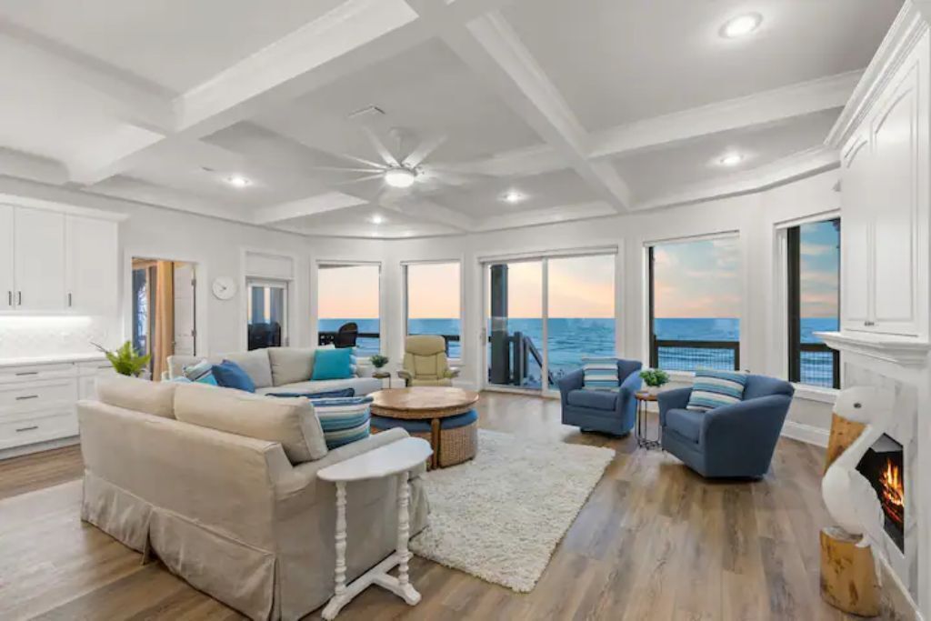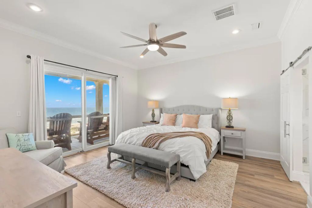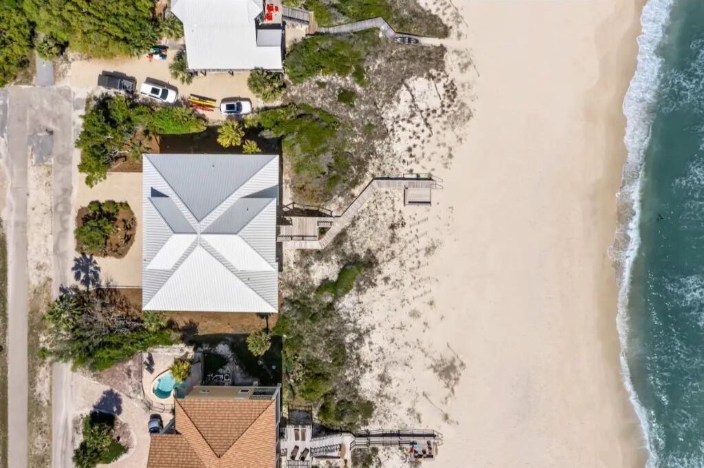 BEACHFRONT PARADISE is a magnificent & luxurious Florida beachfront vacation home on the #1 rated beach in America by Dr. Beach. Enjoy peaceful views & sounds of the waves crashing on the private beach behind your vacation oasis. Home is over 4,000 square feet & is resort spa quality with 6 bedrooms each with their own bathroom. Spectacular beach views & an elevator. 5 king size beds + 6 twins + 1 full! Just 5 houses from community pool, tennis court, & gym.The main level offers breathtaking views of the beach with large windows & features a large great room with family room, dining & kitchen. There are also four bedrooms on this level. The gourmet kitchen features luxury stainless steel with DOUBLE refrigerator / freezers with two ice makers, DOUBLE oven, dishwasher, microwave, additional wine cooler, Calacatta quartz countertops, & completely stocked with everything needed. Kitchen features reverse osmosis system so you can have quality drinking water without needing bottled water. Dining area has table that will seat 12 people together plus there is seating at the bar. Full size elevator services all floors.There are two large covered patios & lots of outdoor furniture – tables & chairs to seat 12 plus seating for 12 on rocking chairs. You can walk down your own private short boardwalk & put your feet into the sugar sand of the Gulf of Mexico! Beach items stocked for Guest use including beach towels, chairs, toys, & much more. Home is extremely clean with luxury vinyl flooring throughout & all new furnishings.Home is located just a few houses down from community lap pool, work out room, clubhouse, & tennis courts. Community features include 2 community pools, airport, tennis & pick ball courts, walking trails & paths, bike baths, clubhouse & fitness center.Beach is not crowded as it is private for the Plantation community only.Bed Mix:• 5 Kings• 6 Twins• 1 FullGround Level:• Parking for 5-7 vehicles• Private boardwalk to the beach• Outdoor shower• Fish cleaning station• Rocking chairs for 6• Elevator with access to all levelsLevel 1:• 2 Beachfront decks with tables & chairs for 12 plus rocking chairs for 6• Great room concept with family room, kitchen & dining room• Gourmet kitchen with stainless steel appliances including double refrigerator & freezer with 2 ice makers, double oven, microwave, cooler / wine cooler, & dishwasher.• Dining table & chairs that seat 12 plus bar seating• 2 Beachfront king master suites• Additional King bedroom suite with twin bed & twin trundle• Twin bedroom suite with 2 twin beds• 4 full bathrooms – 3 showers, 1 garden tub, 1 tub/shower combo• Laundry room• Games & puzzles for all agesLevel 2• Beachfront king master suite with bathroom with dual sinks, garden tub & shower• King suite with bunk bed full, twin, & twin trundle with full bathroom with shower. Dedicated desk & chair for remote workers.Guest accessEntire home is included.This home is located on St. George Island which is a 22-mile barrier island in the Gulf of Mexico that is easily accessible via car. It has home to the most pristine beaches in Florida & offers miles of uncrowded beach for sunning, swimming, fishing, & shelling. The island also has shops, restaurants, nightlife, lighthouse, State Park, bike paths, hiking trails, & much more. Easy drive to Apalachicola, Carabelle, & Port St. Joe. Located only 1.5 hours from Tallahassee or Panama City.