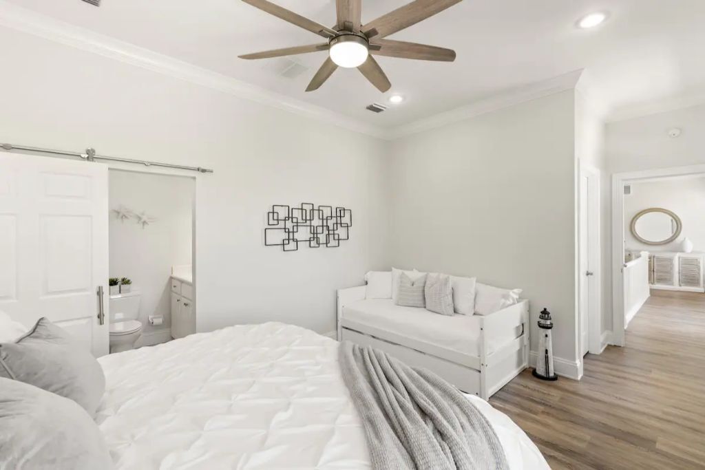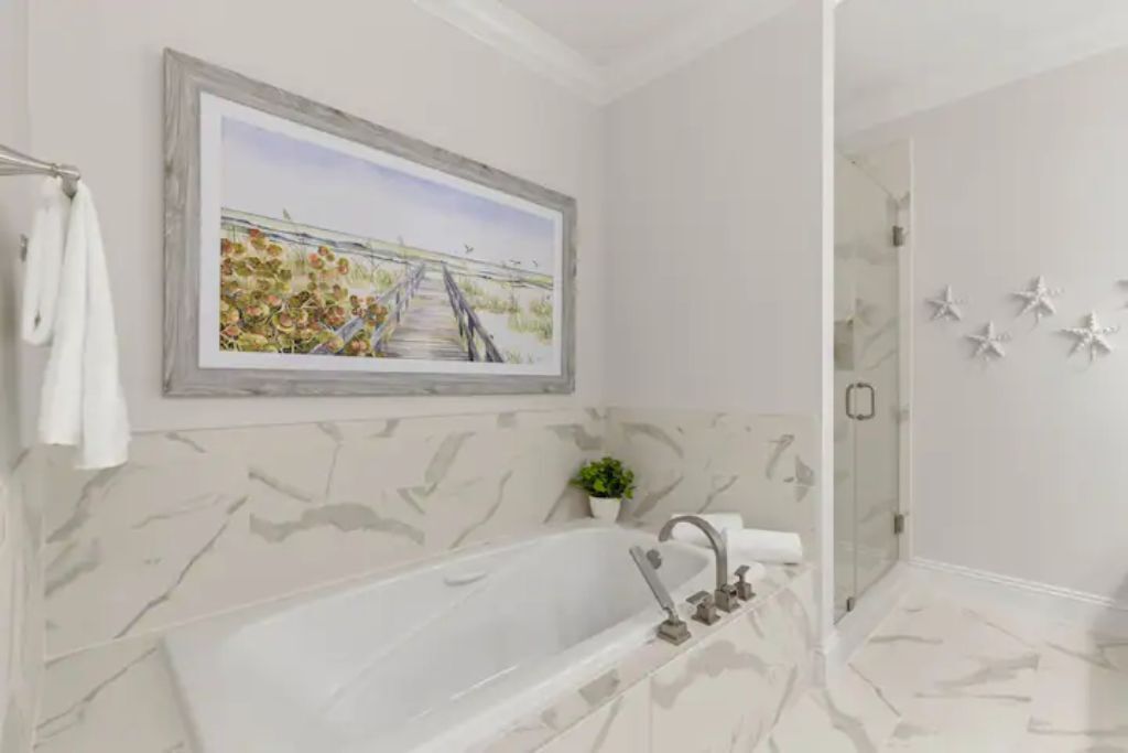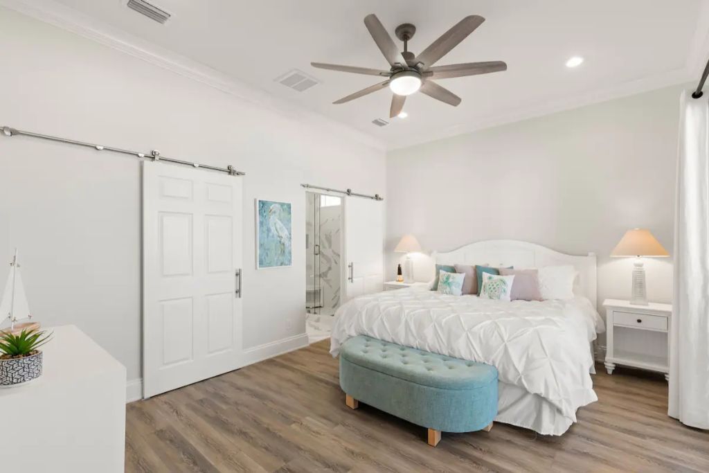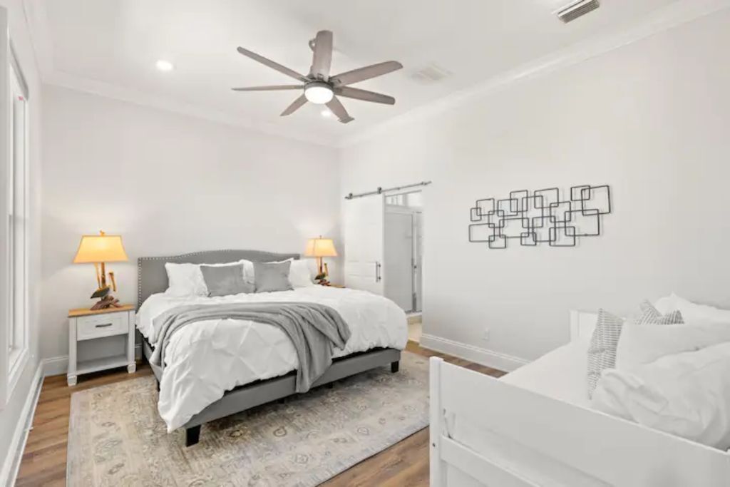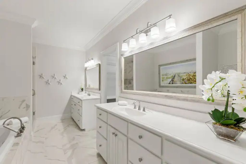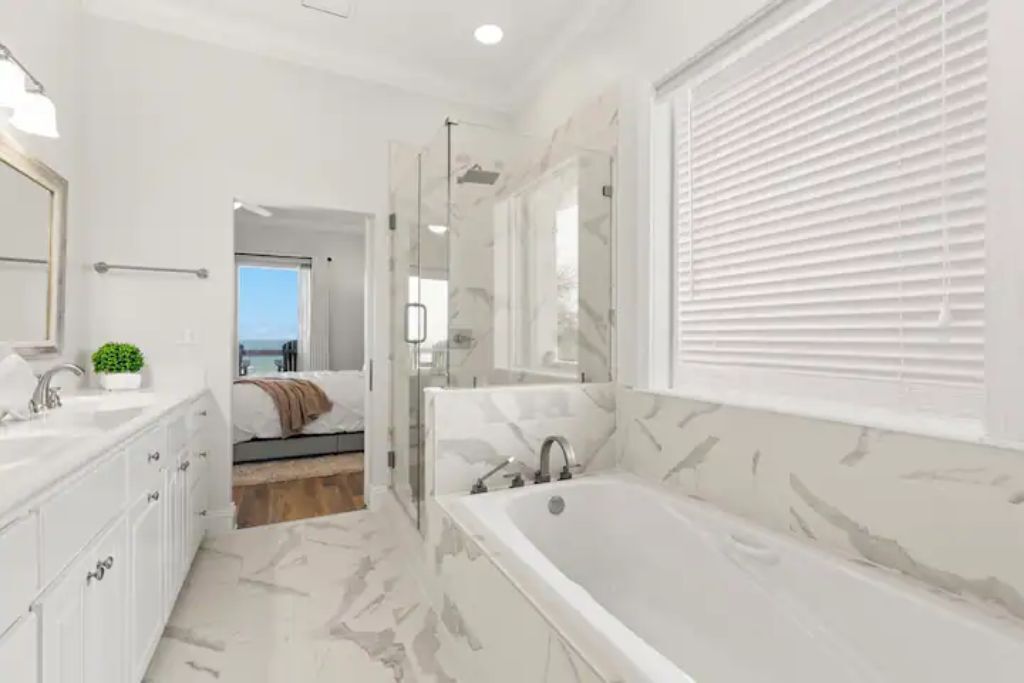 BEACHFRONT PARADISE is a magnificent & luxurious Florida beachfront vacation home on the #1 rated beach in America by Dr. Beach. Enjoy peaceful views & sounds of the waves crashing on the private beach behind your vacation oasis. Home is over 4,000 square feet & is resort spa quality with 6 bedrooms each with their own bathroom. Spectacular beach views & an elevator. 5 king size beds + 6 twins + 1 full! Just 5 houses from community pool, tennis court, & gym.The main level offers breathtaking views of the beach with large windows & features a large great room with family room, dining & kitchen. There are also four bedrooms on this level. The gourmet kitchen features luxury stainless steel with DOUBLE refrigerator / freezers with two ice makers, DOUBLE oven, dishwasher, microwave, additional wine cooler, Calacatta quartz countertops, & completely stocked with everything needed. Kitchen features reverse osmosis system so you can have quality drinking water without needing bottled water. Dining area has table that will seat 12 people together plus there is seating at the bar. Full size elevator services all floors.There are two large covered patios & lots of outdoor furniture – tables & chairs to seat 12 plus seating for 12 on rocking chairs. You can walk down your own private short boardwalk & put your feet into the sugar sand of the Gulf of Mexico! Beach items stocked for Guest use including beach towels, chairs, toys, & much more. Home is extremely clean with luxury vinyl flooring throughout & all new furnishings.Home is located just a few houses down from community lap pool, work out room, clubhouse, & tennis courts. Community features include 2 community pools, airport, tennis & pick ball courts, walking trails & paths, bike baths, clubhouse & fitness center.Beach is not crowded as it is private for the Plantation community only.Bed Mix:• 5 Kings• 6 Twins• 1 FullGround Level:• Parking for 5-7 vehicles• Private boardwalk to the beach• Outdoor shower• Fish cleaning station• Rocking chairs for 6• Elevator with access to all levelsLevel 1:• 2 Beachfront decks with tables & chairs for 12 plus rocking chairs for 6• Great room concept with family room, kitchen & dining room• Gourmet kitchen with stainless steel appliances including double refrigerator & freezer with 2 ice makers, double oven, microwave, cooler / wine cooler, & dishwasher.• Dining table & chairs that seat 12 plus bar seating• 2 Beachfront king master suites• Additional King bedroom suite with twin bed & twin trundle• Twin bedroom suite with 2 twin beds• 4 full bathrooms – 3 showers, 1 garden tub, 1 tub/shower combo• Laundry room• Games & puzzles for all agesLevel 2• Beachfront king master suite with bathroom with dual sinks, garden tub & shower• King suite with bunk bed full, twin, & twin trundle with full bathroom with shower. Dedicated desk & chair for remote workers.Guest accessEntire home is included.This home is located on St. George Island which is a 22-mile barrier island in the Gulf of Mexico that is easily accessible via car. It has home to the most pristine beaches in Florida & offers miles of uncrowded beach for sunning, swimming, fishing, & shelling. The island also has shops, restaurants, nightlife, lighthouse, State Park, bike paths, hiking trails, & much more. Easy drive to Apalachicola, Carabelle, & Port St. Joe. Located only 1.5 hours from Tallahassee or Panama City.