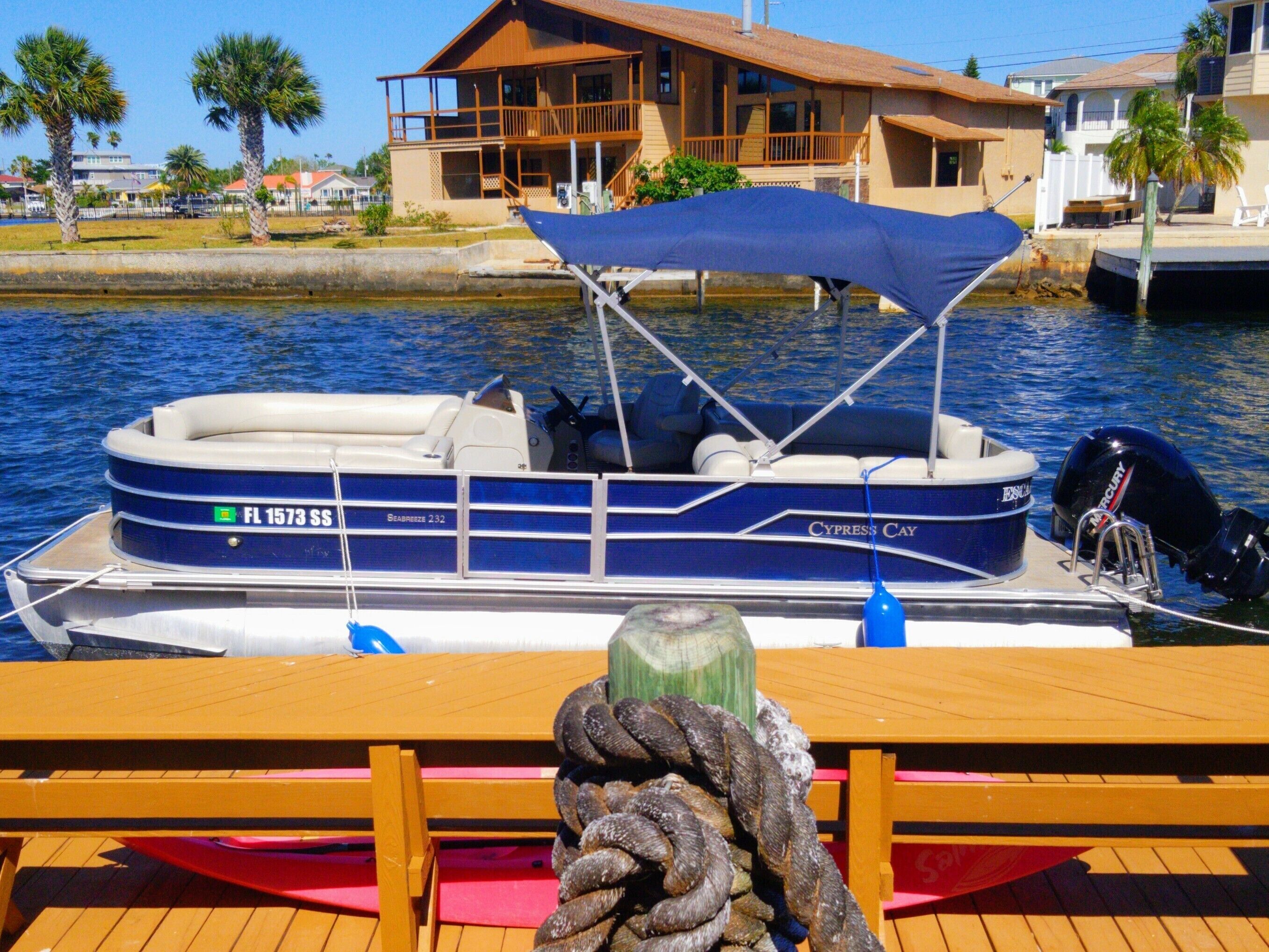 Relax and Play! Gulf Front, Private Home w/Pool+Pontoon Boat Rental Spend your next vacation at "The Dolphin House," our beautiful 4 bedroom/3 bathroom home, while enjoying the Gulf of Mexico as your backyard! Pontoon Boat On-Site! Available for RentYou will enjoy daily visits from dolphins, sting rays, and the occasional manatee. The private dock is the perfect place to fish or park your boat if...