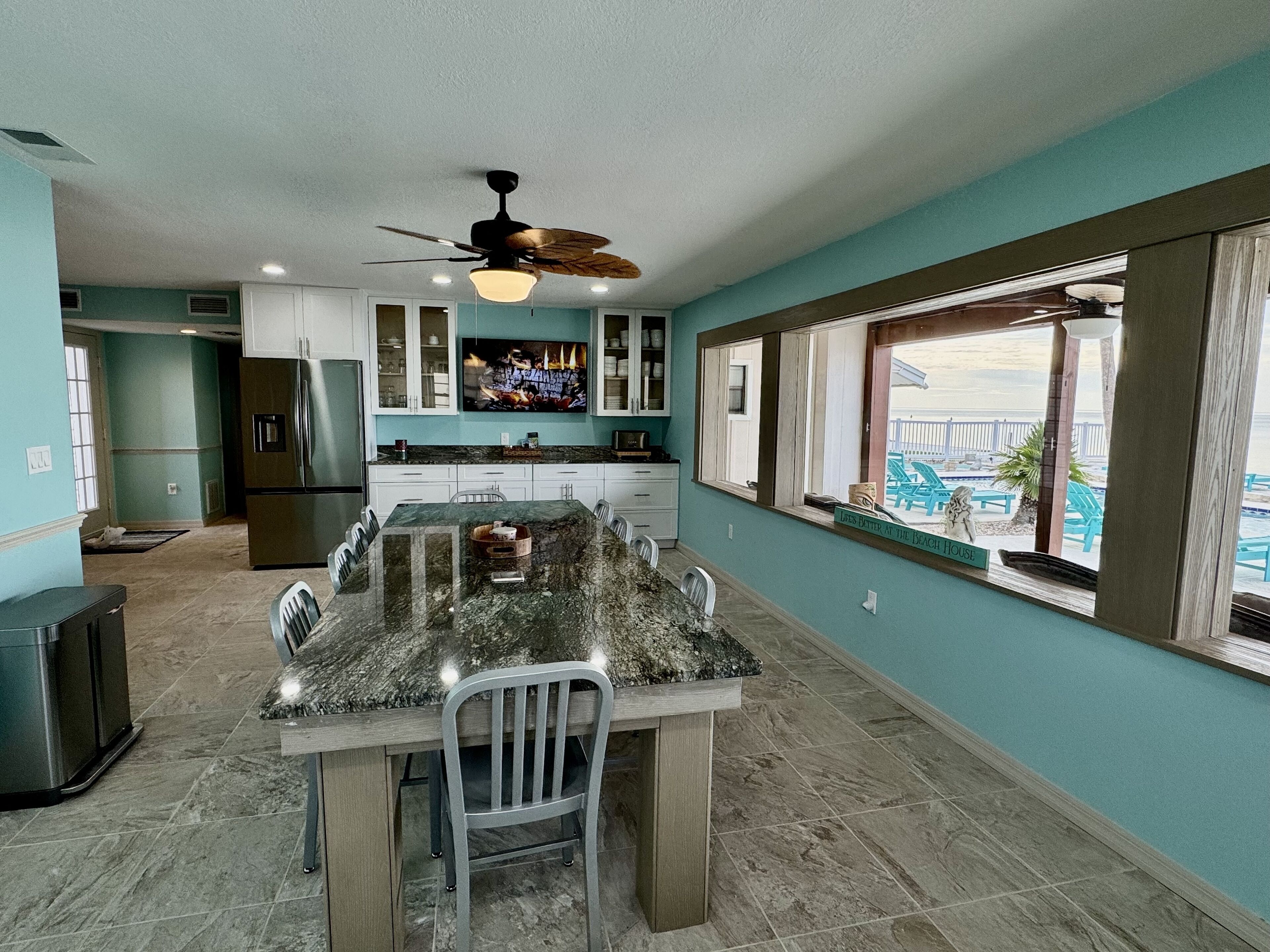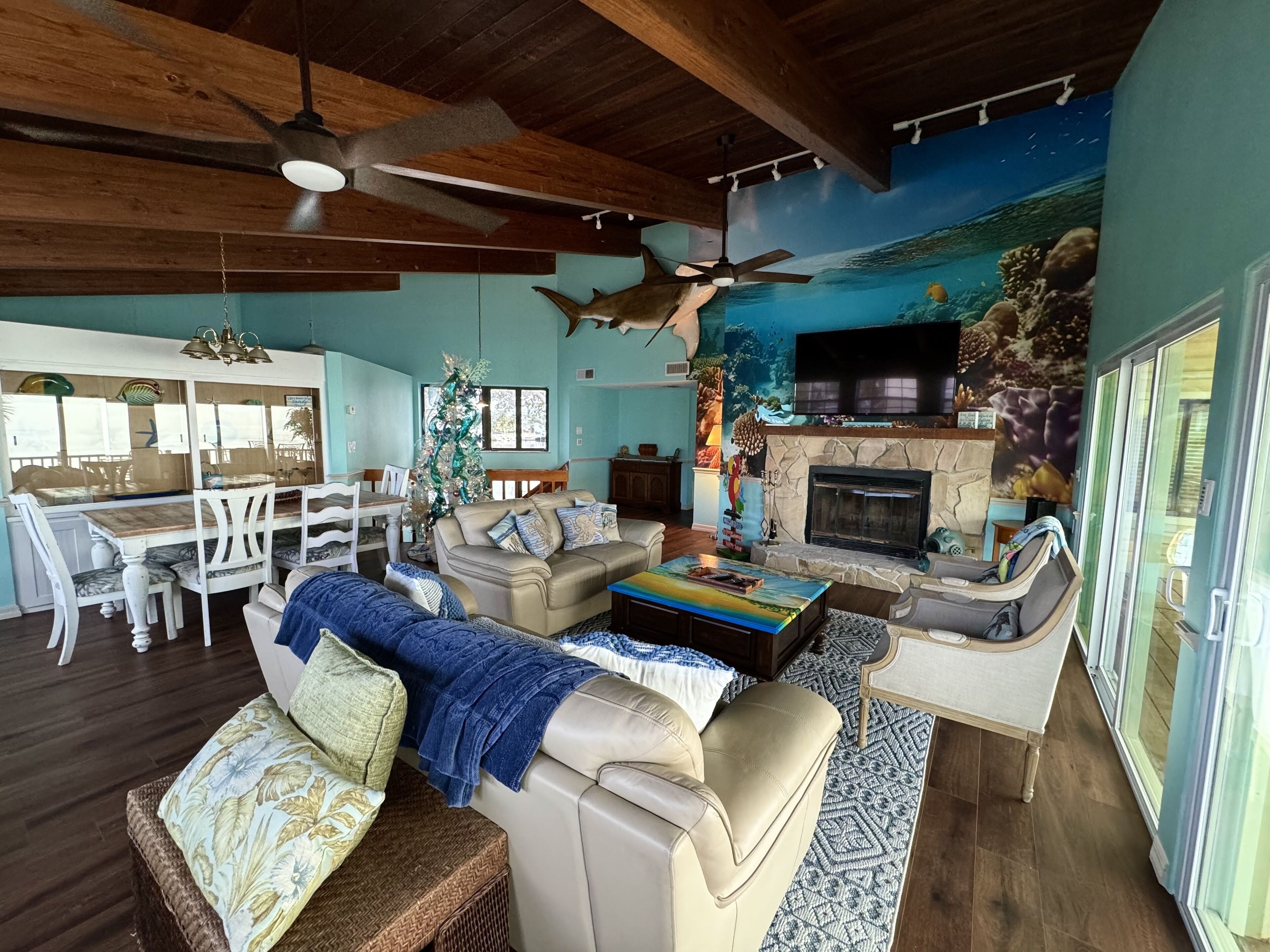 Newly Renovated!! Beachfront Home- Private Pool- Directly on the Gulf of Mexico This is the only single family vacation rental home in the area that offers an unobstructed view of the Gulf of Mexico with a private pool and backyard beach. Our private single family 2 story home with 3 large bedrooms and 3 full baths and sleeps up to 10 guests total. (This home is not shared/ the home and pool are private and for your family’s use only). There is an indoor fireplaces (for use w/store purchased paper wrapped logs only), a large soaking tub, an outdoor bbq grill and an open waterfront fire pit for roasting marshmallows and s’mores. Guests have access to our large canoe, a double person kayak and the shuffleboard court during their stay. The house comes fully furnished with an eat in kitchen and additional full dining room, a full size washer/dryer, cable/smart tv’s as well as WiFi and free local telephone calls. All beds come pre-made with the necessary linens and towels are provided in each bedroom & bathroom. Sit back; relax while watching the dolphins swim and play right from the backyard of this waterfront home. This vacation getaway is a great place for golfing, fishing ( Best Tarpon fishing in the world), inshore fishing, flats fishing, deep sea fishing, boating, scuba diving, tubing and sunbathing along with many other water sports. Located only 5 minutes away is Weeki Wachee Springs and Roger's Park where you can swim, kayak or canoe with the manatees in the crystal clear waters of the Weeki Wachee river/springs. Crystal River, FL is just a short 25 min drive away where you can swim, fish, scallop and scuba dive. Tampa, FL is a quick hour drive away where you can spend the day at Busch Gardens or Adventure Islands water park. Orlando, FL is easily accessible by car to take a day trip with the family to Disney World, Universal Studios, Epcot, Sea World or other Florida theme parks. You can also take advantage of locally offered adventures like scuba diving in the beautiful Gulf of Mexico waters where you can observe the 10 military tanks submerged offshore or check out the brand new man made reef. All of which are located just behind this waterfront Hernando Beach, FL vacation rental home. Oh, did I mention that we have, hands down, the most amazing sunsets you’ll ever see? Upstairs Bed/Bath/Layout:-Bedroom 1: Master bedroom w/ 1 King size bed- Attached full bath w/ tub (bathroom 1)- 55 “ Smart TV- seperate sitting area. -Bedroom 2: Two Queen beds (No TV)-Bathroom 2: Shared Hall Bath w/shower, toilet, sink-Living Room/ Dining room combo- 65” Smart TV -Outdoor Balcony with ample seating. Downstairs Bed/Bath/ Layout:-Bedroom 3: 1 King bed + 1 Queen bed- 32” SmartTV-Bathroom 3: Main bath- Full Size w/ large soaking tub- Large walk in shower- Separate toilet space. -Kitchen: Eat-in with dining table & 55” TV-Laundry Room w/ washer & dryer. Rates: $2,000+ p/wk + taxes & fees. Rates vary depending on dates, length of stay, guests etc.THIS HOME RENTS STRICTLY BY THE WEEK & FRIDAY TO FRIDAY ONLY! SORRY, NO WEDDINGS, PARTIES, EVENTS OR EXTRA GUESTS ALLOWED ON PROPERTY AT ANY TIME! Please note: The website only has the ability to input one rate for cleaning fees; however, because cleaning fees are charged based on the number of guests and the length of your stay all cleaning fees are subject to change depending on your party/reservation request at time of booking. Starter supply of paper products are provided.