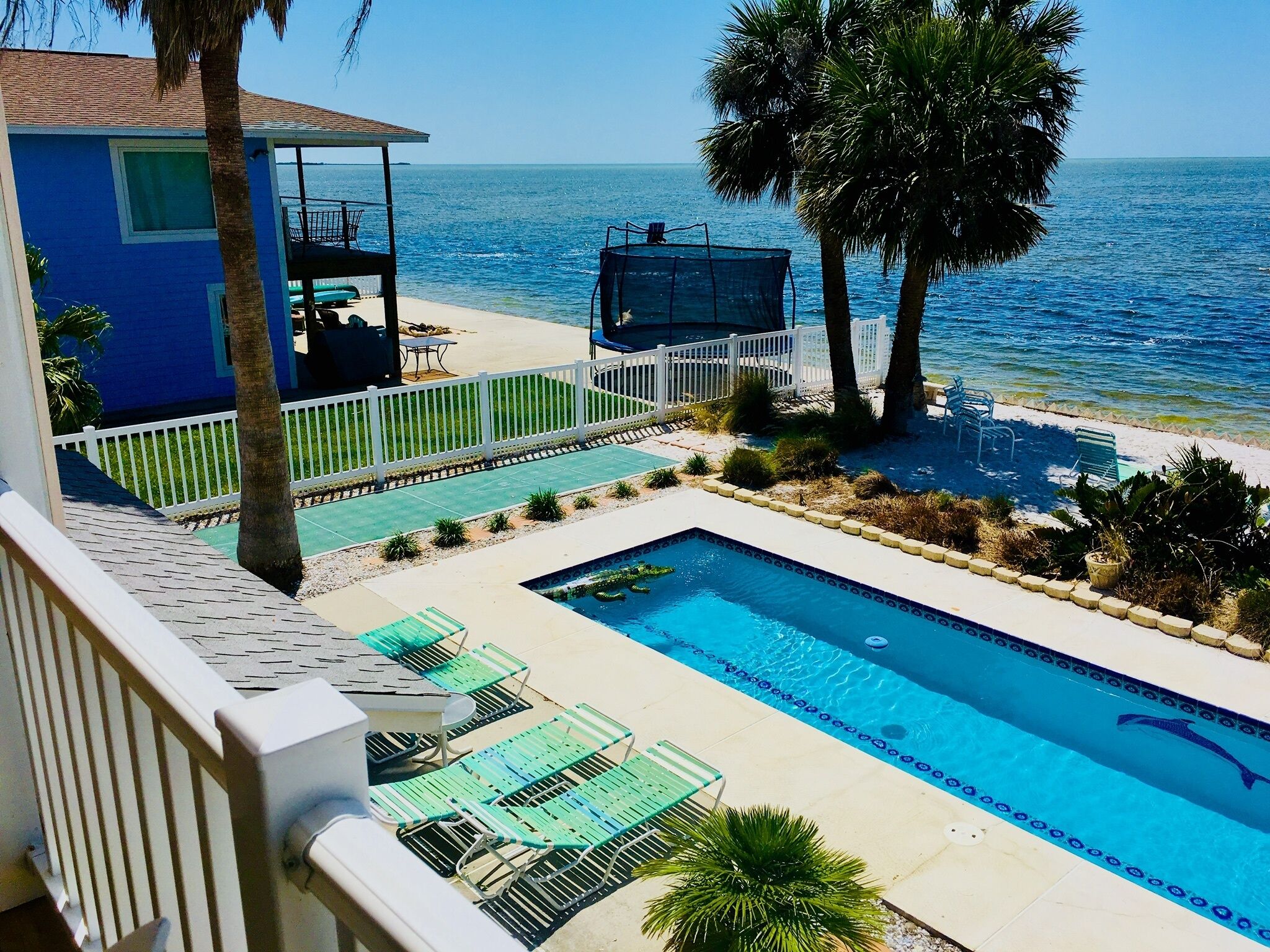 Newly Renovated!! Beachfront Home- Private Pool- Directly on the Gulf of Mexico This is the only single family vacation rental home in the area that offers an unobstructed view of the Gulf of Mexico with a private pool and backyard beach. Our private single family 2 story home with 3 large bedrooms and 3 full baths and sleeps up to 10 guests total. (This home is not shared/ the home and pool are p...