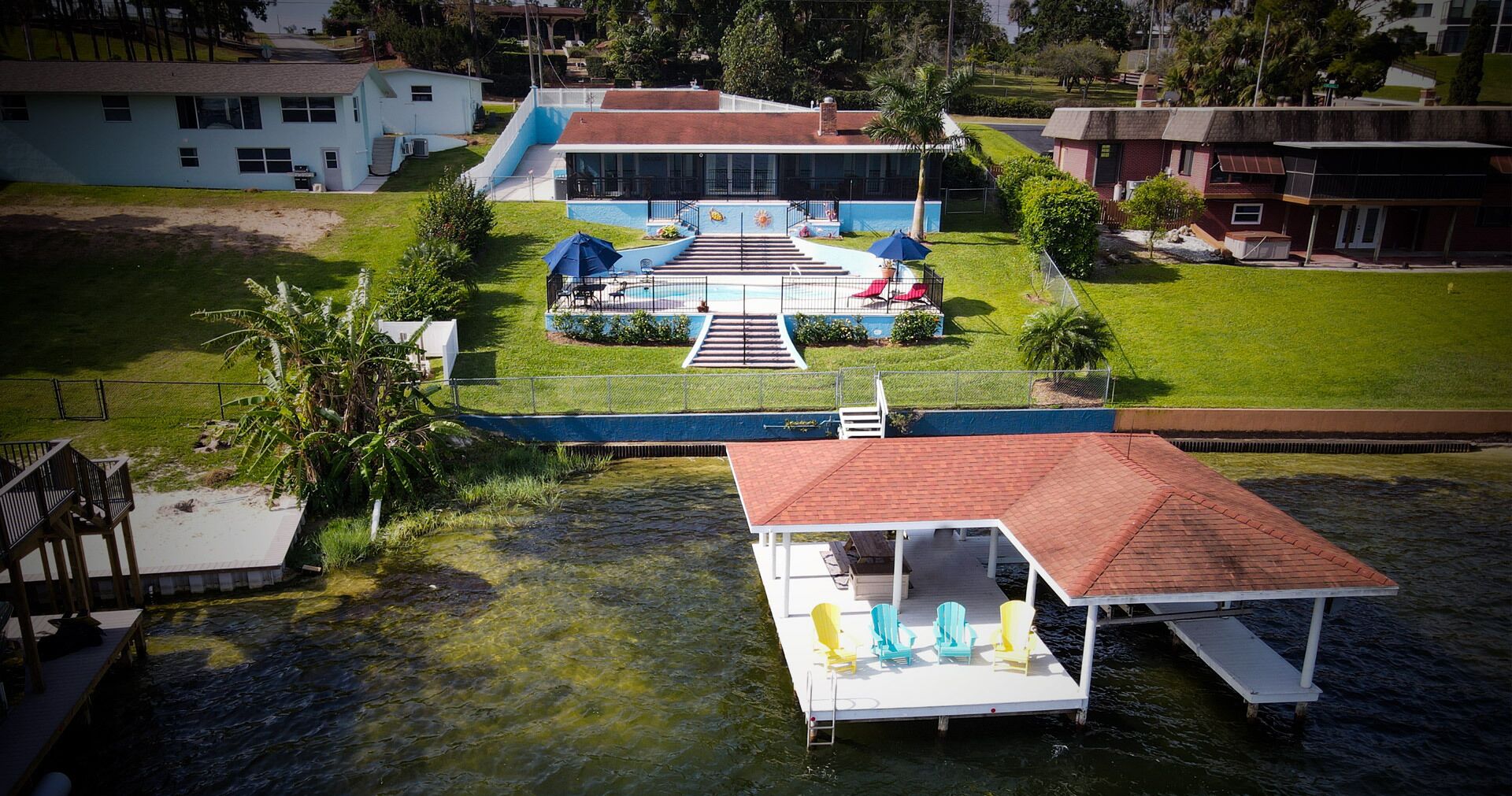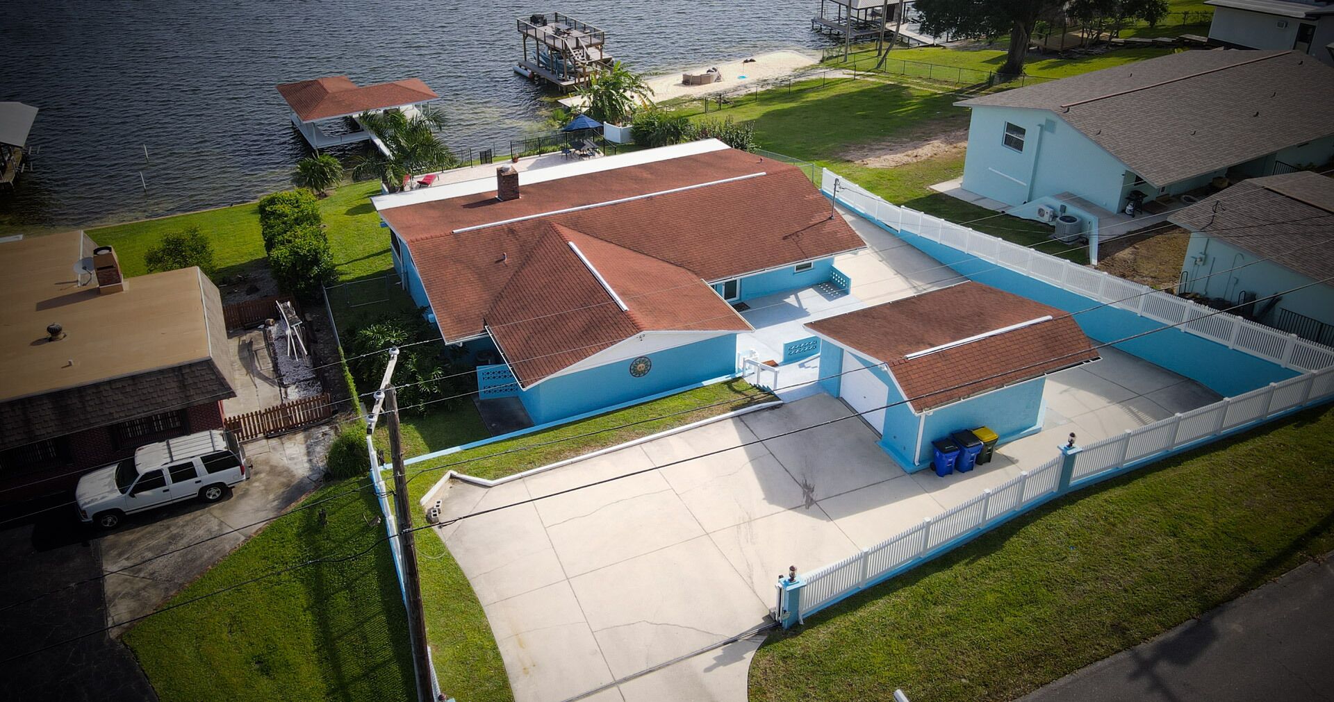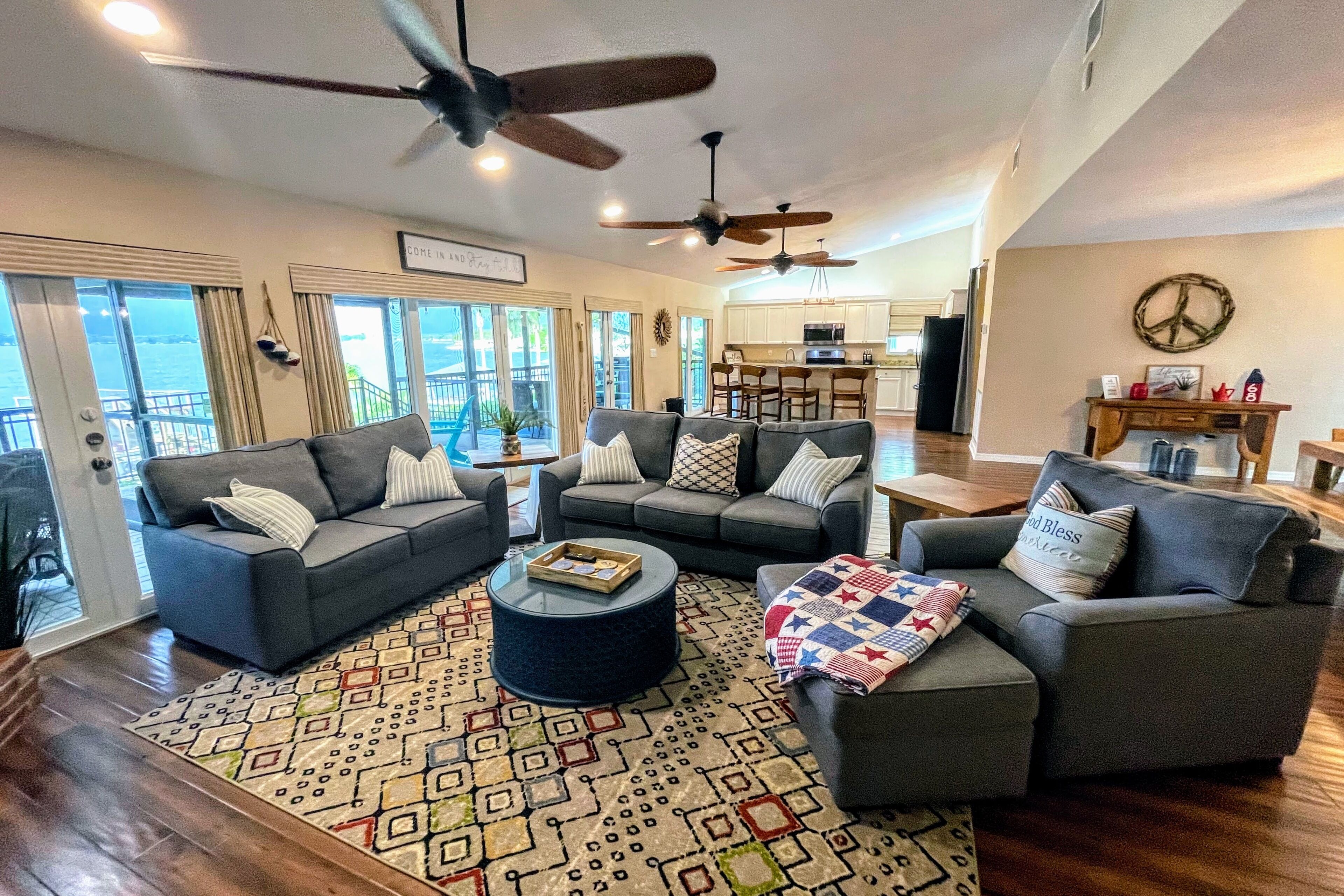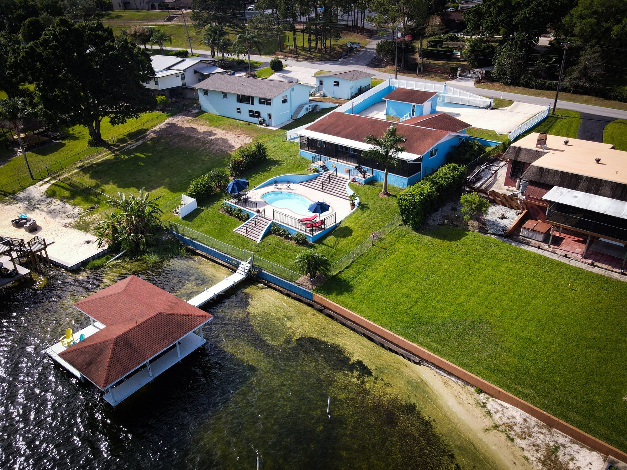 Lake Retreat for10 has Pool-Dock-4 Bedrooms-2 Bath Expansive Lakefront Views This Beautiful Property on Lake Clay is an unbeatable location for outdoor play. Bring your boat or jet-ski for unlimited memories with family & friends! There are Kayaks available onsite.Pet friendly for dogs under 30 lbsOUTDOOR SPACE:- Private pool- Dock (fishing allowed)- 3 screened porches - 2 Outdoor dining areas- Lounge chairs- Large Fenced yard- Gas grill- High speed internet LIVING AREA: Panoramic Views of Pool and Lake- Comfortable seating in living room with a super size TV- Large dining room table for 12 guests- Large open plan living room- Multiple Ceiling Fans KITCHEN: - Panoramic views of the pool and Lake Clay that opens out the the patio- Granite counter tops and deluxe gas stainless steel appliances.- Fully equipped for cooking and dining.- Also includes a Keurig coffee maker, toaster, blender, cooking basics & spices BEDROOMS: (4)- The Principle bedroom opens to the Patio, with a king bed and a connecting bathroom with a deluxe steam shower, and streaming TV.- 2nd Bedroom has a Queen size bed, streaming TV and queen size futon.- 3rd Bedroom has 3 twin beds and a streaming TV.- 4th bedroom has a queen-size bed and 2 roll-away beds.- Pac and Play crib with a bassinet and high chair are provided.- All linens are provided.BATHROOMS: (2)-All bathrooms are provided with a starter set of toiletries (TP, soap, and shampoo) and plush towels. A hairdryer is also available. PATIO: Screened in and furnished and opens out from every room, dining table with Weber Grill and piped in natural gas.GUEST ACCESS: -This fully fenced property is entirely yours for your private enjoyment.INTERNET: Highspeed and wireless throughout. CLEANING:- All of our properties are professionally cleaned and sanitized up to CDC guidelines and inspected before each stay to ensure your safety.- Starter dishwasher pods are provided- Washer and dryer with a starter set of laundry pods provided. LOGISTICS:- Check-in: 4:00 PM.- Check-out: 11:00 AM.- An early check-in or late check-out time may be available, please inquire about availability and pricing. TVs: All 4 of our TVs are Smart with access for you to log into your favorite streaming channels. MAINTENANCE SCHEDULE: Weekly Landscaping service Weekly Pool cleaning services POOL: Please note there is no lifeguard on duty and we ask that all guests enjoy the pool responsibly. The property owner is not liable for any pool-related accidents, drowning, or bodily harm/personal injuries. No diving is permitted. No glass is permitted in or near the pool or hot tub, the kitchen is supplied with plastic cups. GARBAGE: We ask that you please put out any used garbage bins in the front of the driveway Monday night and Thursday night before collection on Garbage Removal days, Tuesday and Friday mornings. Please bring the bins back to the side of the house when the trash has been picked up. PARTIES & EVENTS: We do not allow parties, receptions, or events. This is our most important rule that can result in the termination of your reservation along with additional fees. If you have any questions regarding entertaining on the property please contact us. ALL OUTDOOR NOISE must end by 10 PM- no Exceptions. PARKING: The driveway accommodates 5- 6 cars. Please refrain from parking on the street or the lawn PETS: Pets are permitted Government-issued photo identification is required before check-in. PERSONAL BELONGINGS: ValGal isn’t responsible for any package delivery or personal belongings left at the property after checkout. ADDITIONAL DETAILS: If you have any specific requests feel free to ask us, while we do not guarantee it, we will do our best to accommodate you. Some special requests may incur additional charges. Please note, that by booking this property, you are agreeing to our rental terms and conditions.